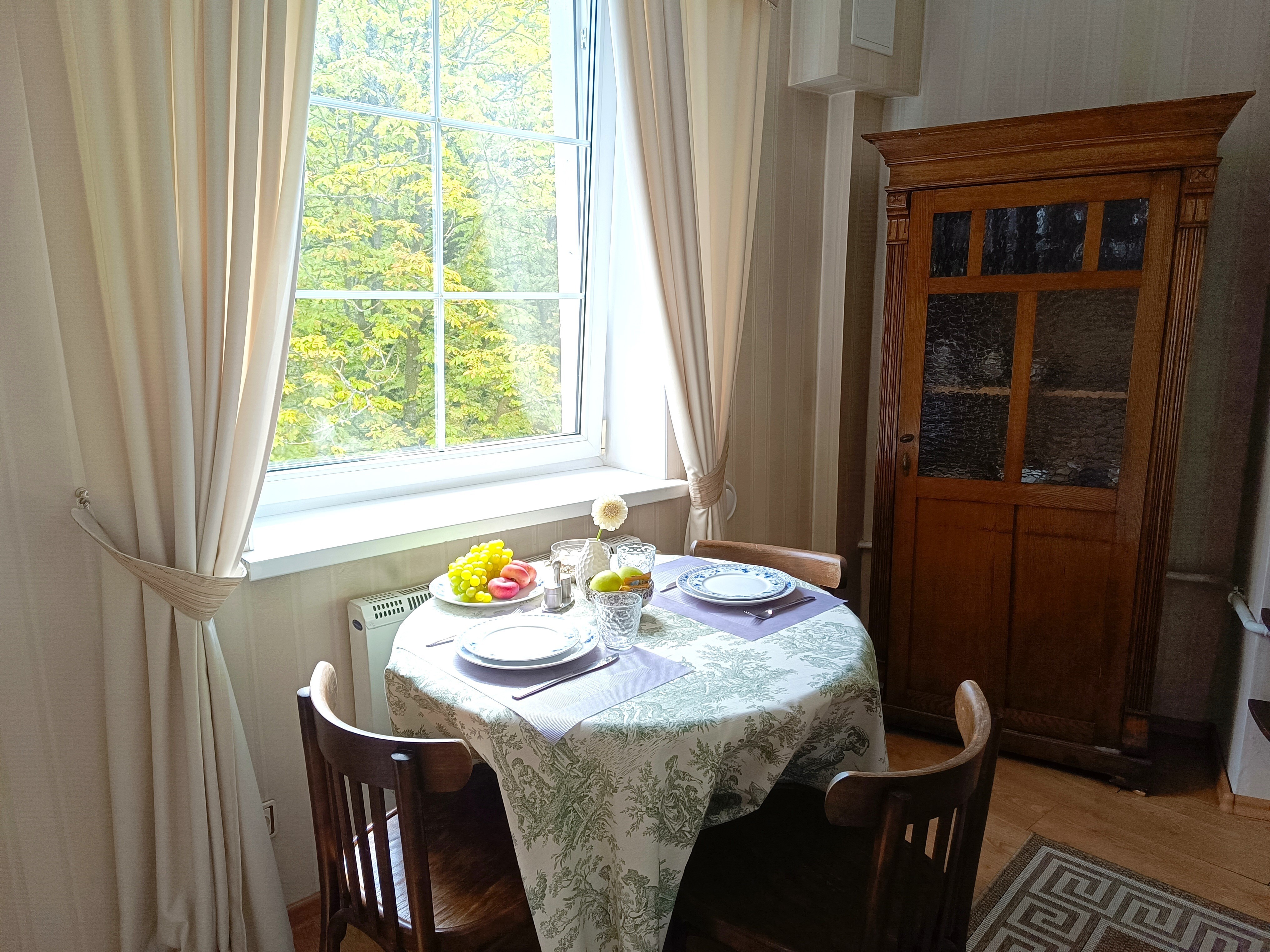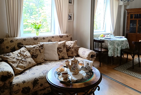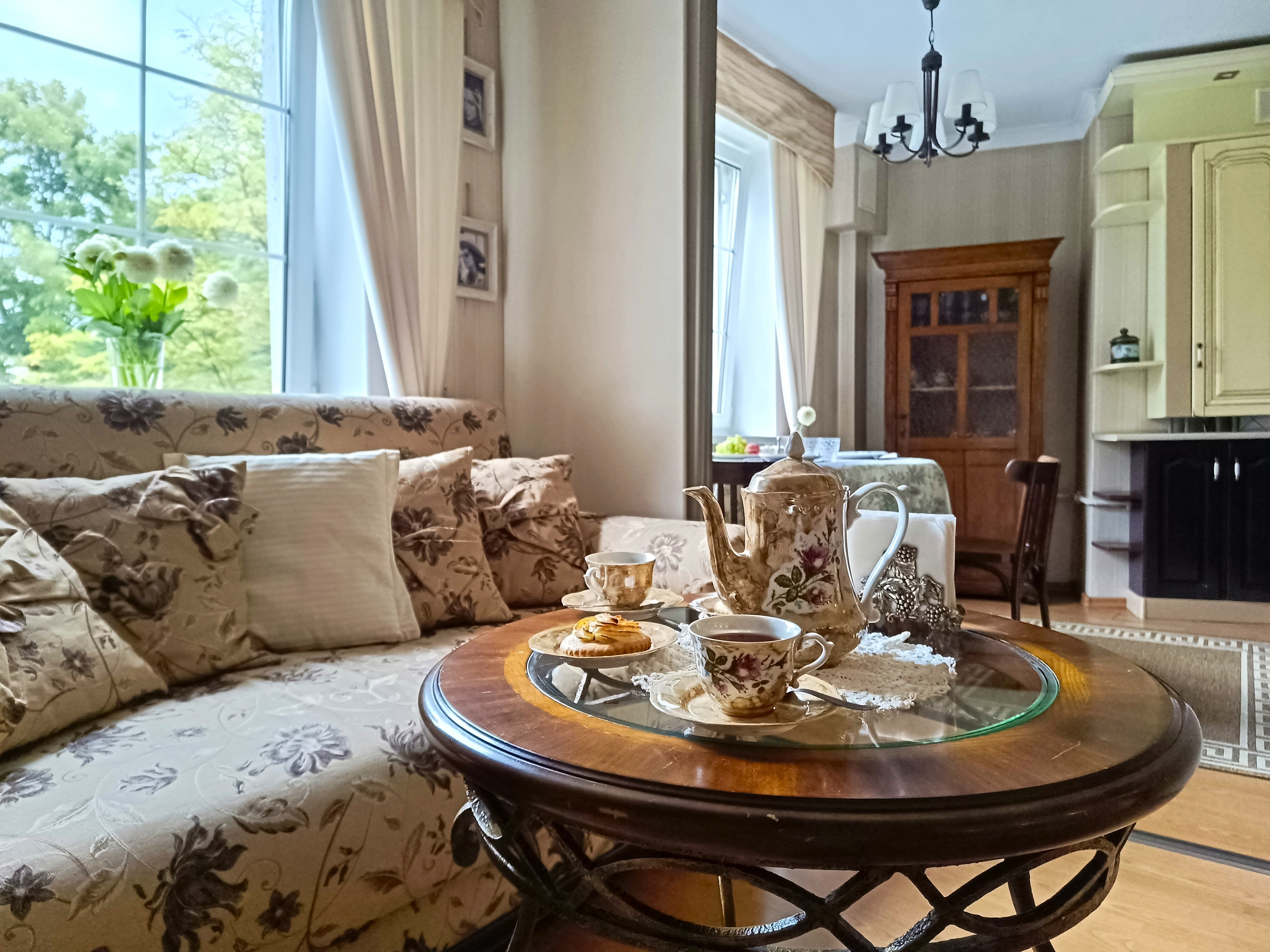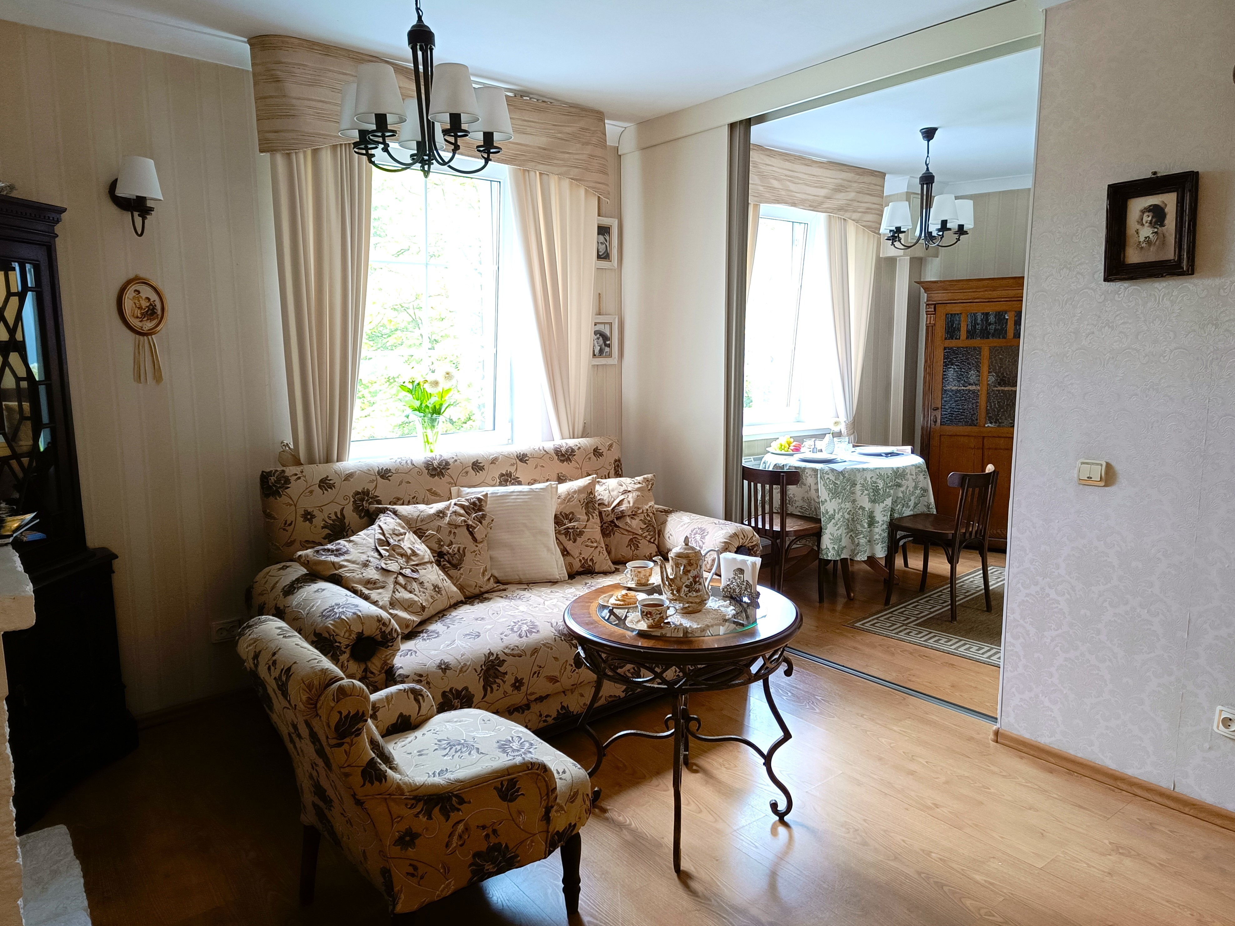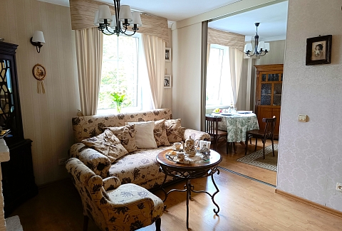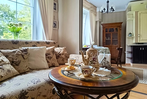 Апартаменты находятся в историческом районе Калининграда, на улице Комсомольской, где атмосфера старого города ощущается особенно остро. До остановки общественного транспорта — всего минута неспешным шагом, а в радиусе десяти-пятнадцати минут пешком — знаковые места: район вилл Амалиенау, Центральный парк, Калининградский зоопарк и даже Площадь Победы. Вокруг сложилась привычная городская инфраструктура, есть всё необходимое для жизни.Внутри — стильное пространство с винтажными деталями, создающее ощущение уютной эстетики.