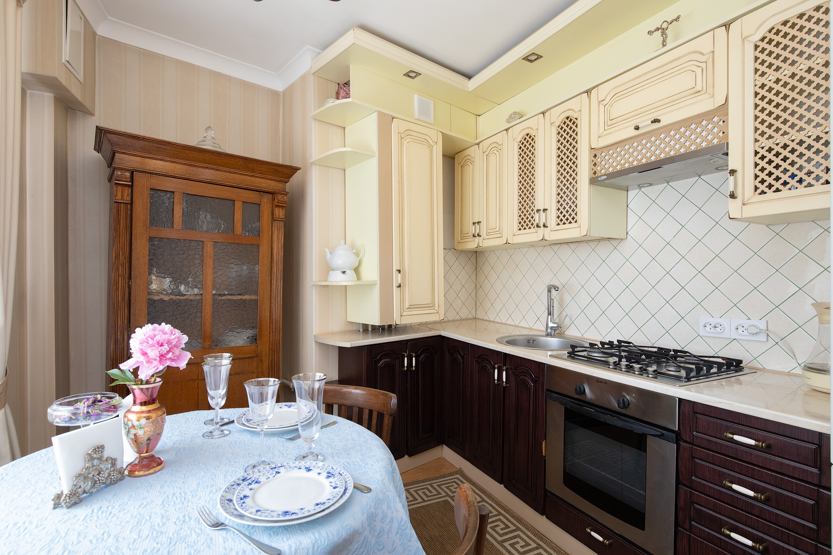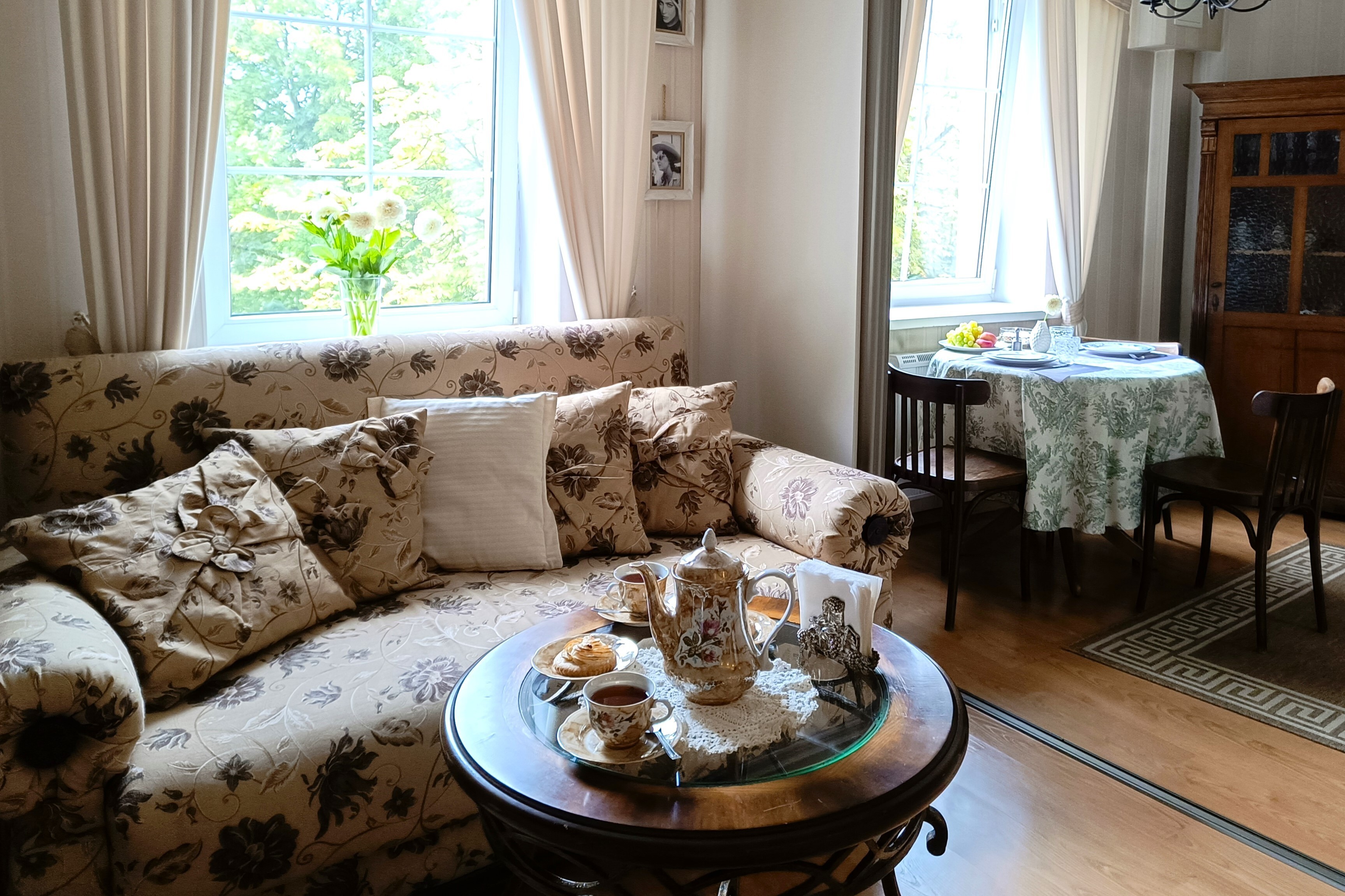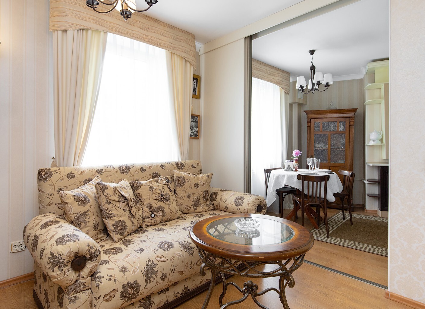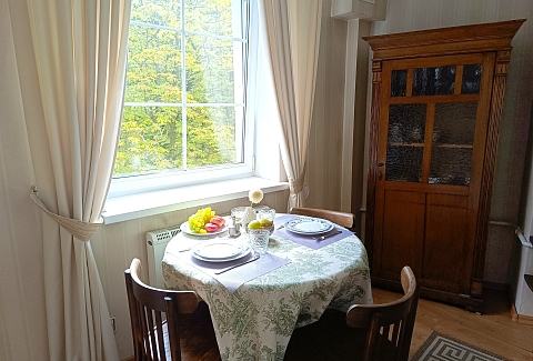 Апартаменты находятся в историческом районе Калининграда, на улице Комсомольской, где атмосфера старого города ощущается особенно остро. До остановки общественного транспорта — всего минута неспешным шагом, а в радиусе десяти-пятнадцати минут пешком — знаковые места: район вилл Амалиенау, Центральный парк, Калининградский зоопарк и даже Площадь Победы. Вокруг сложилась привычная городская инфраструктура, есть всё необходимое для жизни.Внутри — стильное пространство с винтажными деталями, создающее ощущение уютной эстетики.