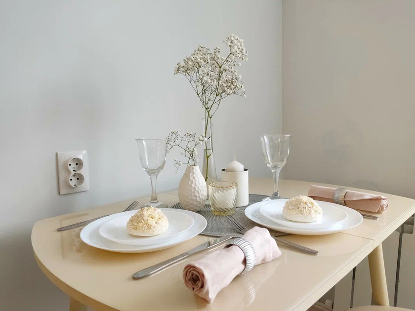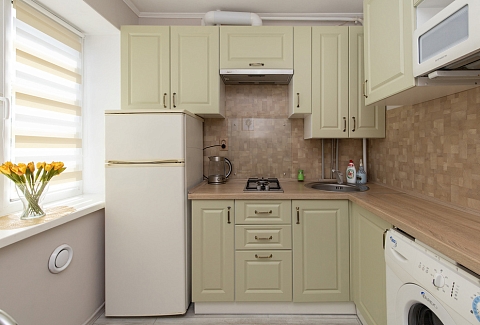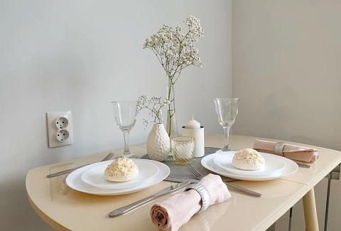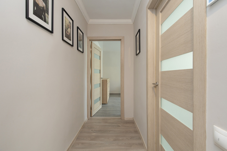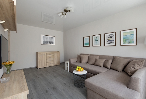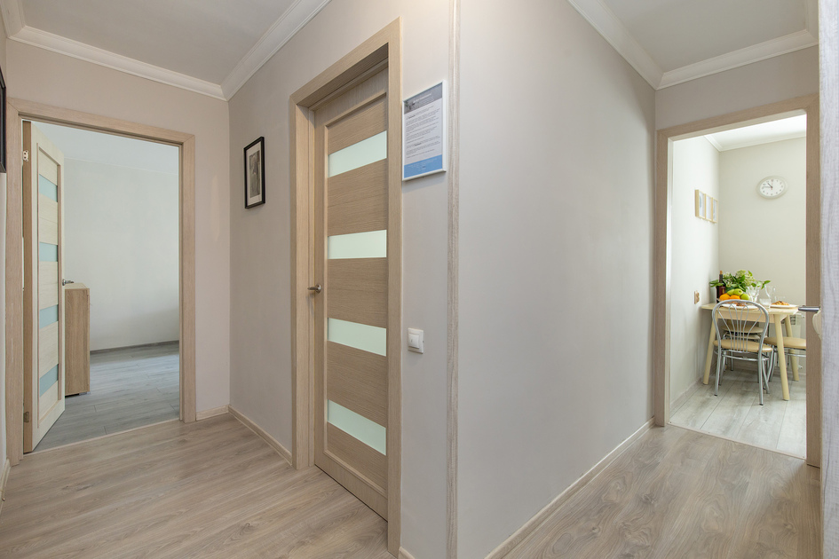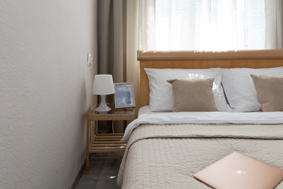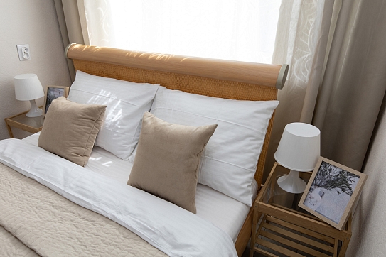 Апартаменты предоставляют гостям функциональное пространство для проживания. В соответствии со стандартами обслуживания, после каждого отъезда проводится влажная уборка, а для гостей предоставляется свежее постельное белье из профессиональной прачечной. В помещении оборудовано всё необходимое для быта, включая базовые средства гигиены, комплект посуды и бытовую технику.Интерьер выполнен в современном стиле, обеспечивая практичность и комфорт.