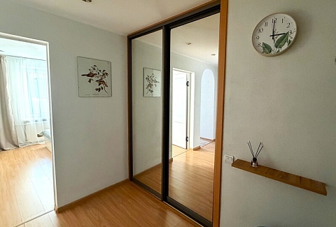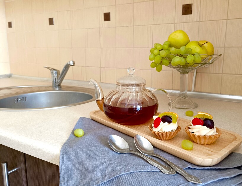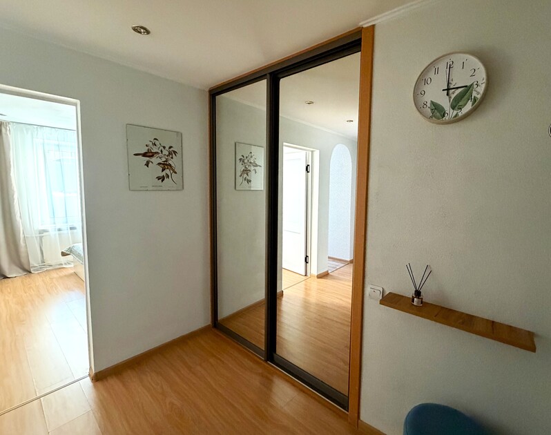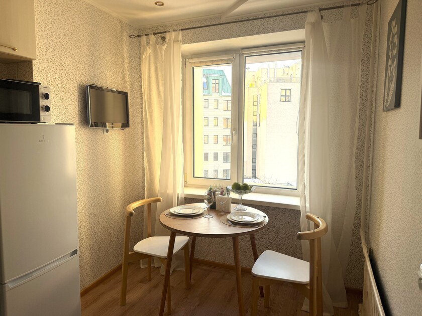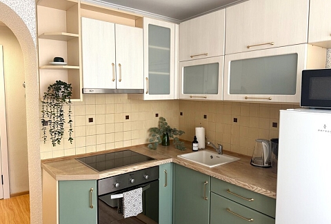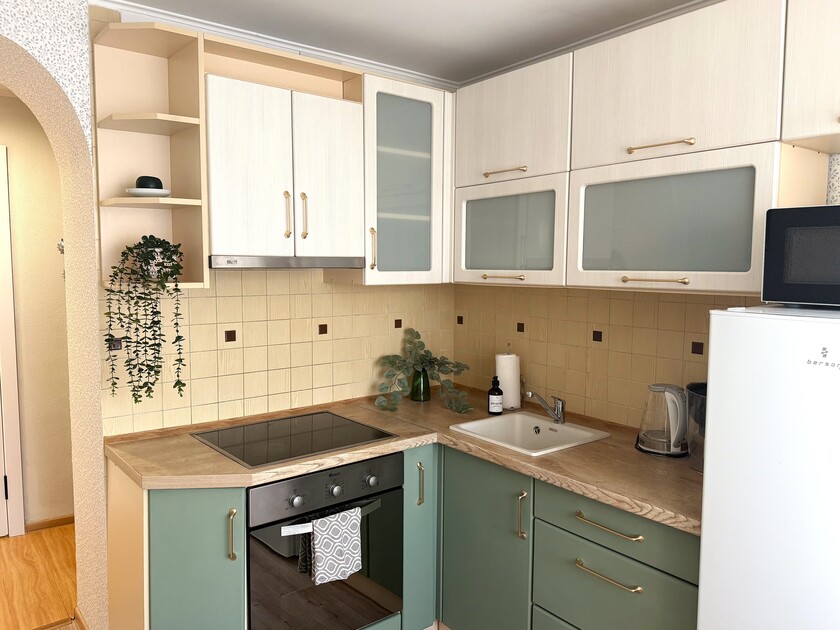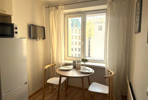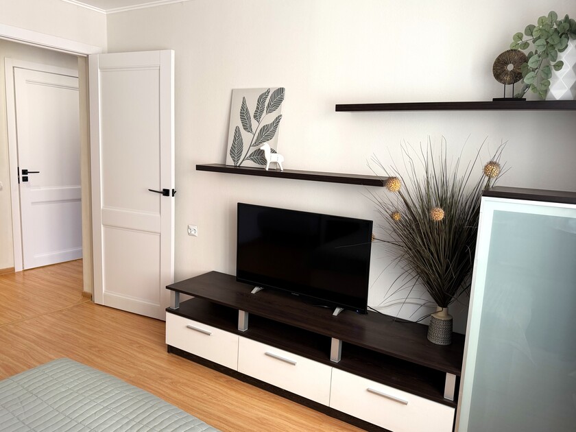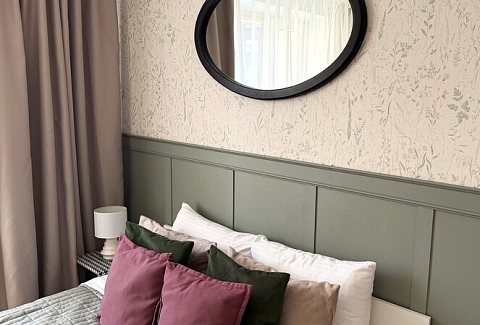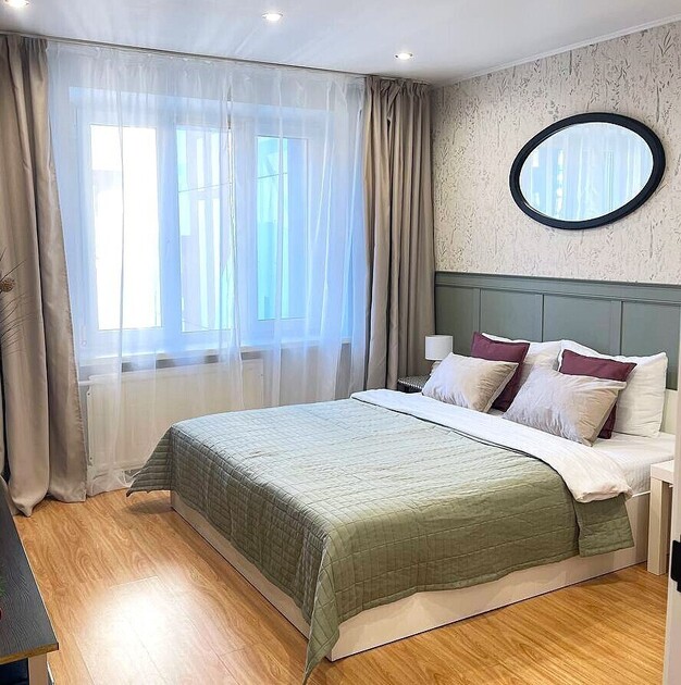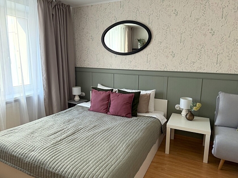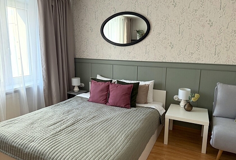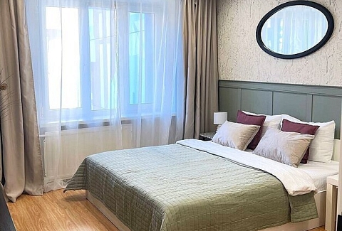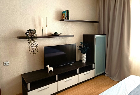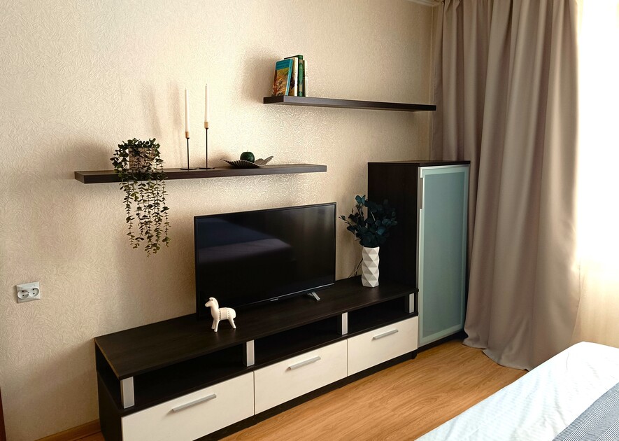 Апартаменты предоставляют гостям функциональное пространство для проживания. В соответствии со стандартами обслуживания, после каждого отъезда проводится влажная уборка, а для гостей предоставляется свежее постельное белье из профессиональной прачечной. В помещении оборудовано всё необходимое для быта, включая базовые средства гигиены, комплект посуды и бытовую технику.Интерьер выполнен в современном стиле, обеспечивая практичность и комфорт.