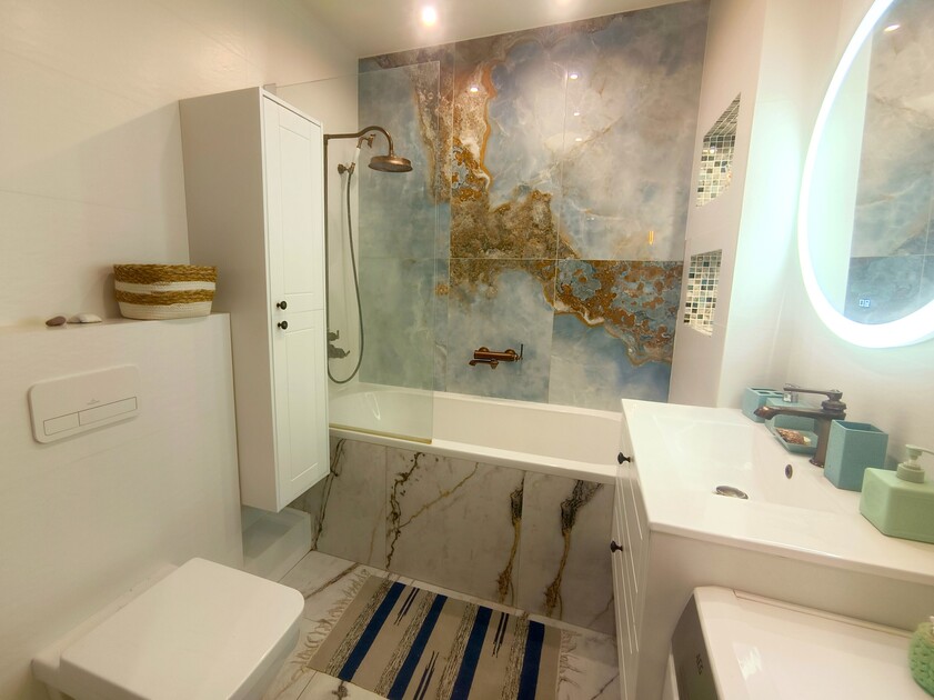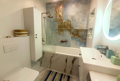 Санузел: с ванной, туалетные принадлежности, фен