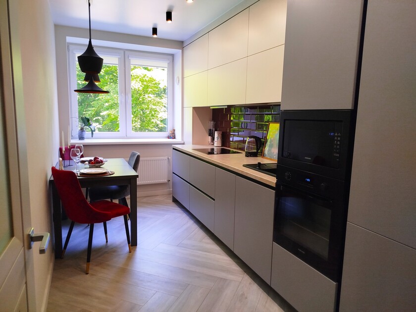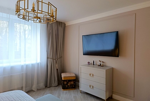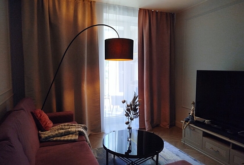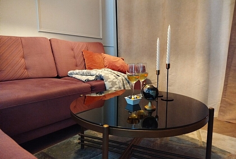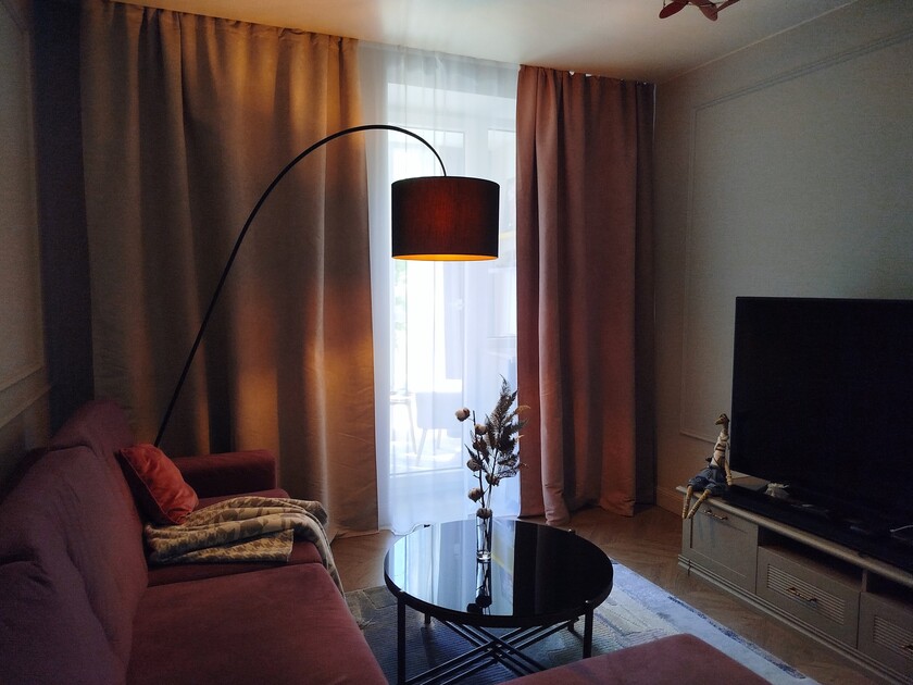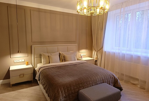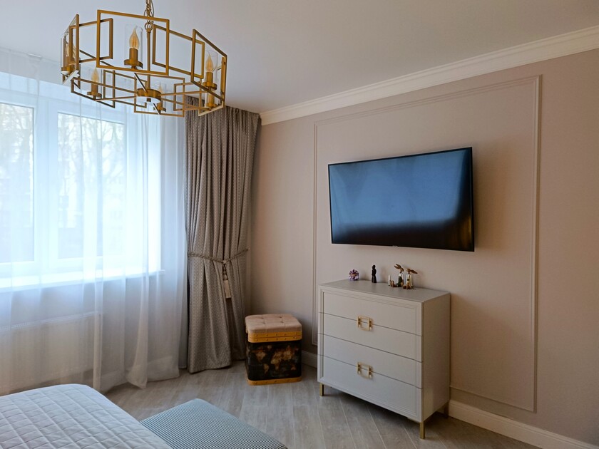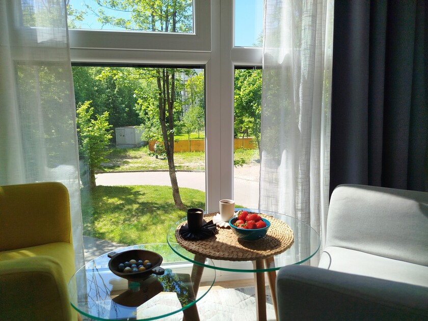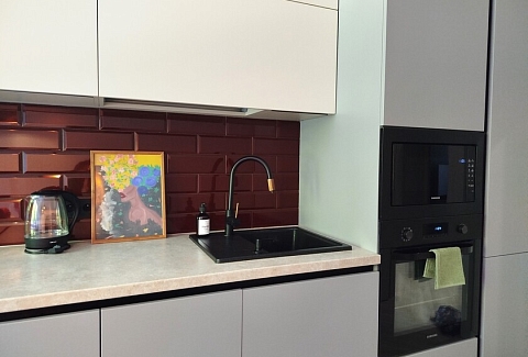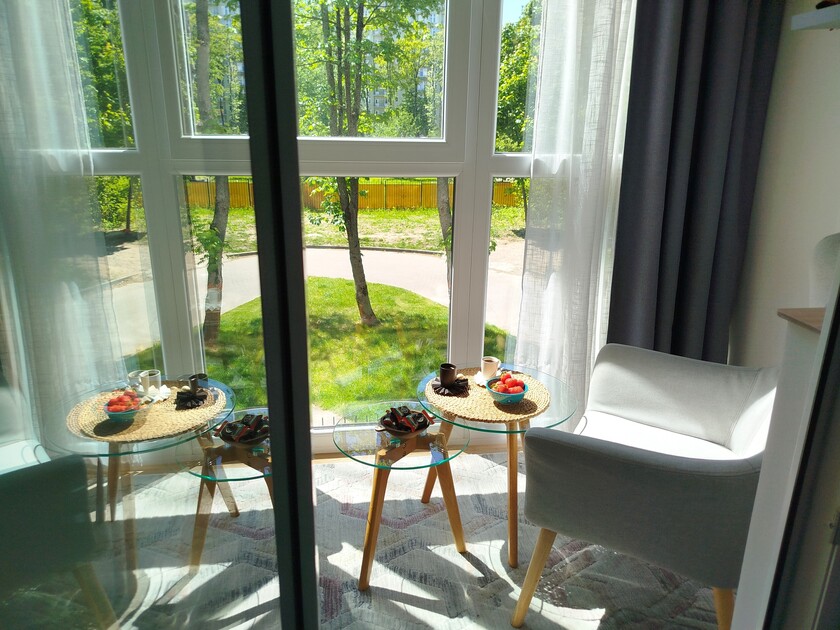 Апартаменты предоставляют гостям функциональное пространство для проживания. В соответствии со стандартами обслуживания, после каждого отъезда проводится влажная уборка, а для гостей предоставляется свежее постельное белье из профессиональной прачечной. В помещении оборудовано всё необходимое для быта, включая базовые средства гигиены, комплект посуды и бытовую технику.Интерьер выполнен в современном стиле, обеспечивая практичность и комфорт.