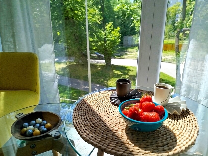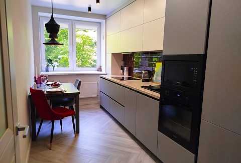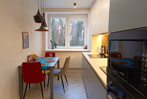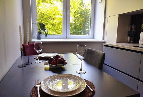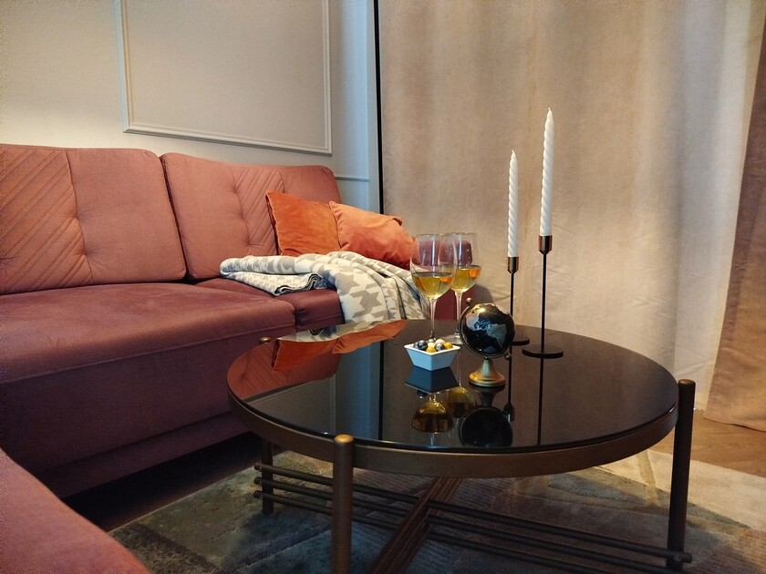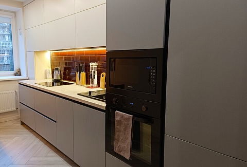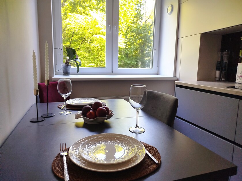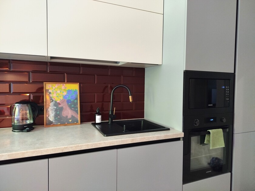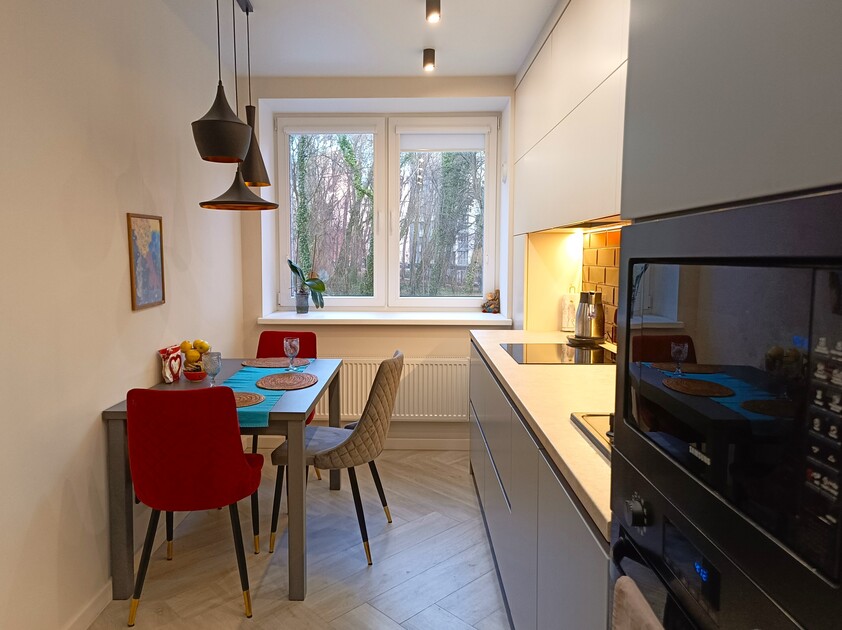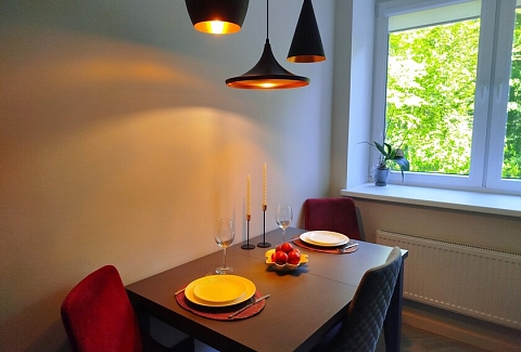 Апартаменты предоставляют гостям функциональное пространство для проживания. В соответствии со стандартами обслуживания, после каждого отъезда проводится влажная уборка, а для гостей предоставляется свежее постельное белье из профессиональной прачечной. В помещении оборудовано всё необходимое для быта, включая базовые средства гигиены, комплект посуды и бытовую технику.Интерьер выполнен в современном стиле, обеспечивая практичность и комфорт.