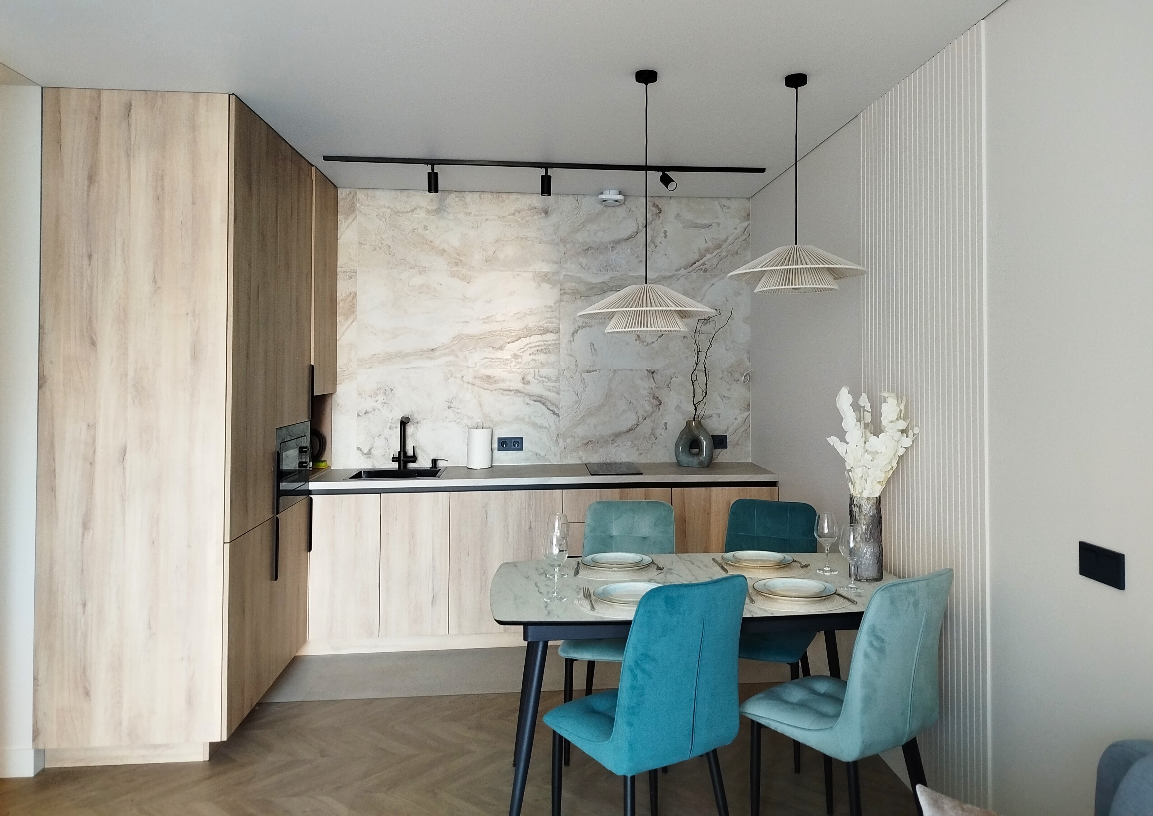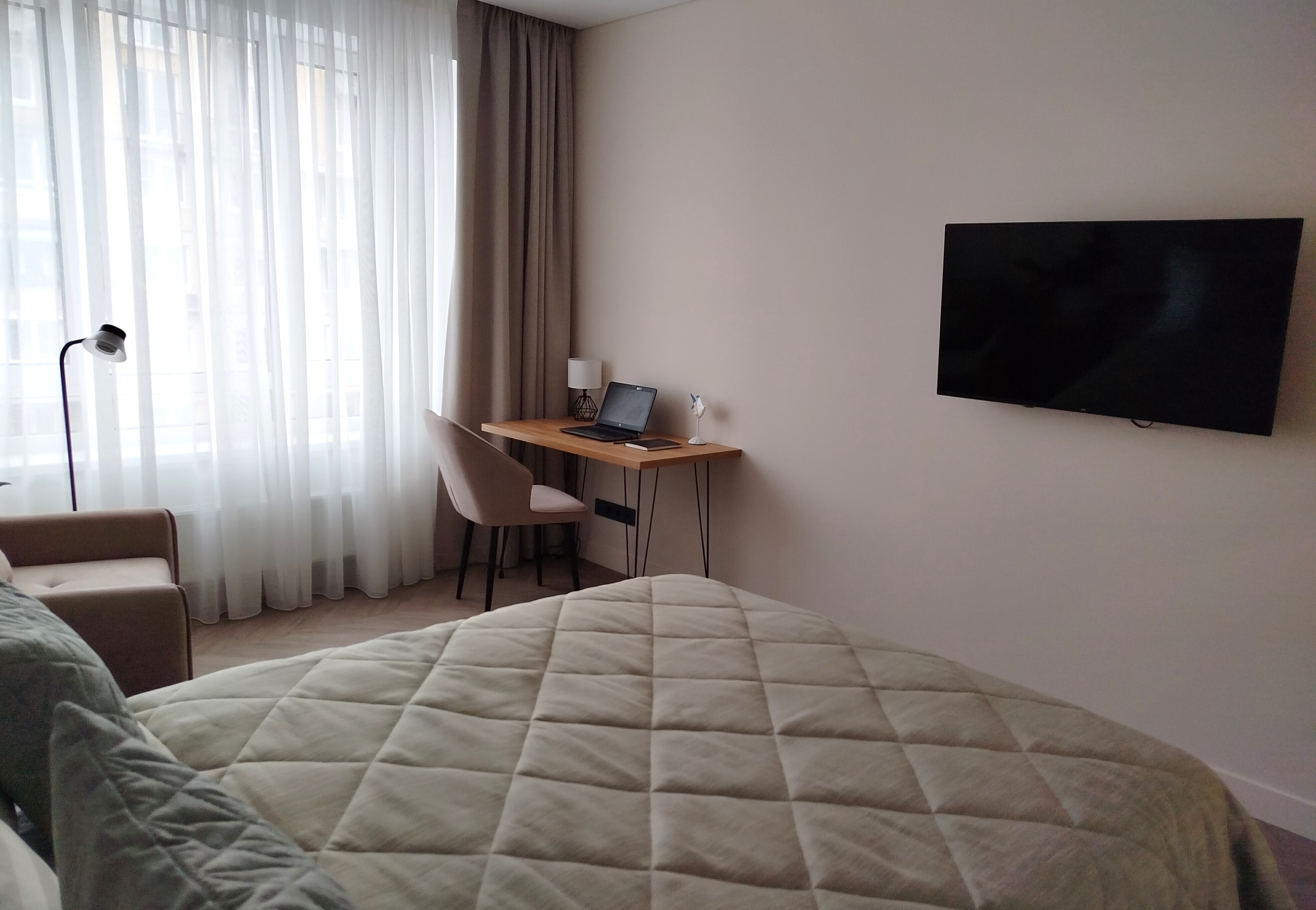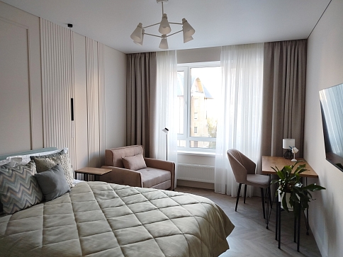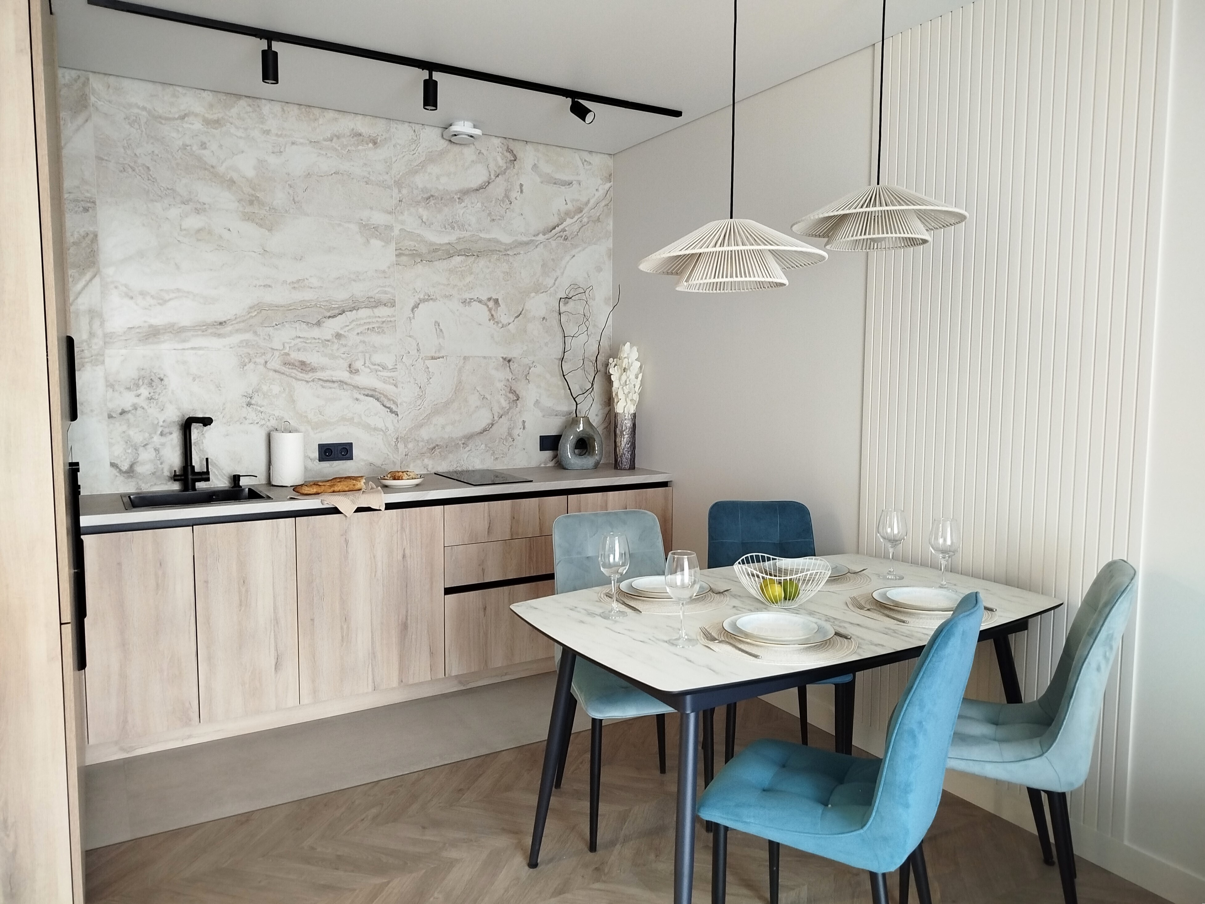Рядом с домом — супермаркет Spar, уютная кофейня, аптека и остановки общественного транспорта, что делает пребывание максимально удобным. Внутри — продуманное пространство для большой семьи или компании. В двух отдельных спальнях установлены удобные кровати, а просторная кухня-гостиная дополнена раскладным диваном, так что здесь с комфортом разместятся до восьми человек. Кухня полностью готова к приготовлению домашних блюд: есть вся необходимая техника, посуда и даже стартовый набор чая и кофе. В апартаментах предусмотрено три санузла — с ванной и душевой кабиной, что исключает утренние очереди. Для гостей приготовлены свежие полотенца, средства гигиены, фен и стиральная машина. В каждой комнате работает кондиционер, а по всему периметру — высокоскоростной Wi-Fi и телевизоры. Продуманы и мелочи для семей с детьми: по запросу предоставляется кроватка, горшок и игрушки. Это место, где хочется останавливаться снова: спокойная цветовая гамма, бесконтактное заселение в любое время суток и забота о каждой детали создают ощущение домашнего уюта вдали от дома.