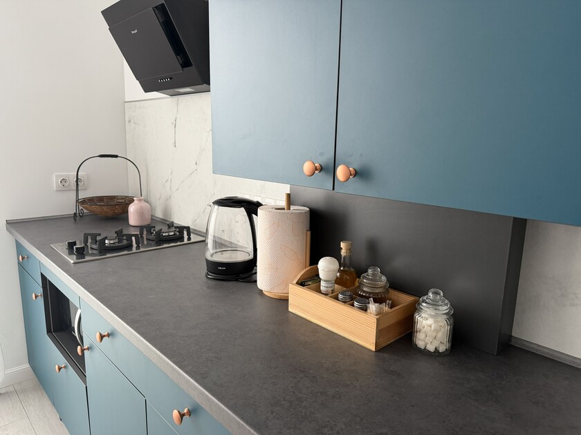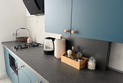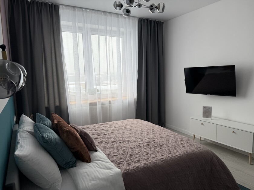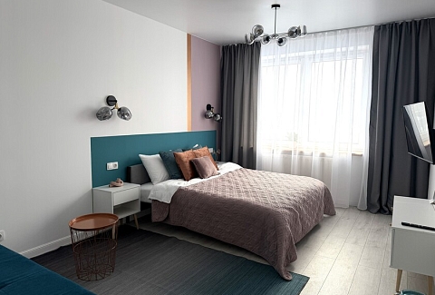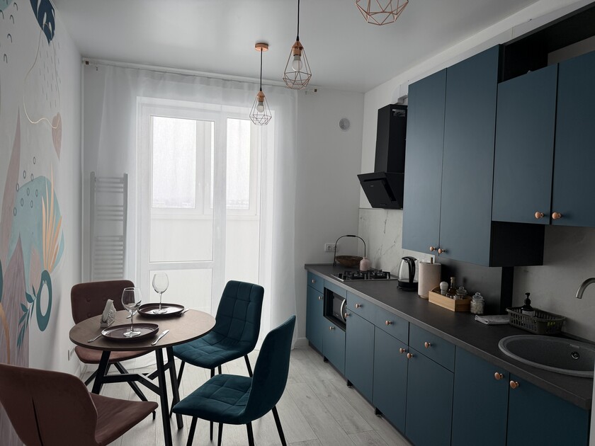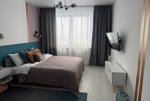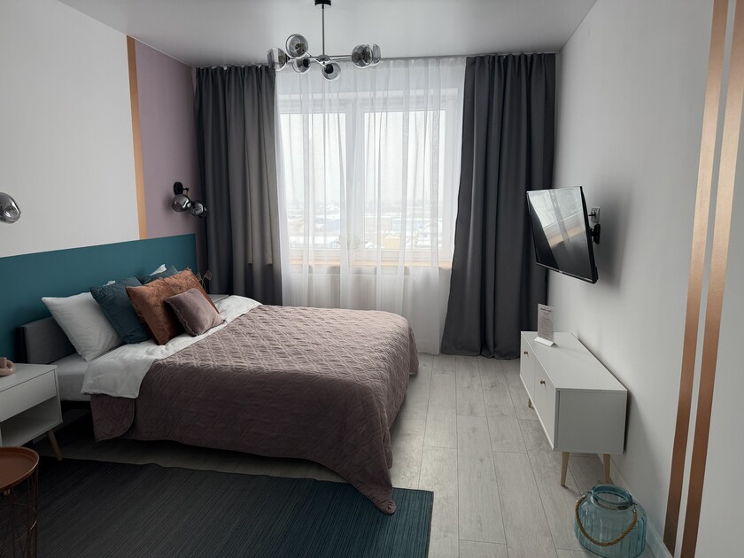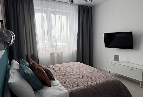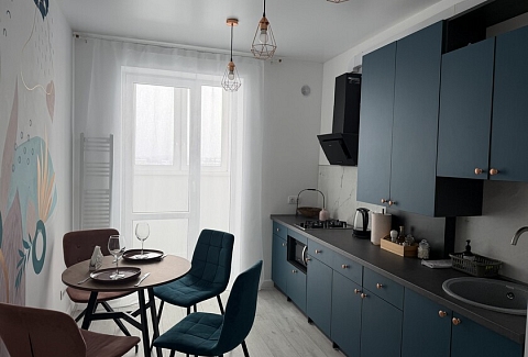 Дом 2018 года постройки с благоустроенной территорией и детскими площадками оборудован лифтом, а вход в подъезд без ступенек будет удобен для гостей с колясками. Внутри гостей ждет комфортное пространство для жизни и работы. В просторной спальне-гостиной установлена двуспальная кровать (160×200 см), а мягкий диван (140×200 см) предоставляет дополнительное спальное место. Кухня полностью готова к приготовлению еды: есть вся необходимая техника, посуда, а также приятные мелочи к чаю и кофе. В ванной комнате гостей ждут свежие белоснежные полотенца, фен, стиральная машина и базовые гигиенические принадлежности. Особое настроение создает застекленная лоджия с высокими стульями, откуда открывается вид на индустриальную панораму и небо над городом. Для удобства предусмотрены вместительный шкаф в прихожей, сушилка для белья, гладильная доска с утюгом, а также телевизор и высокоскоростной Wi-Fi.
