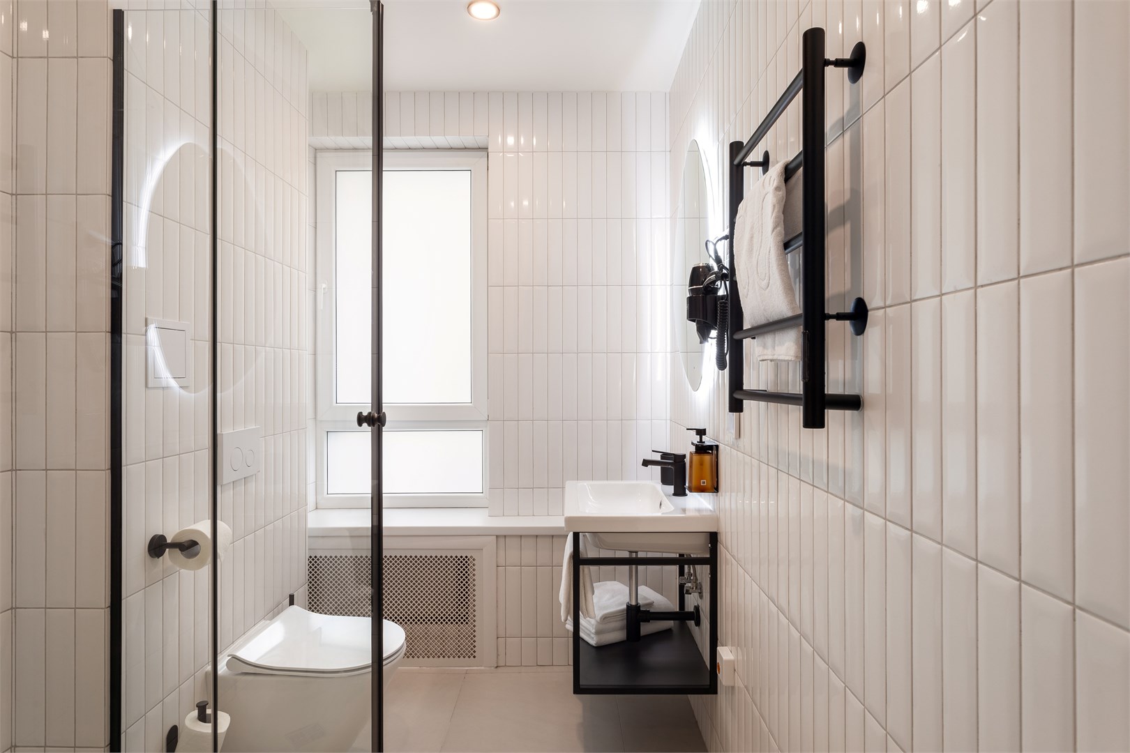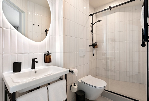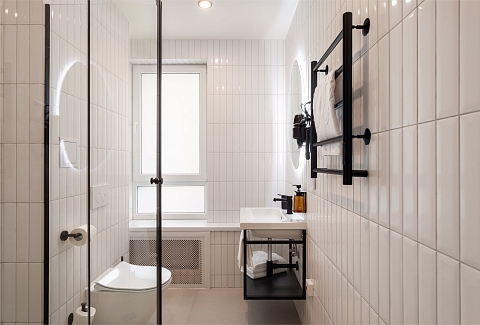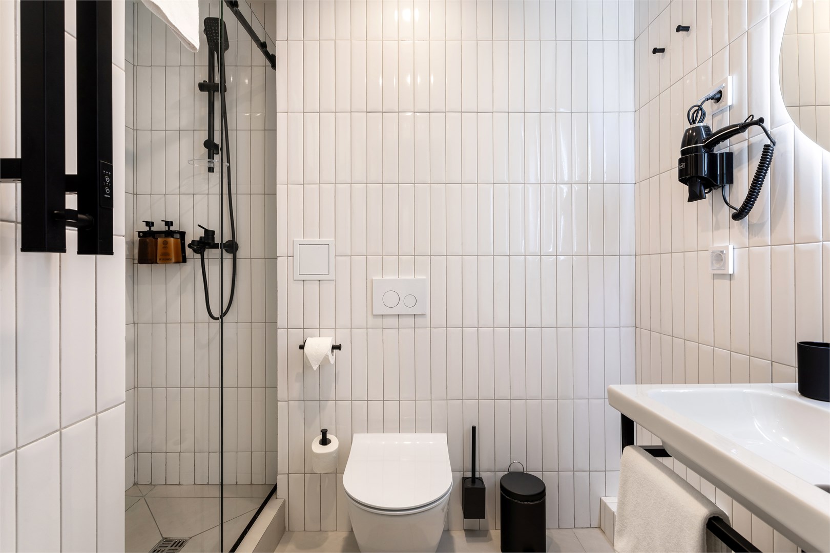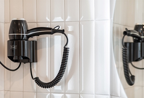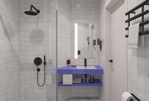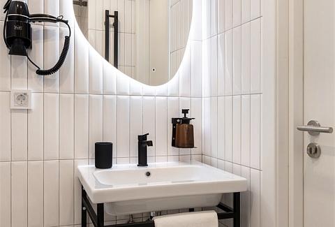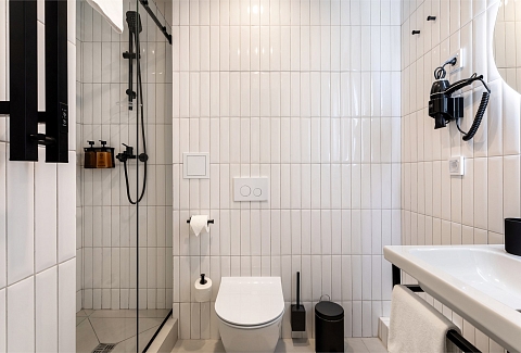 Санузел: с душем, туалетные принадлежности, фен