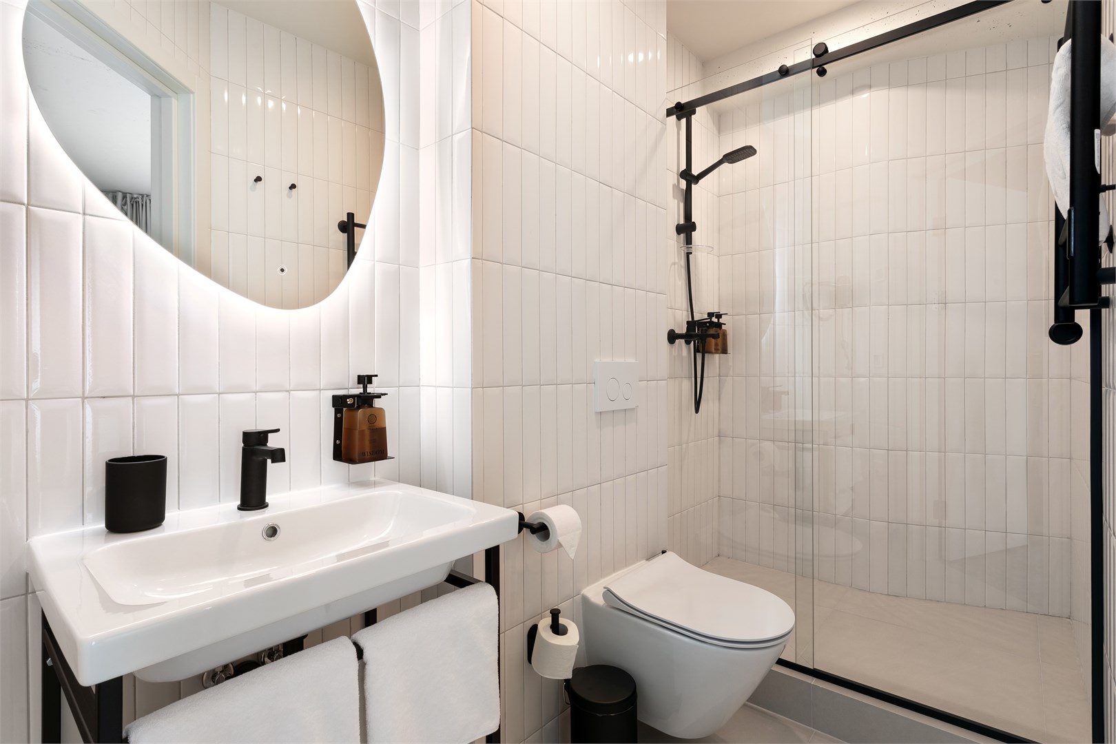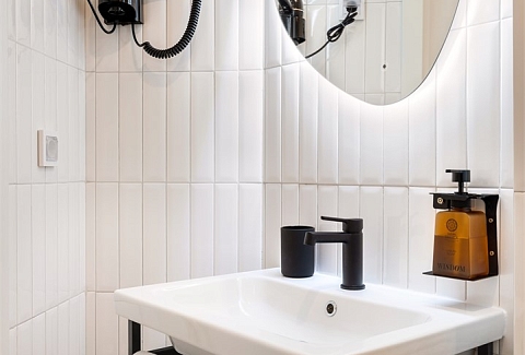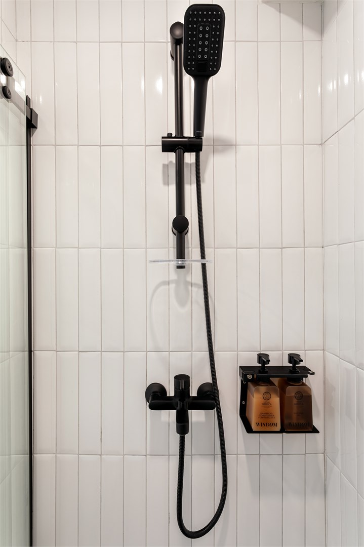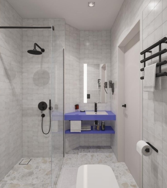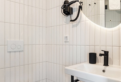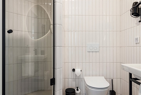Санузел: с душем, туалетные принадлежности, фен