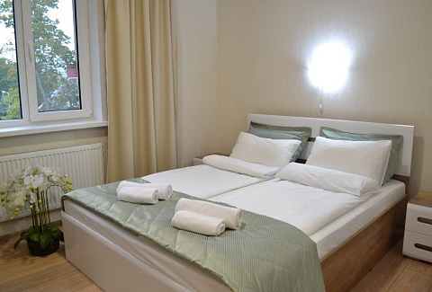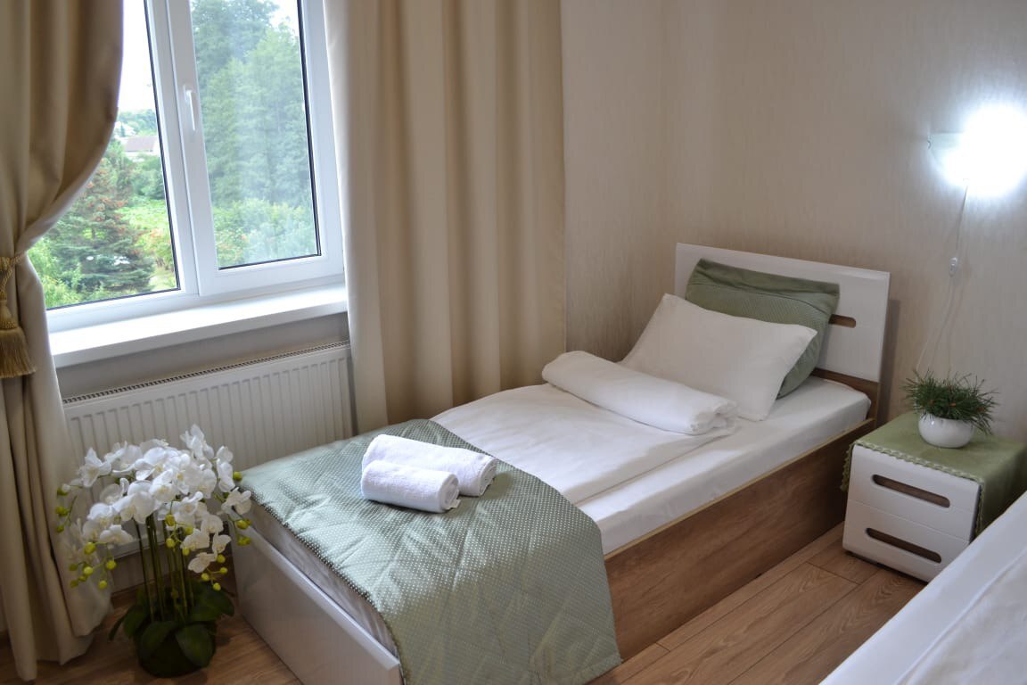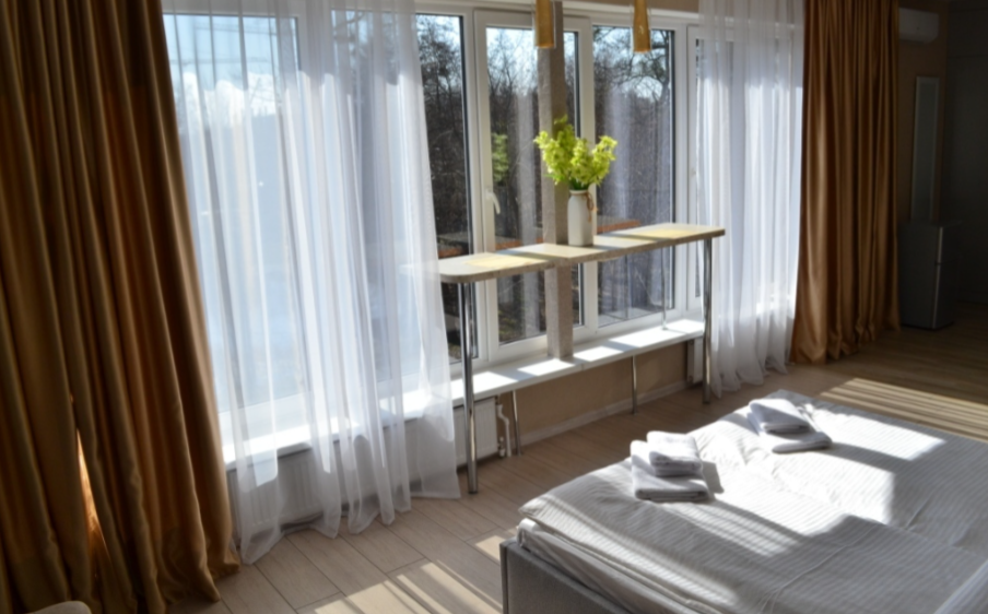 Жилой фонд включает стандартные и улучшенные номера для двоих гостей. Представлены как одно-, так и двуспальные кровати. Возможно размещение третьего постояльца на дополнительном спальном месте. Все комнаты элегантно оформлены в сдержанной цветовой гамме, располагают полным комплектом необходимой мебели и техники, отдельным санузлом. Некоторые типы проживания дополнены панорамным остеклением. Из окон открывается живописный вид на парк.В гостинице открыт ресторан, утром можно заказать завтрак. Стойка регистрации работает круглосуточно. К зданию примыкает вместительная гостевая парковка. На всей территории доступно подключение к Wi-Fi.