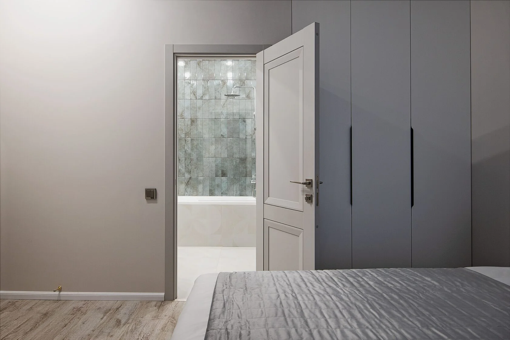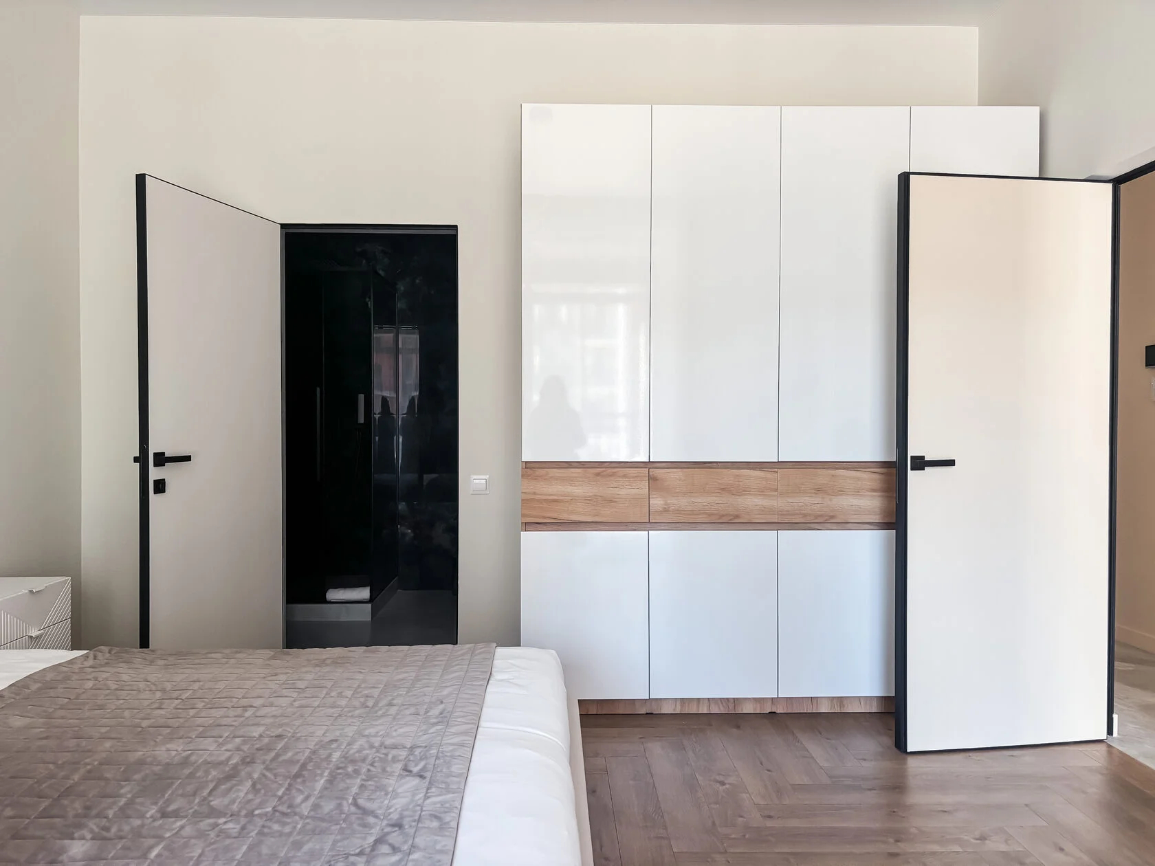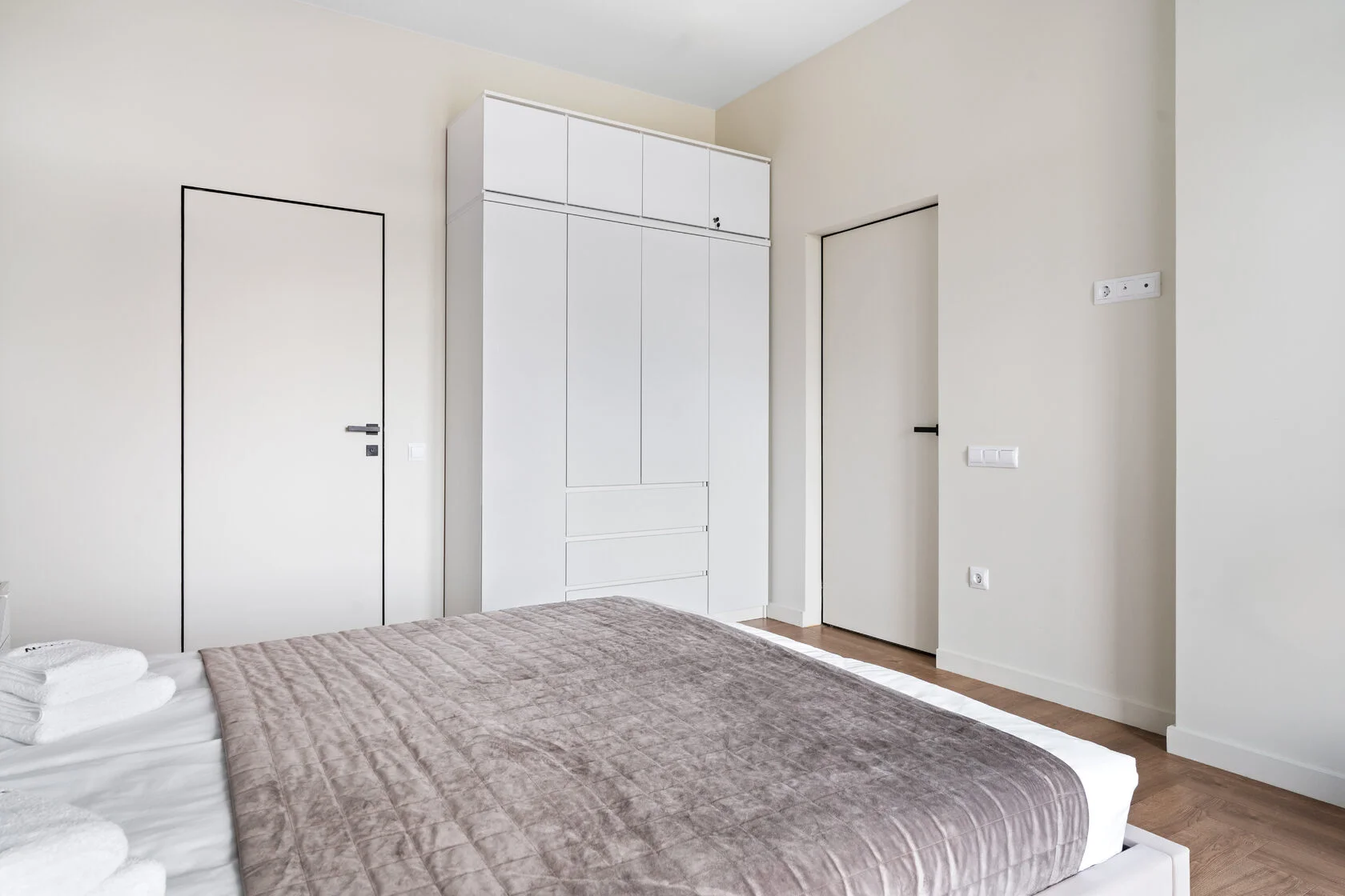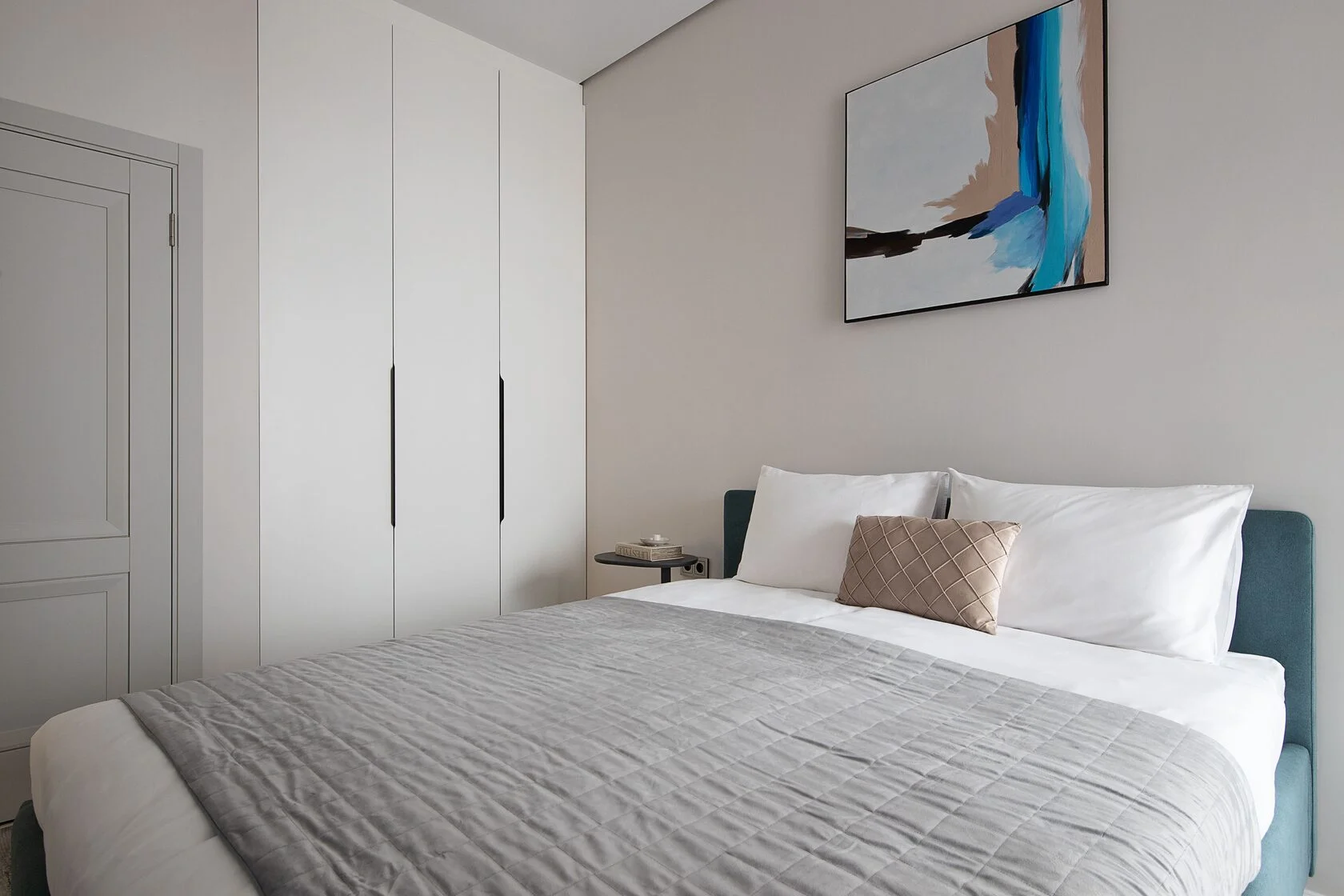 В номере: вешалка, диван, зеркало, кровать двуспальная, прикроватные тумбочки, стол, стулья, шкаф, кондиционер, микроволновая печь, набор посуды, плита электрическая, стиральная машина, телевизор ЖК, утюг, холодильник, чайный набор посуды, электрочайник