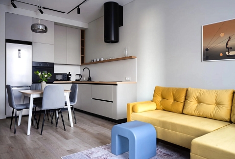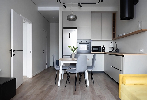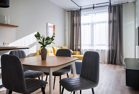 Железнодорожный вокзал «Северный» – в 15 минутах езды, а до аэропорта Храброво можно доехать за полчаса.Апартаменты расположились в многоэтажном жилом доме современного жилого комплекса бизнес-класса, возвышающемся на улице Молодой Гвардии. В распоряжении гостей двухкомнатные 2-местные номера с современным интерьером и просторным балконом-террасой. Апартаменты оборудованы кухней-гостиной, спальной зоной, есть санузел с душем и собственная сауна. В номере есть вся необходимая бытовая техника: электроплита, электрочайник, микроволновая печь, стиральная машина, кондиционер, телевизор-ЖК. Среди прочих удобств – высокоскоростной интернет и охраняемая открытая парковка.