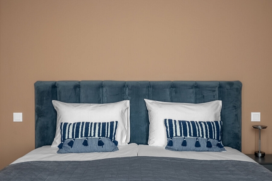 В номере: диван, зеркало, кровать двуспальная, стол, стулья, шкаф, гладильная доска, духовой шкаф, кондиционер, микроволновая печь, набор посуды, плита газовая, стиральная машина, сушилка для белья, телевизор ЖК, утюг, холодильник, чайный набор посуды, электрочайник