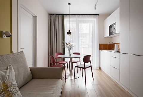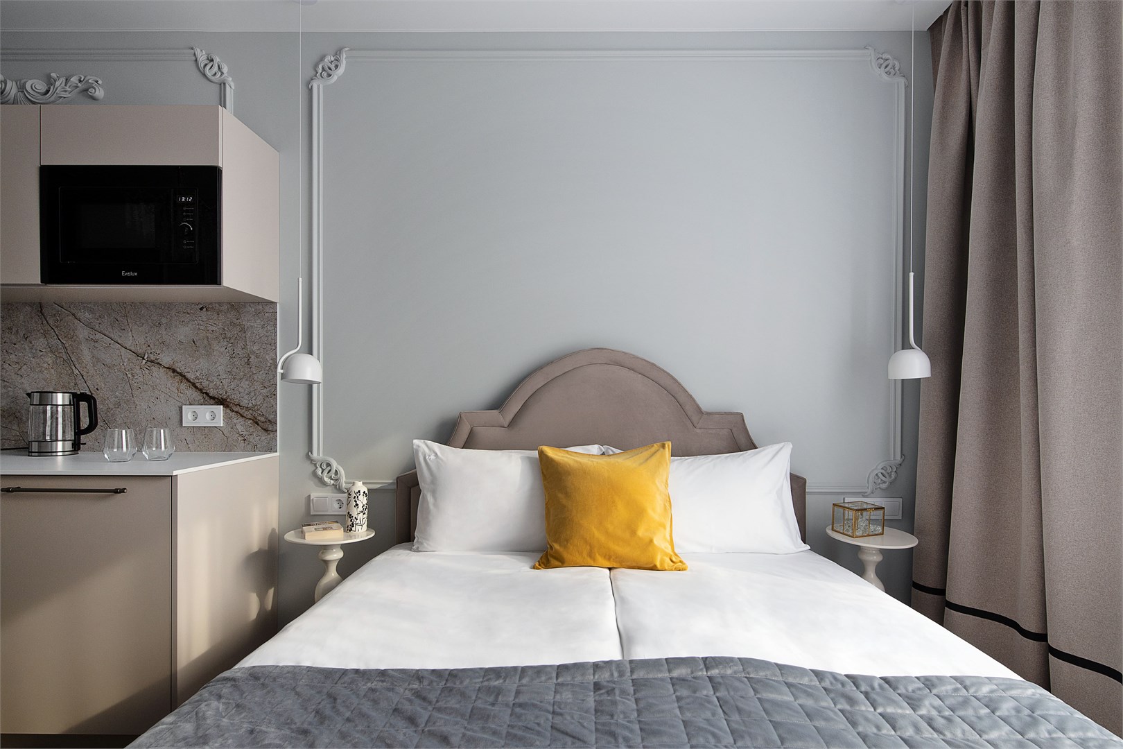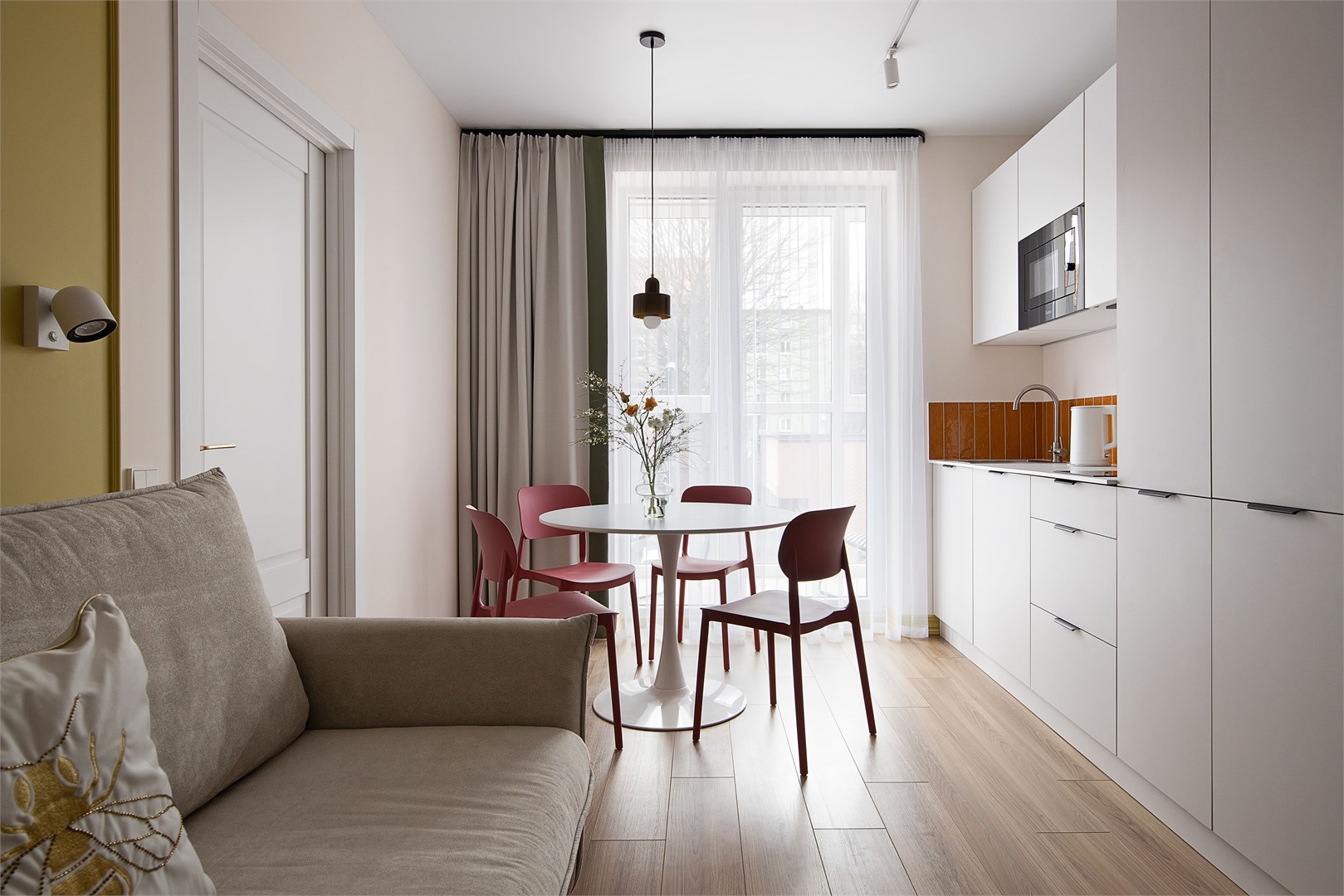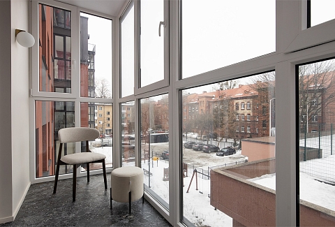 Апартаменты расположены в Калининграде на тихой улице Стекольной, в жилом районе с очень удобной повседневной инфраструктурой. Рядом с домом находятся продуктовые магазины и супермаркеты, несколько кафе, аптека и остановки общественного транспорта — отсюда легко добраться до исторического центра и главных городских достопримечательностей. Для тех, кто путешествует на автомобиле, предусмотрена общественная парковка.Внутри гостей ждут чистые и стильные пространства.