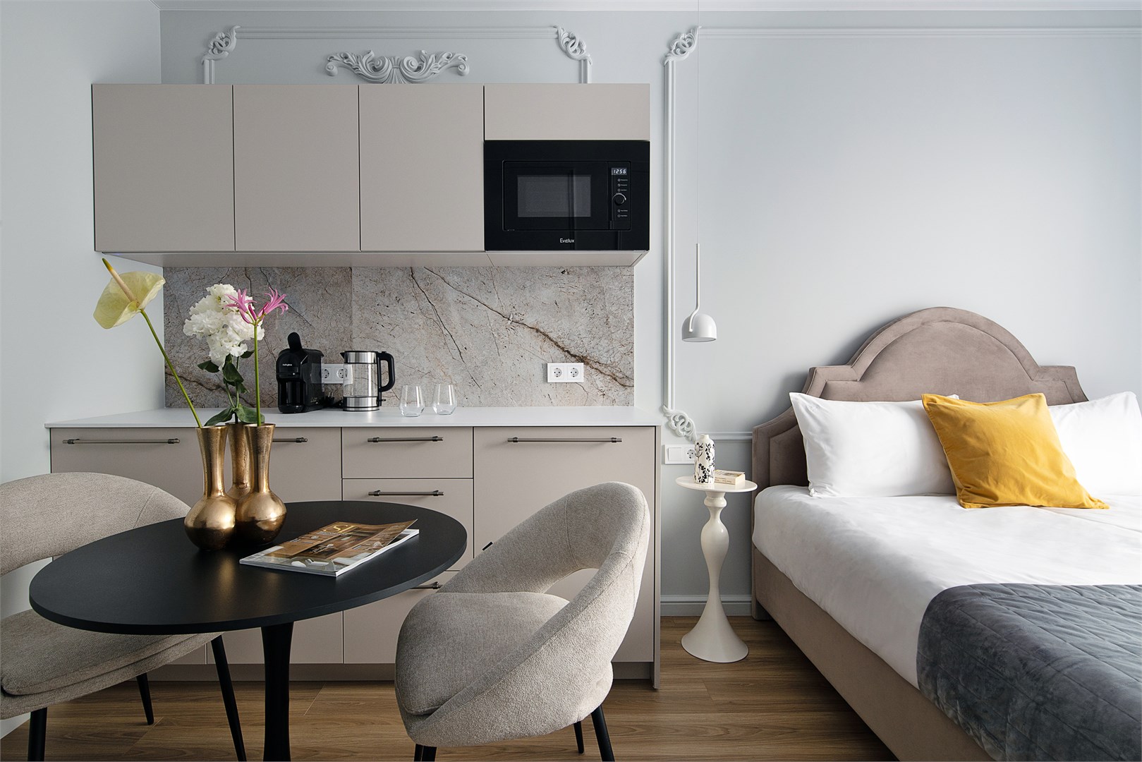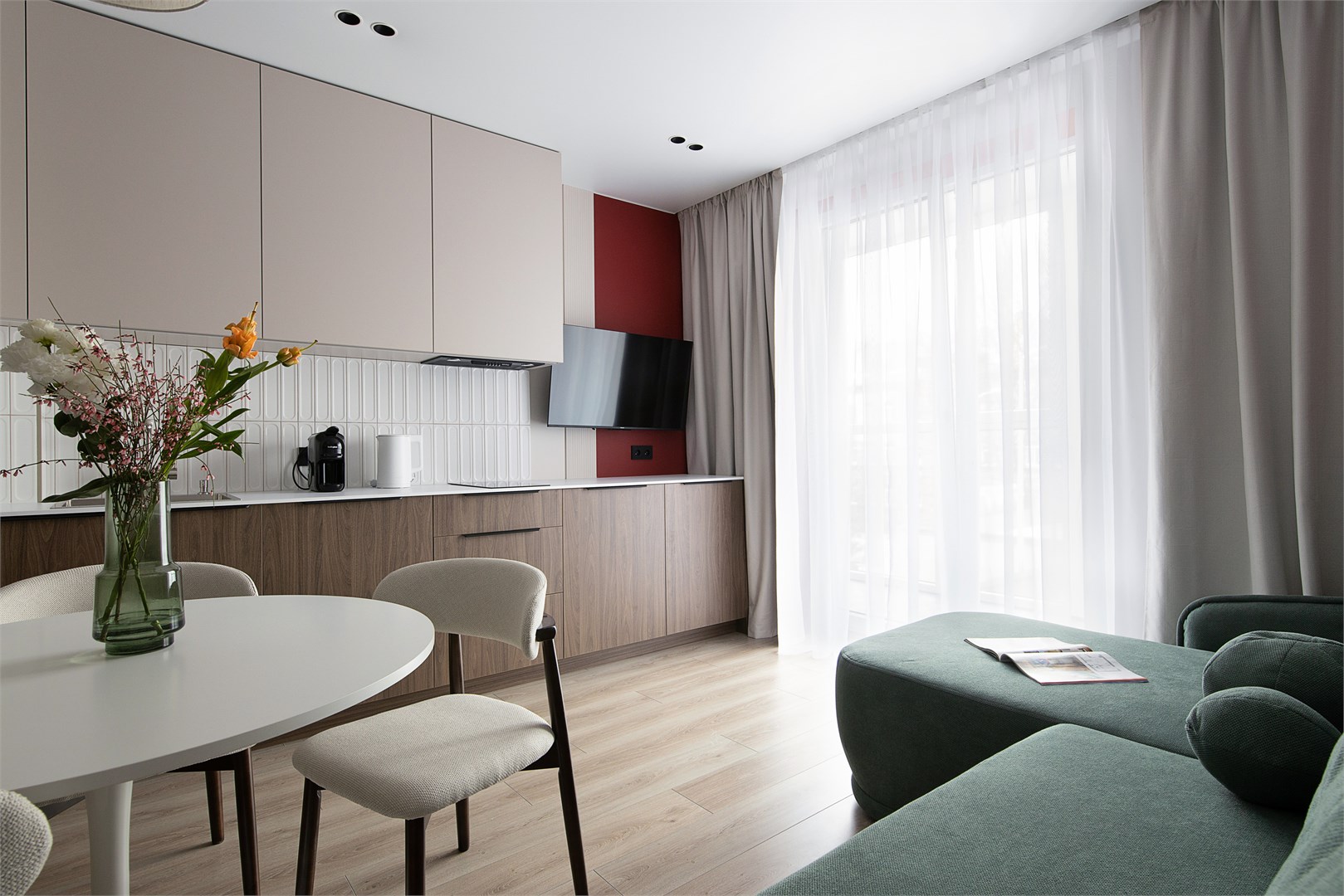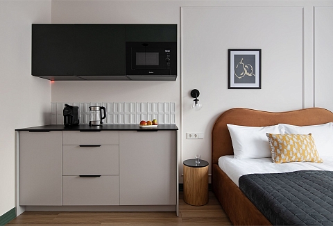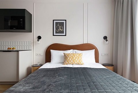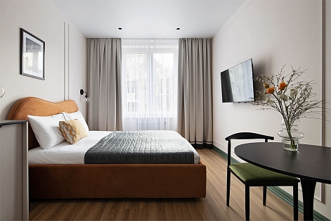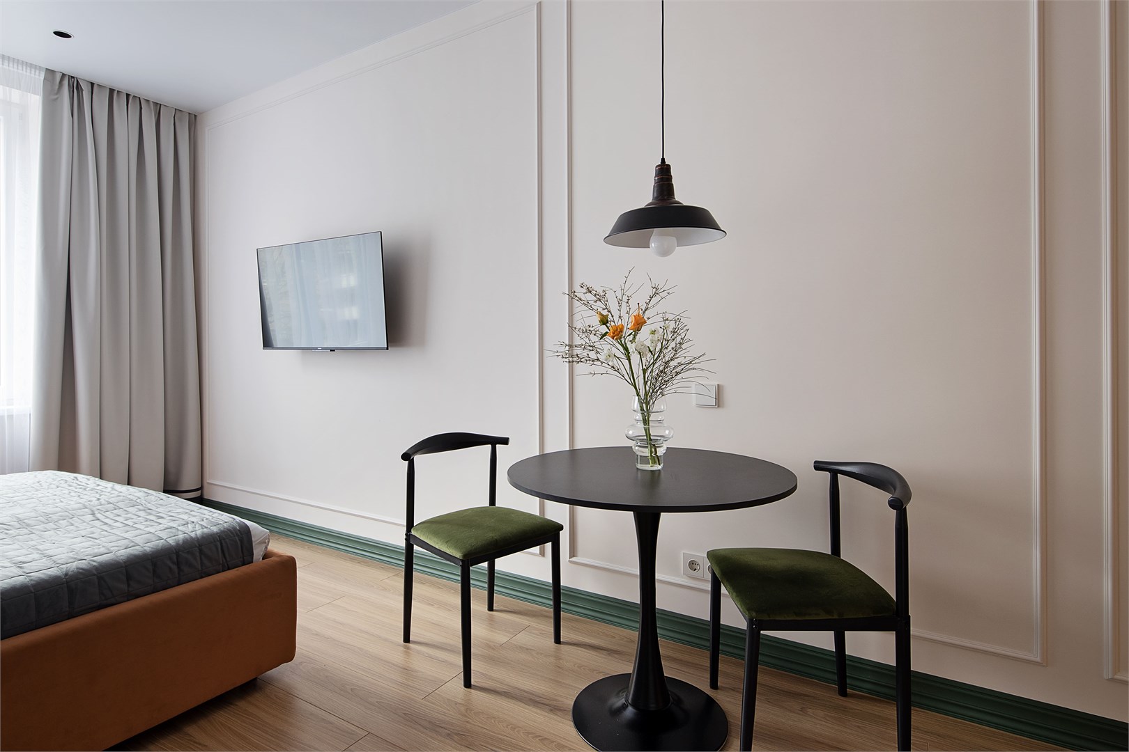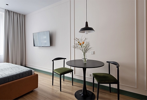 К услугам постояльцев несколько вариантов: уютные однокомнатные апартаменты на двоих с романтичными названиями «Вишнёвый вечер», «Жемчуг» и «Охра», а также просторные двухкомнатные апартаменты «Экзотика», которые с комфортом разместят до четырёх гостей. Каждый вариант оснащён современной бытовой техникой, полным набором посуды и всем необходимым для жизни вдали от дома. В распоряжении гостей кондиционер, собственный санузел с феном, набор полотенец и гигиенические принадлежности. Приятные мелочи создают ощущение продуманной заботы: в номере можно найти чай, кофе, питьевую воду, работает бесплатный Wi-Fi и телевизор. «Pavlov» — это спокойствие, независимость и домашний уют в современном исполнении. Атмосфера располагает к неспешному отдыху и полному расслаблению. Такое размещение идеально подойдёт самостоятельным парам, которые ценят приватность, семьям с детьми, предпочитающим готовить самим, а также деловым путешественникам, ищущим надёжное и комфортное убежище после рабочего дня в городе.
