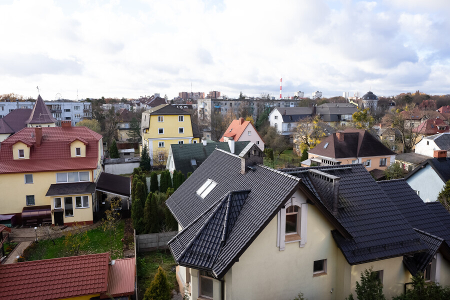 Поездом до ж/д вокзала Калининград-Южный, далее на автобусе №3 до остановки «Гостиница Калининград», далее 780 м до апартаментов.