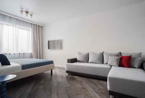 Апартаменты Pavlov Озеро— стильное и уютное жильё площадью 42 кв.м идеально подходящее для комфортного размещения до 4-х гостей.В спальне установлена удобная двуспальная кровать размером 160x200 см и раскладной диван, который легко трансформируется в спальное место для двоих.Кухня оборудована современной техникой: газовой плитой, микроволновкой, духовкой, фильтром для воды, холодильником и кофемашиной — всё, что нужно для приготовления вкусных блюд. Также в апартаментах есть телевизор в гостиной, стиральная машина и пылесос для удобства.Ванная комната оснащена ванной, раковиной и туалетом, обеспечивая комфорт и удобство.Расположение апартаментов рядом с Верхним озером — это настоящее преимущество. Это живописное место с благоустроенной набережной, идеально подходящее для прогулок, катания на велосипедах или электросамокатах.