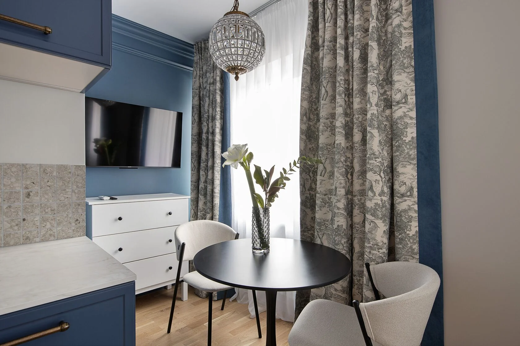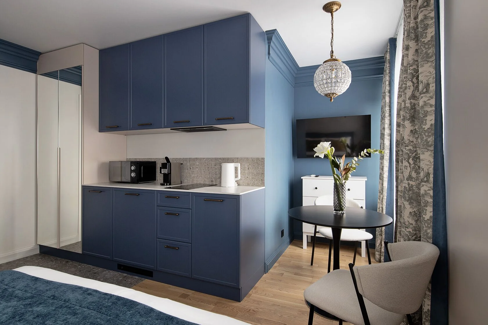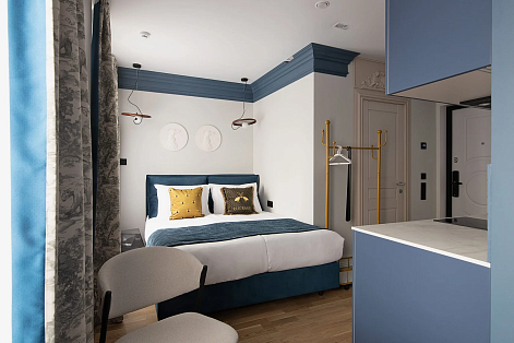 В самом сердце Калининграда, где история переплетается с современной жизнью, расположилась дизайнерская студия Pavlov «Вечер». Она находится в шаговой доступности от знаковых мест города, таких как живописная Рыбная деревня и философский Остров Канта, что делает ее идеальной отправной точкой для знакомства с городом. Здесь каждый элемент интерьера — от контрастных цветовых вставок до рельефных декоративных деталей — продуман как художественный штрих, создавая пространство с глубиной, динамикой и неповторимым характером.Студия предлагает все для комфортного и эстетичного проживания.