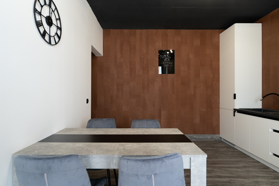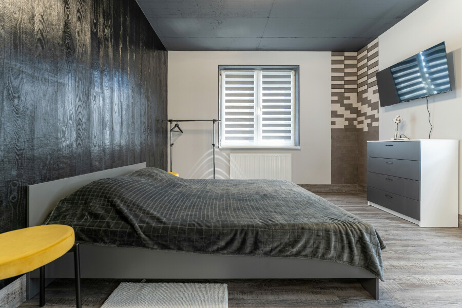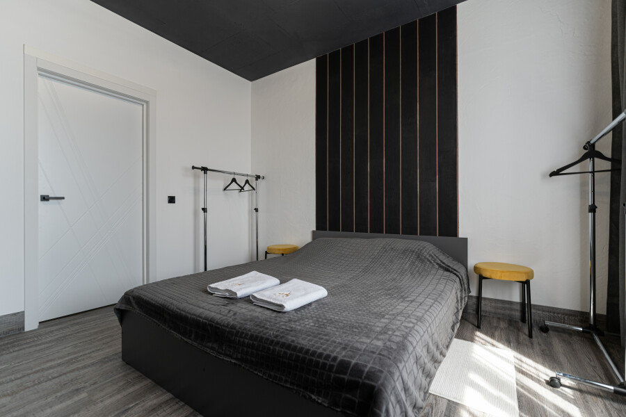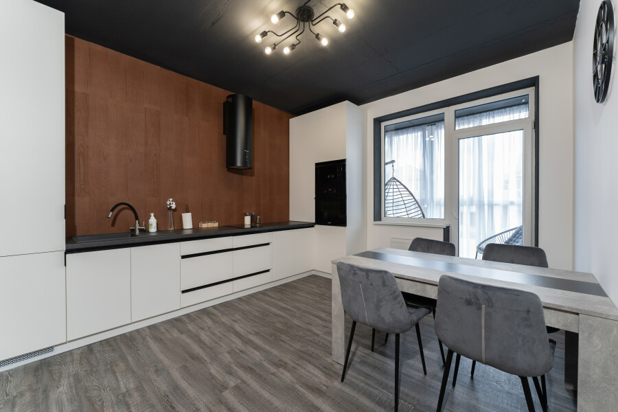 Современные апартаменты с минималистичным интерьером в кофейно-серых тонах располагаются в новом доме с закрытой территорией и парковкой во дворе. Ближайшие продуктовые магазины работают в соседних зданиях. В апартаментах могут с комфортом разместиться 4 гостя: оборудованы 2 изолированные спальни, каждая укомплектована двуспальной кроватью. По запросу предоставляется детский манеж. Просторная столовая располагает полным комплектом кухонной утвари и бытовой техники, обеденным пространством. Совмещенный санузел оснащен ванной. Проживающим доступно подключение к Wi-Fi. Западный пляж находится в 20 минутах ходьбы. Побережье песчаное, вся инфраструктура для отдыха в наличии.