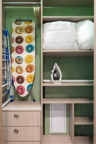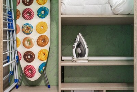 В номере: диван, зеркало, кровать двуспальная, стол, стулья, шкаф, духовой шкаф, кондиционер, микроволновая печь, набор посуды, плита электрическая, посудомоечная машина, стиральная машина, сушилка для белья, телевизор ЖК, утюг, холодильник, чайный набор посуды, электрочайник