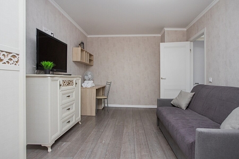 Современные апартаменты сочетает в себе стиль и функциональность, создавая атмосферу, где каждый гость сможет расслабиться и насладиться временем вдали от дома. Вся необходимая бытовая техника, необходимый набор посуды. По два полотенца для каждого гостя, одноразовые средства личной гигиены, одноразовые тапочки, качественный ортопедический матрас.Апартаменты расположены в тихом районе с развитой инфраструктурой, рядом магазины, супермаркеты, кафе и рестораны.Общественная парковка рядом с домом сделают пребывание еще более комфортным.