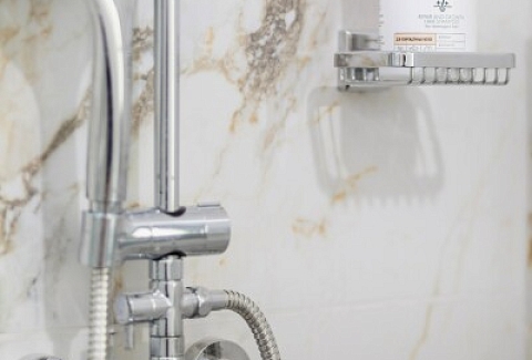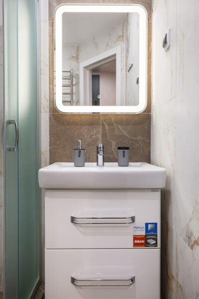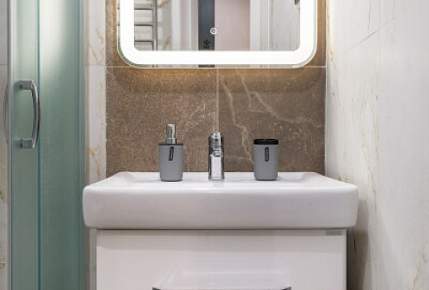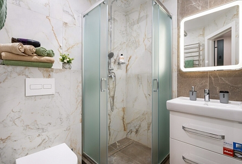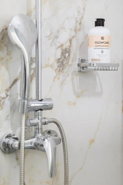 Санузел: с душем, туалетные принадлежности, фен