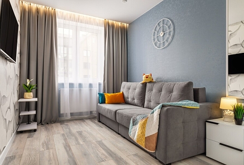 Апартаменты расположились в многоэтажном жилом доме.В распоряжении гостей двухкомнатный 2-местные апартаменты с уютным балконом. Среди удобств – кухня с электроплитой, электрочайником, духовым шкафом, микроволновой печью и холодильником, стиральная и стиральная машина, телевизор-ЖК и высокоскоростной интернет, санузел с ванной.Автомобиль можно оставить на неохраняемой открытой парковке.