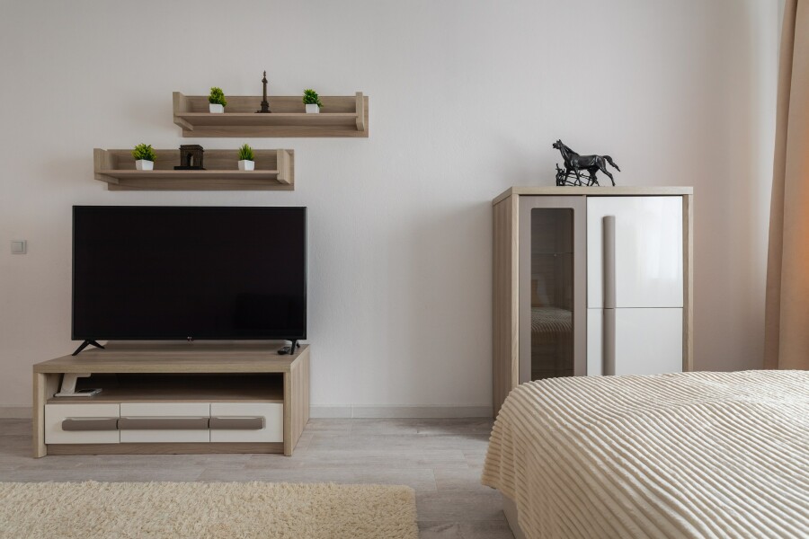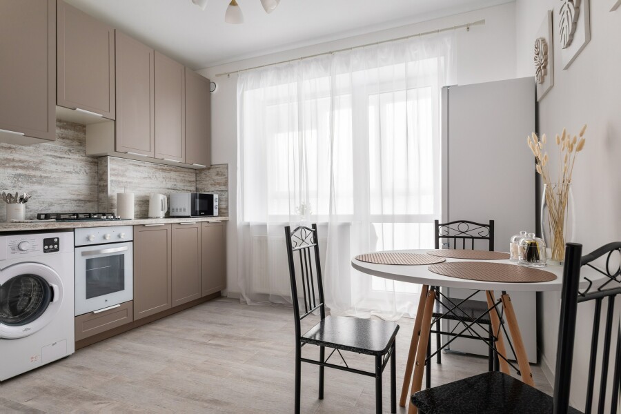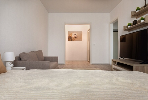 Единый стандарт качества: белоснежное постельное белье из прачечной. Влажная уборка после каждого выезда. Наличие необходимых в быту вещей: личные средства гигиены, посуда, техника.Современные апартаменты сочетает в себе стиль и функциональность, создавая атмосферу, где каждый гость сможет расслабиться и насладиться временем вдали от дома.