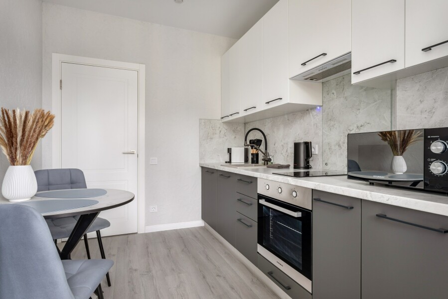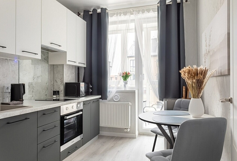 Апартаменты расположились в многоэтажном жилом доме.В распоряжении гостей двухкомнатный 2-местные апартаменты с уютным балконом. Среди удобств – кухня с электроплитой, электрочайником, духовым шкафом, микроволновой печью и холодильником, стиральная и стиральная машина, телевизор-ЖК и высокоскоростной интернет, санузел с ванной.Автомобиль можно оставить на неохраняемой открытой парковке.