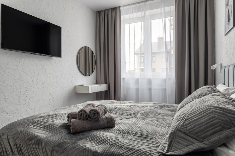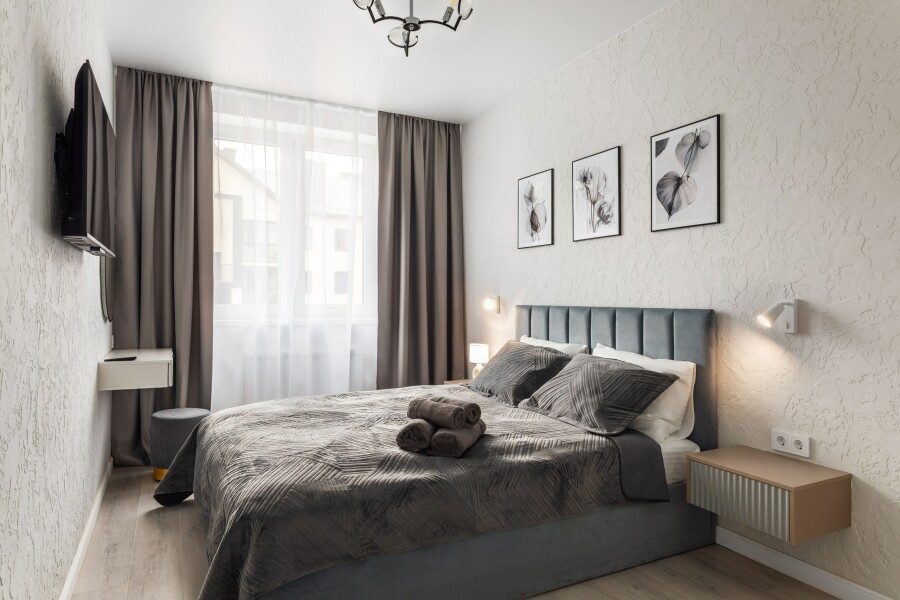 Единый стандарт качества: белоснежное постельное белье из прачечной. Влажная уборка после каждого выезда. Наличие необходимых в быту вещей: личные средства гигиены, посуда, техника.Современные апартаменты сочетает в себе стиль и функциональность, создавая атмосферу, где каждый гость сможет расслабиться и насладиться временем вдали от дома.