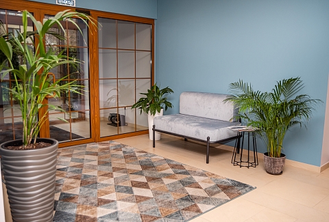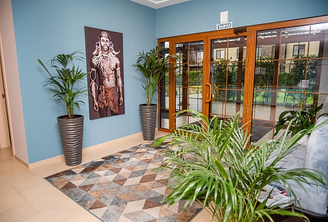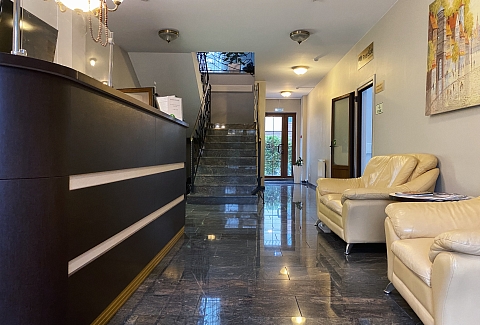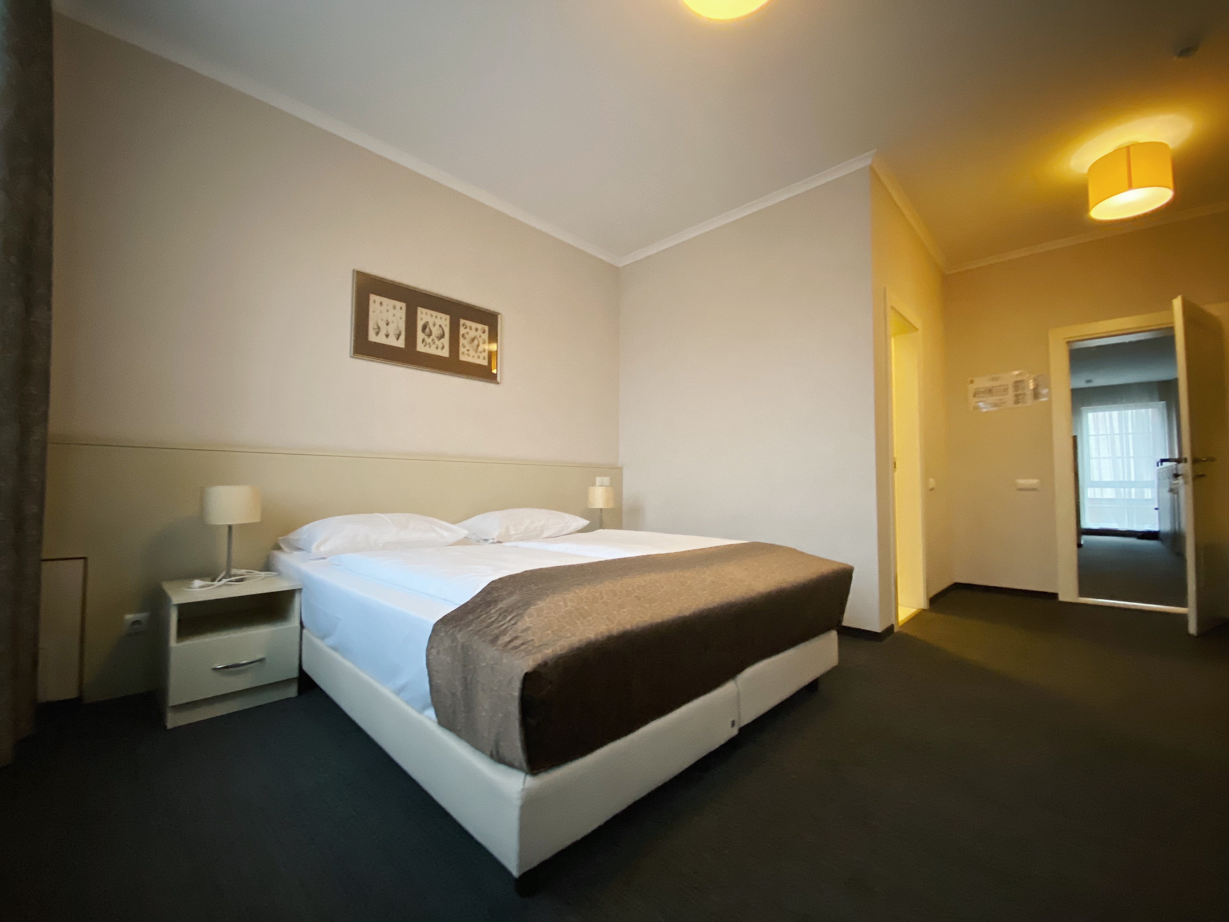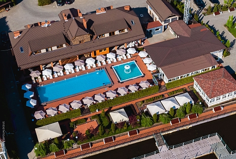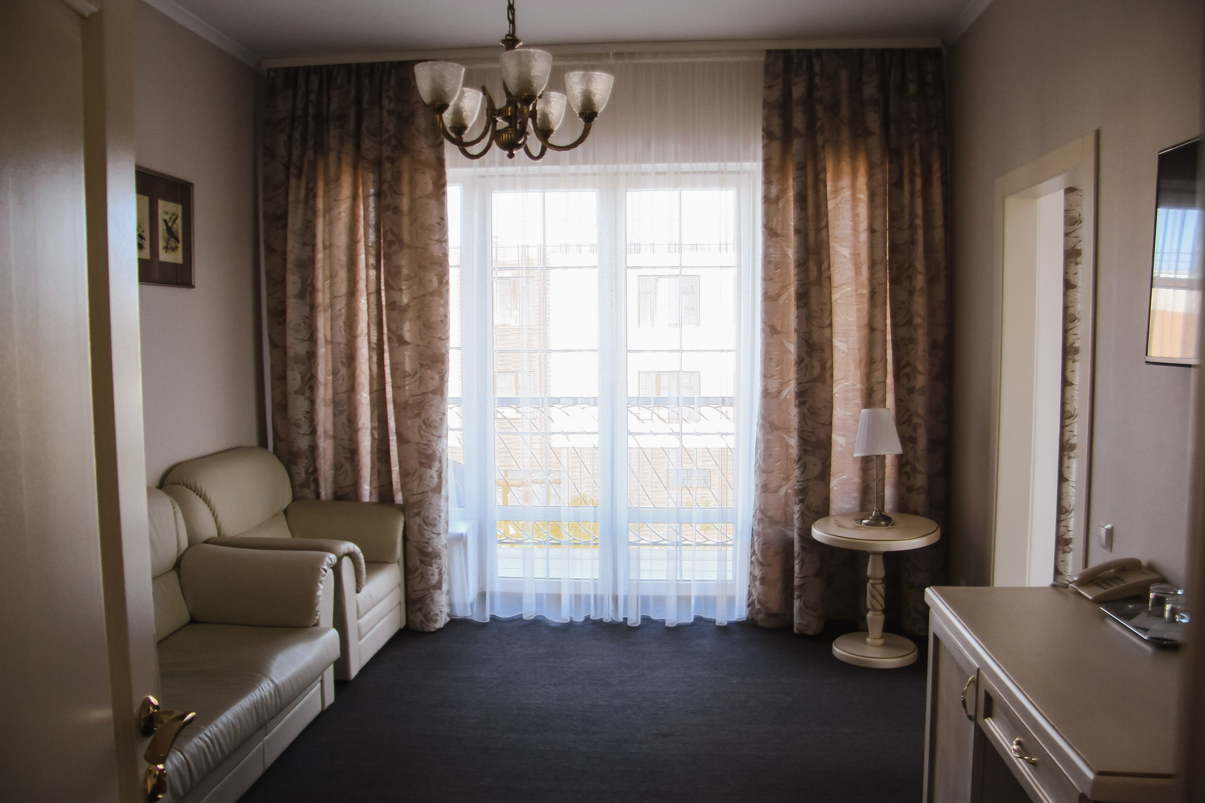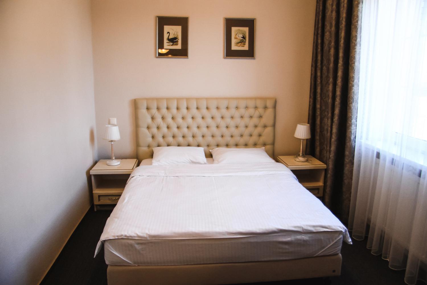 Современный трехэтажный корпус отеля с благоустроенным внутренним двором предлагает отдыхающим просторные светлые номера разных категорий комфорта. В каждом номере есть большая двуспальная кровать, ЖК-телевизор, холодильник, фен, санузел с душевой кабиной или ванной. В распоряжении гостей банный комплекс с баней, сауной и хаммамом и открытый бассейн с зоной отдыха по периметру. Возле корпуса организована охраняемая автостоянка, на территории работает беспроводной интернет, гостям доступна аренда автомобиля.