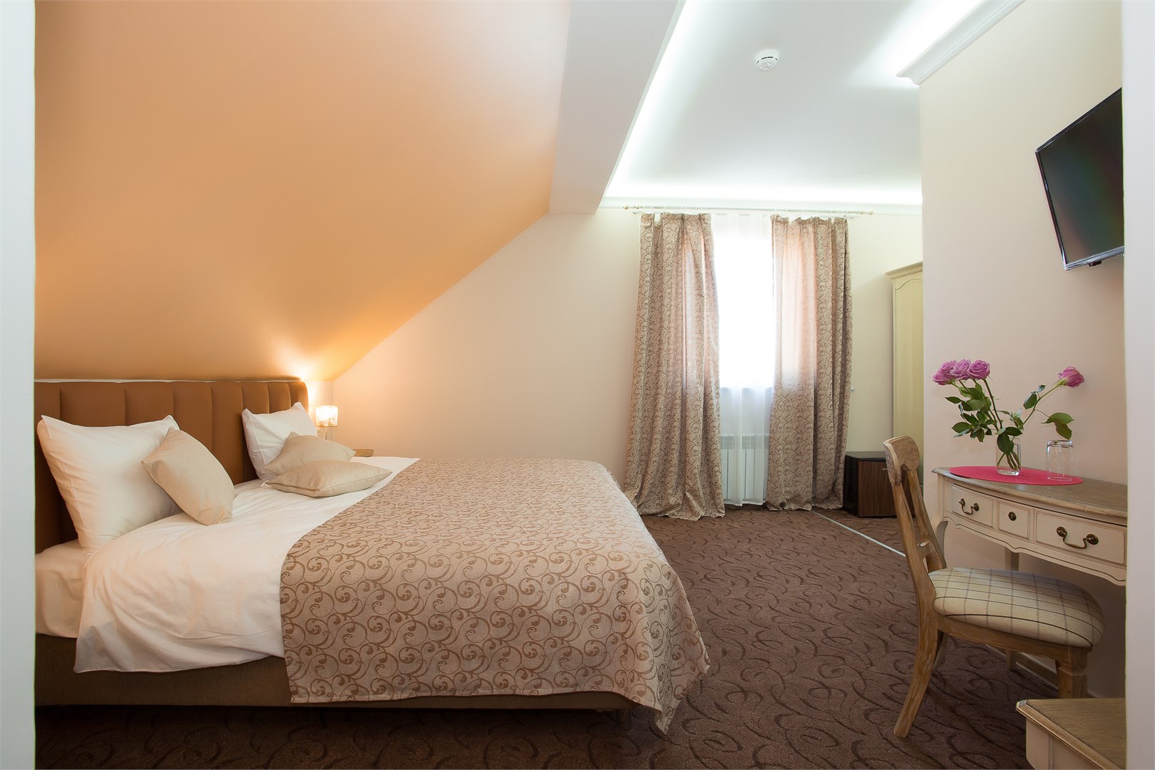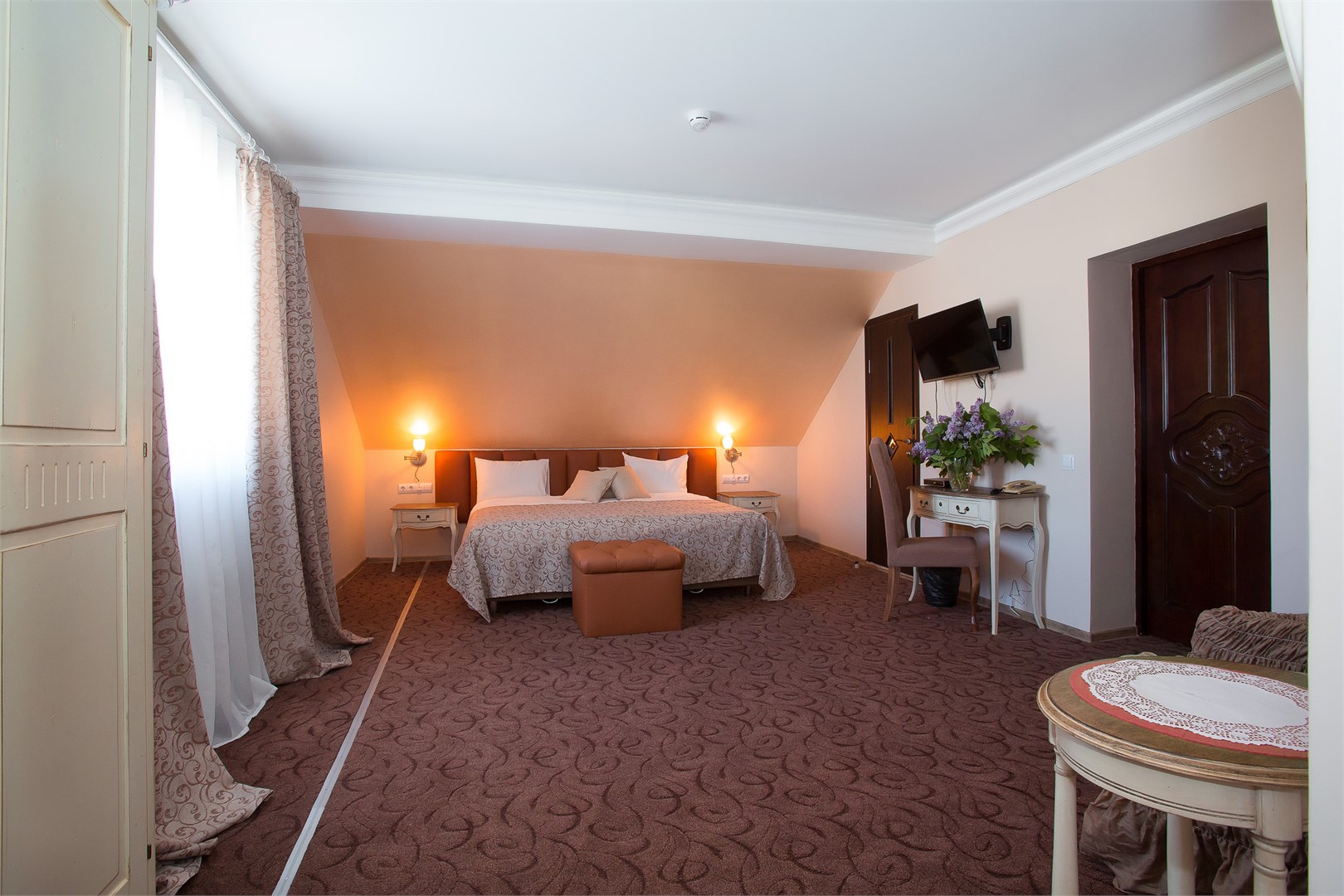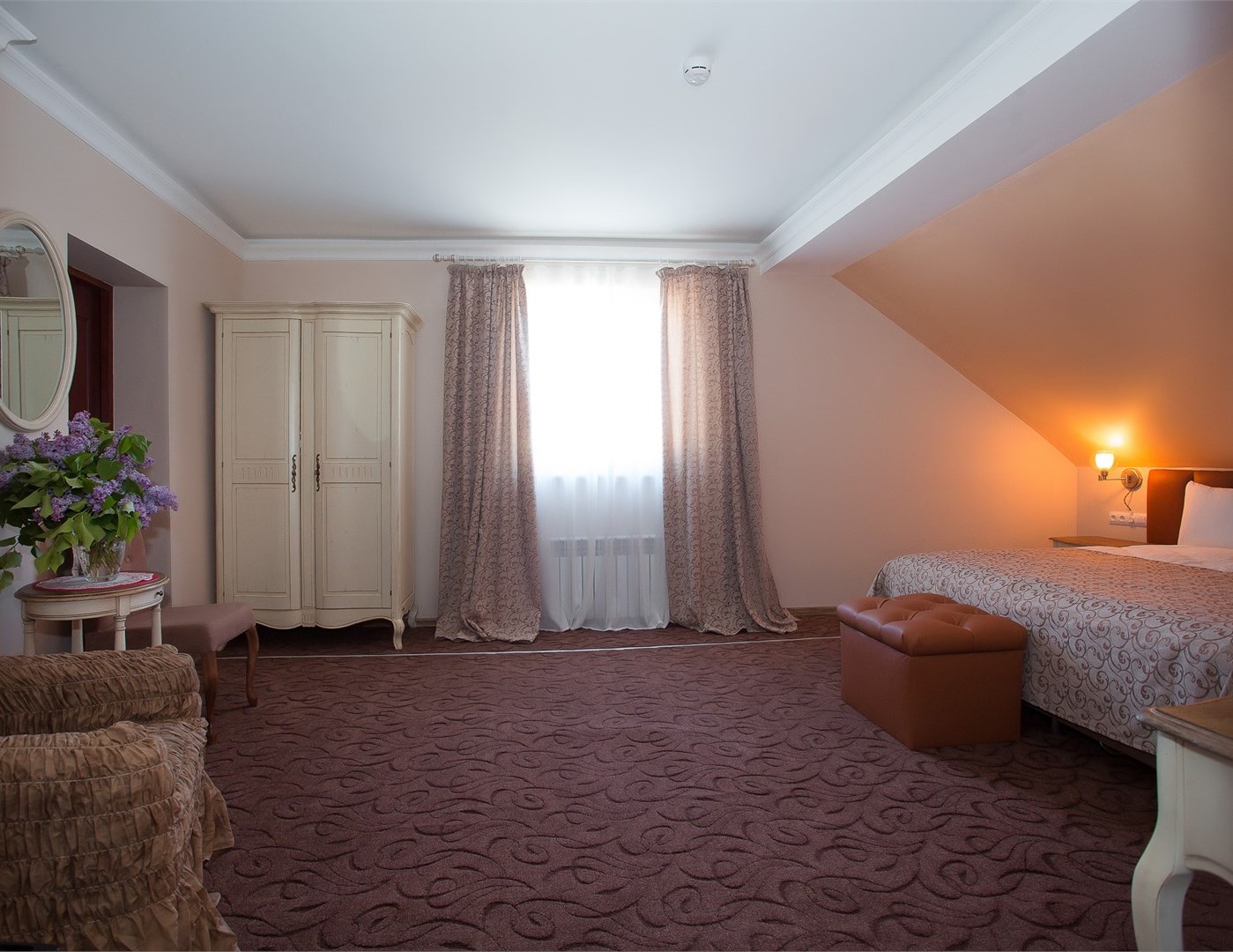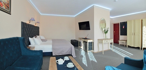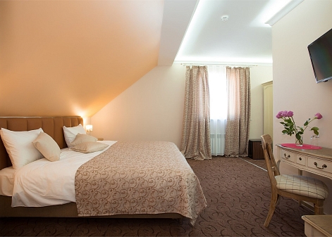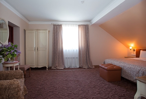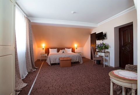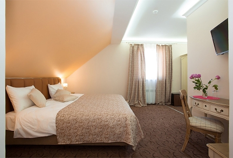 Интерьеры, выдержанные в классической манере, отделаны натуральными материалами, создавая ощущение экологичной чистоты и умиротворения.Широкие кровати с ортопедическими матрасами дарят по-настоящему восстанавливающий сон после долгого пути или насыщенного дня. Каждый номер обустроен для полного удобства гостя: здесь к его услугам мини-бар и холодильник для прохладительных напитков, сейф для ценных вещей, телевизор для отдыха, а также бесплатный Wi-Fi, позволяющий оставаться на связи. Всё продумано так, чтобы путешественник мог почувствовать себя как в уютном, надежном убежище, где есть всё необходимое для комфортного проживания. «Серый гусь» становится не просто местом для ночлега, а тихой гаванью с характером, где гостю всегда рады.
