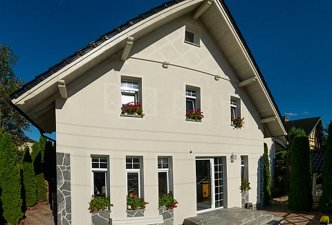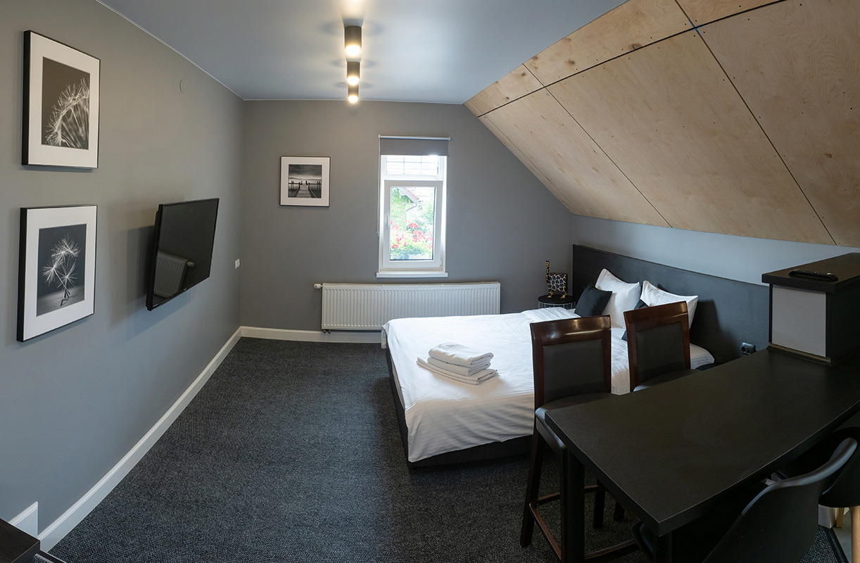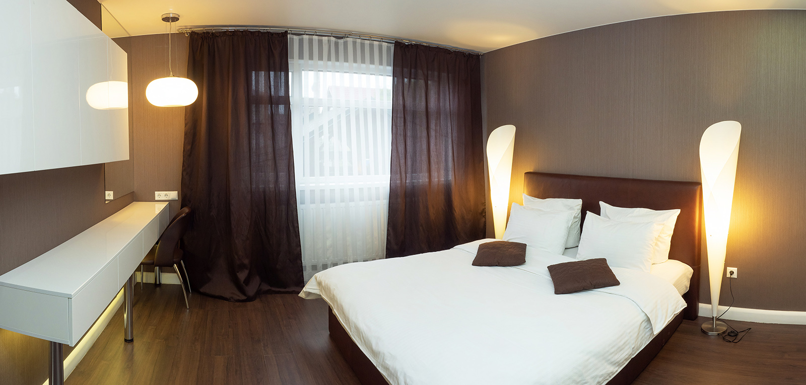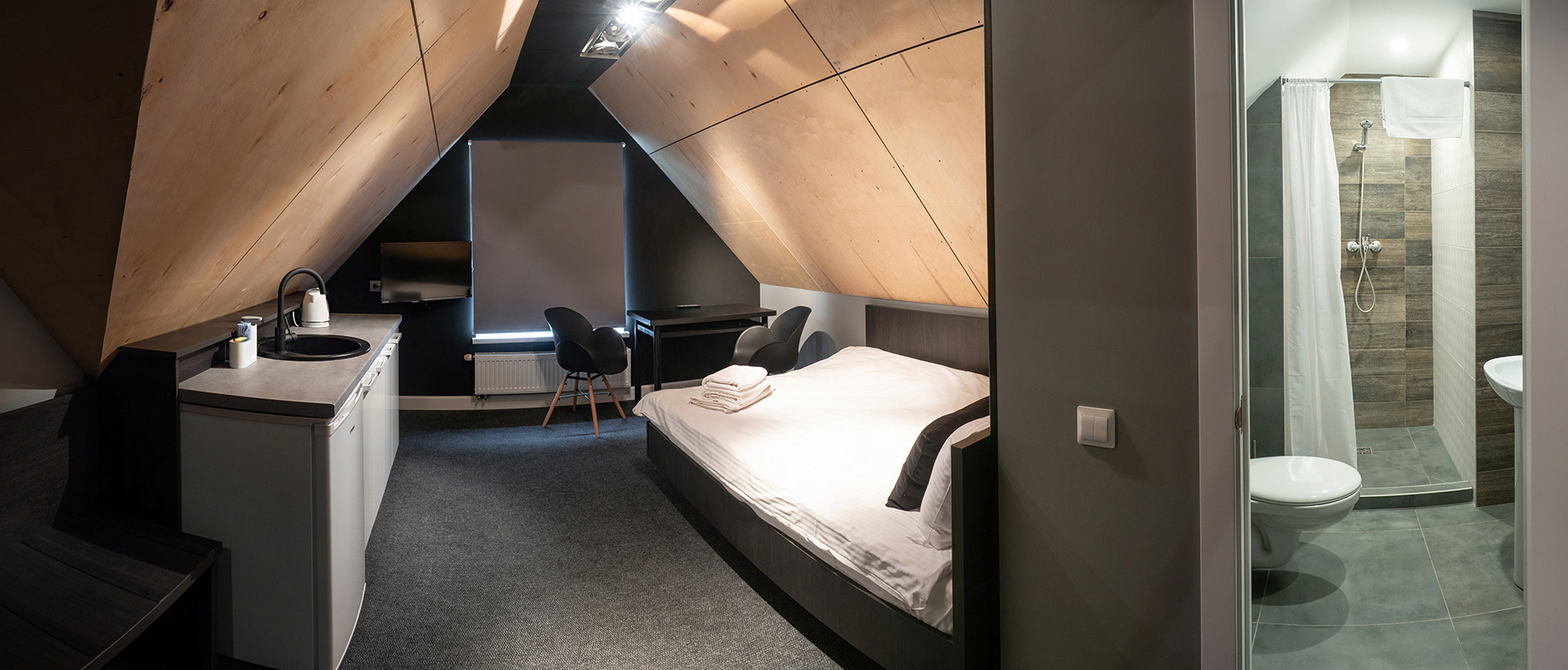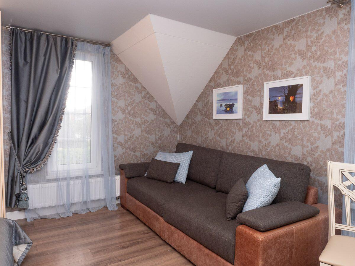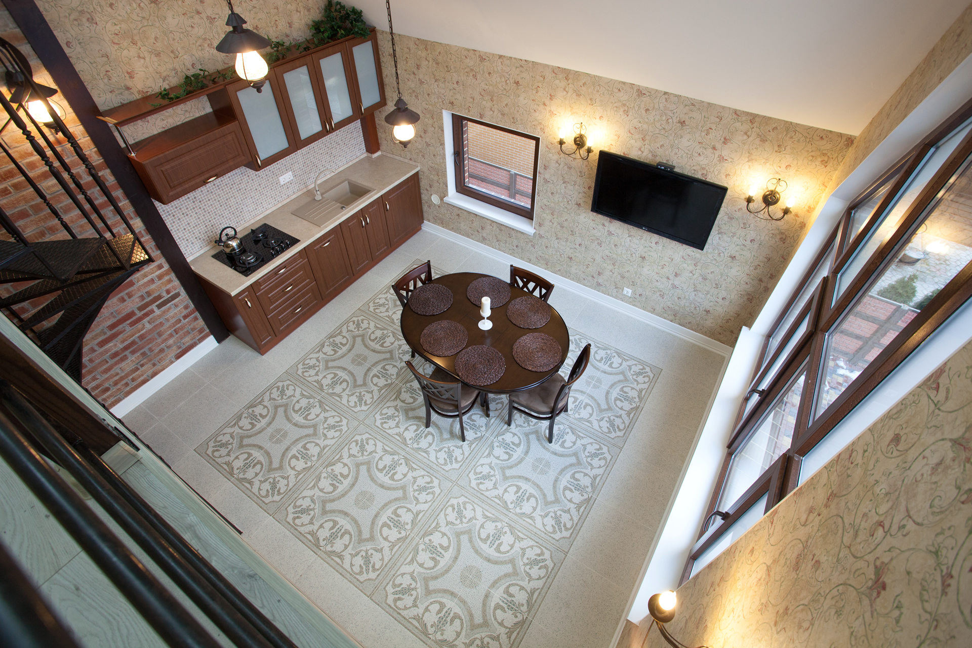 Во всех номерах стильный современный интерьер, выдержанный в интересной цветовой гамме с использованием как традиционных пастельных тонов, так и современных стальных и глубоких синих оттенков, в некоторых комнатах прослеживаются элементы популярного стиля лофт. Все номера оснащены кухней, оборудованной посудой и техникой, в ванных комнатах установлена душевая кабина, а для гостей подготовлены косметические наборы.Для отдыхающих во внутреннем дворике организована зона барбекю с мангалами, также в распоряжении гостей банный комплекс с парилкой, сауной и бассейном, где можно отдохнуть или расслабиться после активного дня.