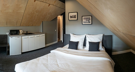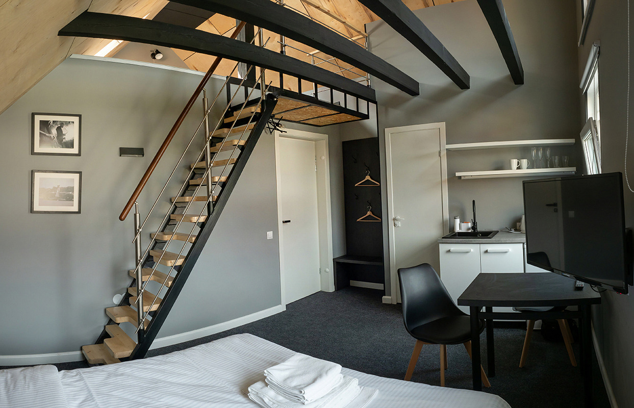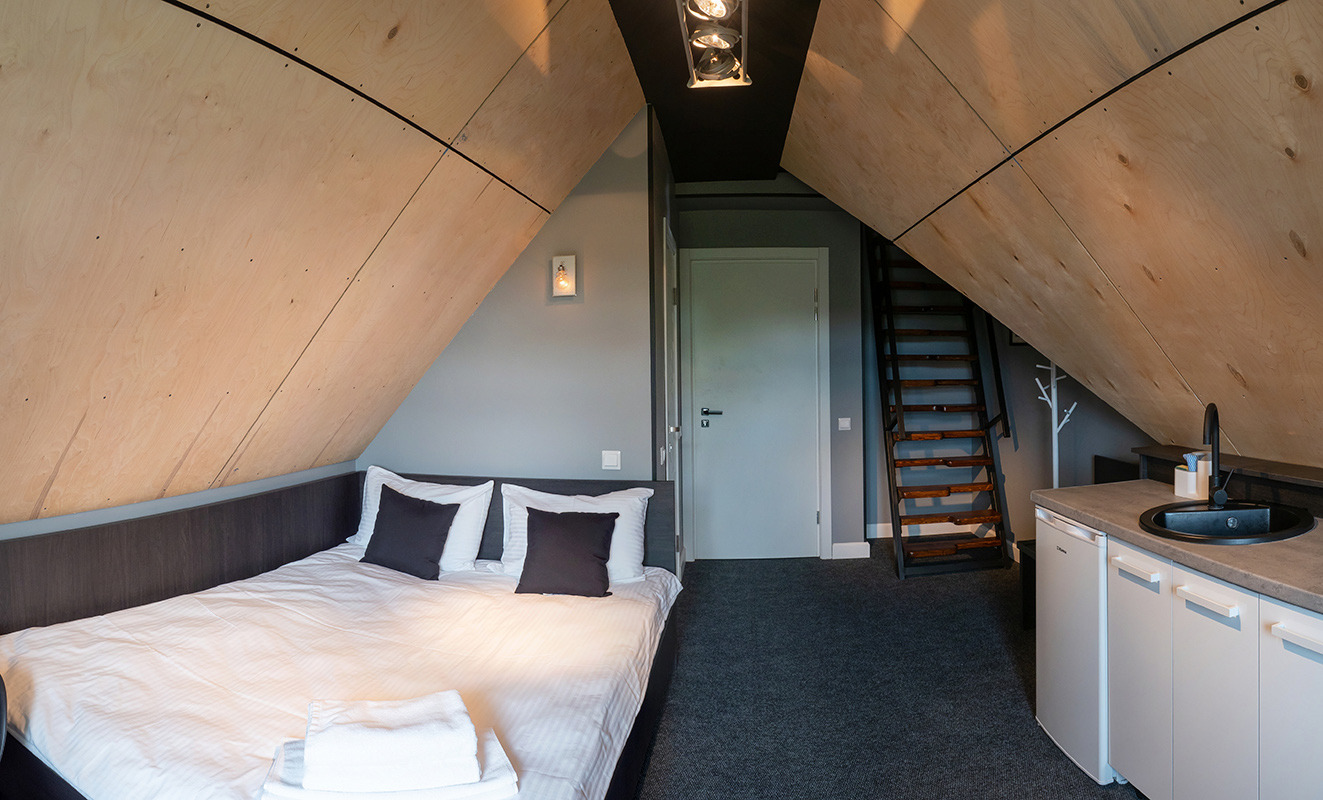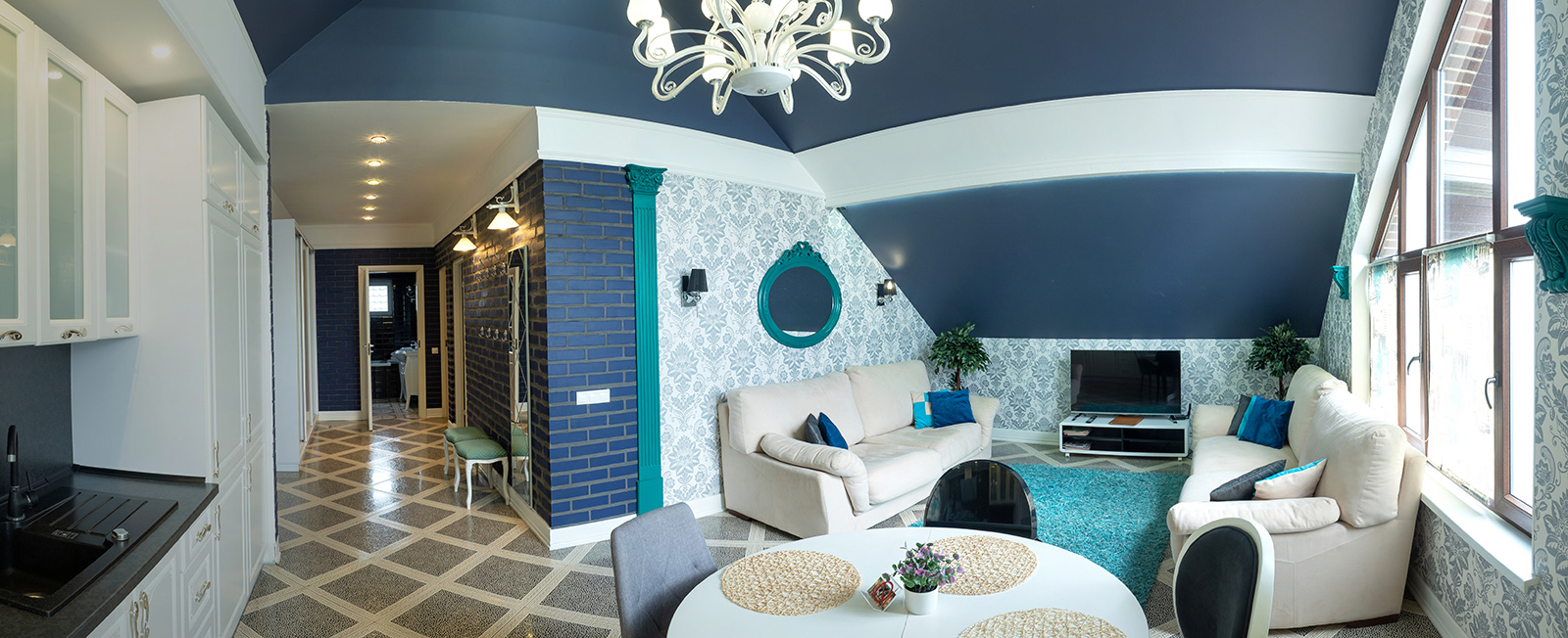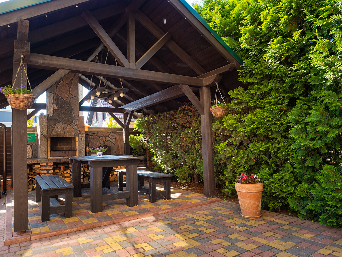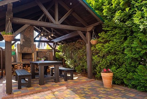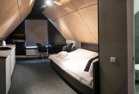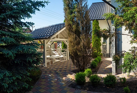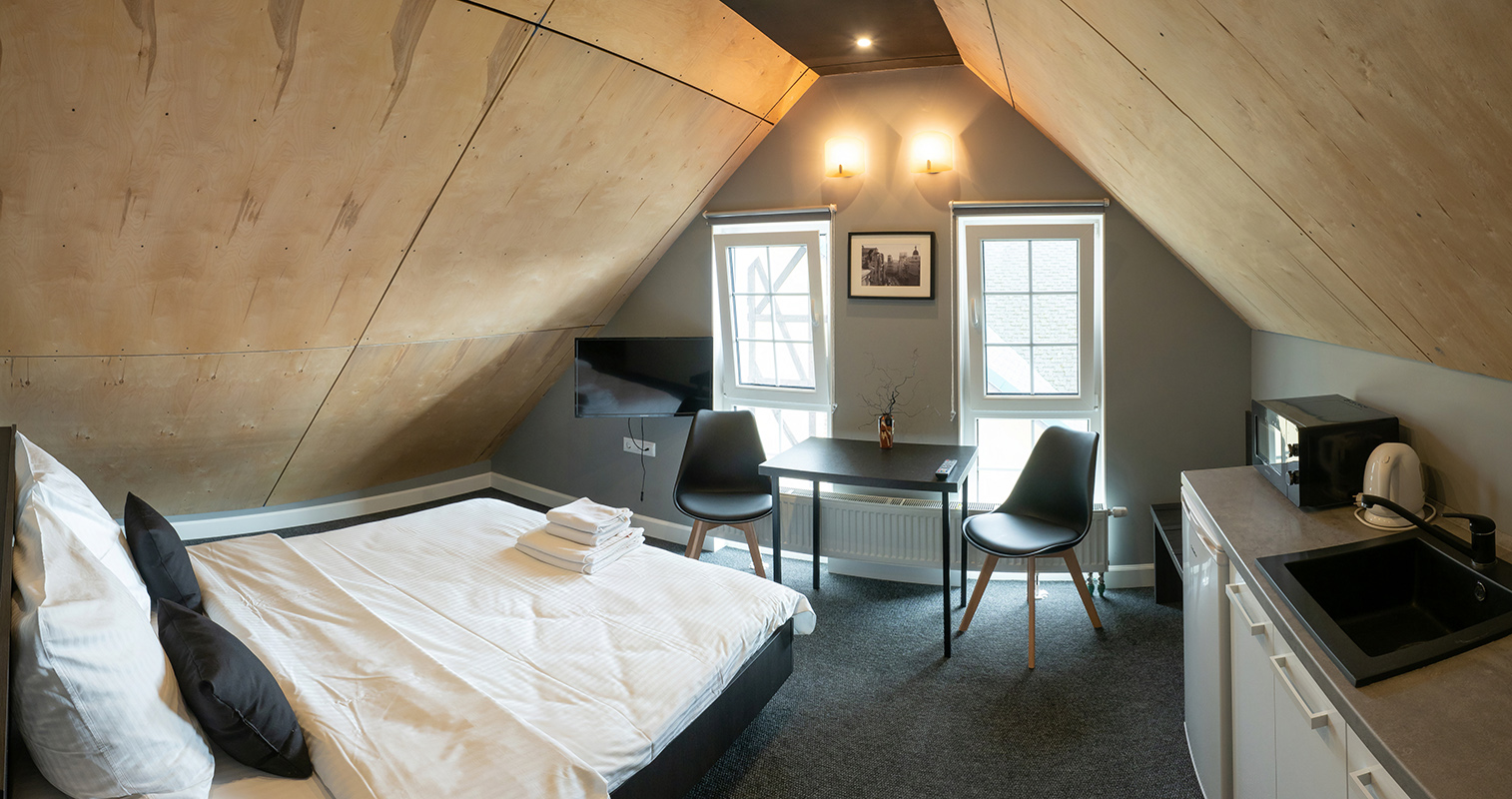 Во всех номерах стильный современный интерьер, выдержанный в интересной цветовой гамме с использованием как традиционных пастельных тонов, так и современных стальных и глубоких синих оттенков, в некоторых комнатах прослеживаются элементы популярного стиля лофт. Все номера оснащены кухней, оборудованной посудой и техникой, в ванных комнатах установлена душевая кабина, а для гостей подготовлены косметические наборы.Для отдыхающих во внутреннем дворике организована зона барбекю с мангалами, также в распоряжении гостей банный комплекс с парилкой, сауной и бассейном, где можно отдохнуть или расслабиться после активного дня.