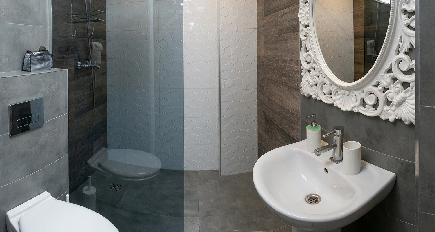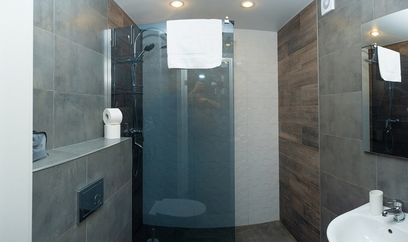 Санузел: с душевой кабиной, туалетные принадлежности, фен