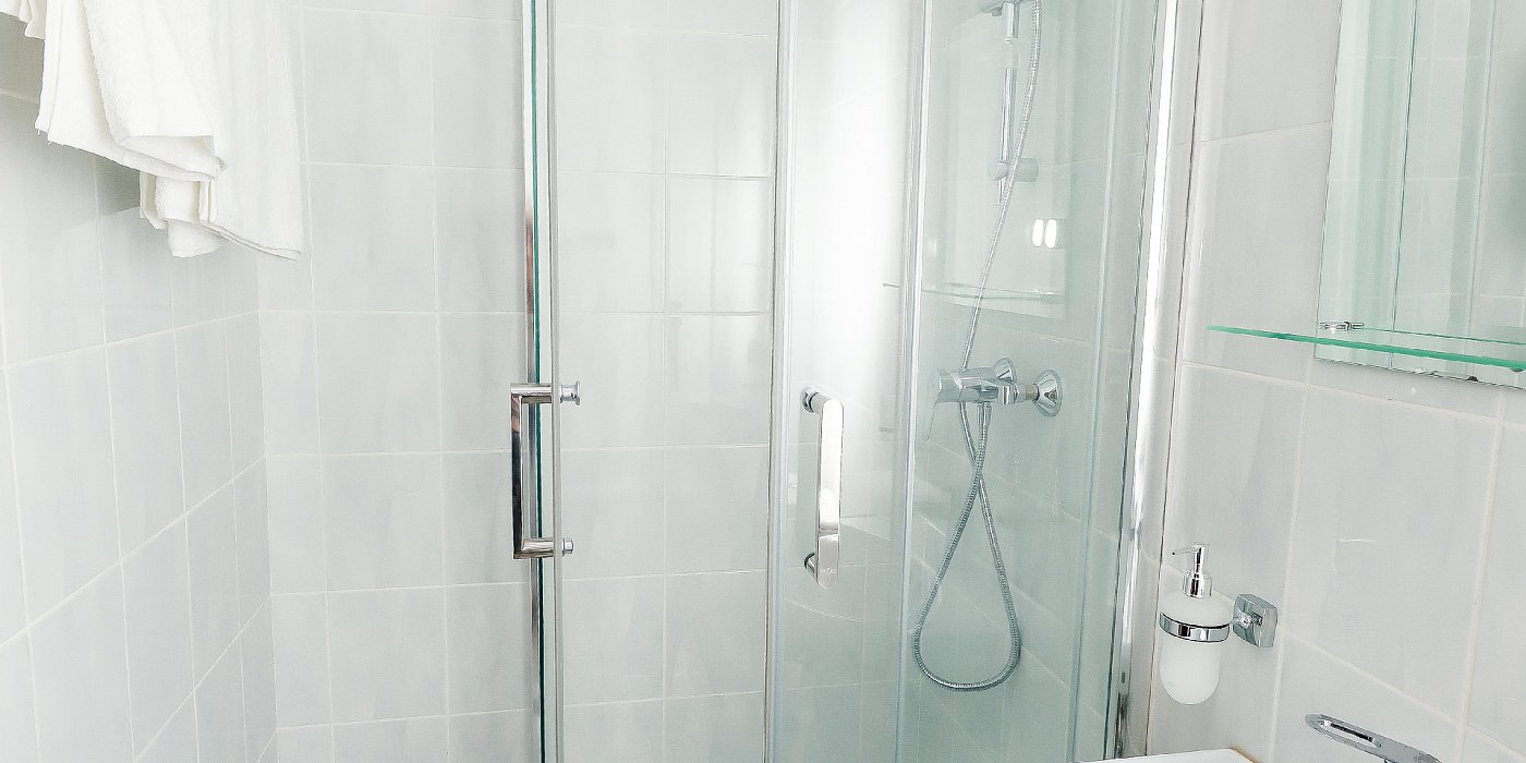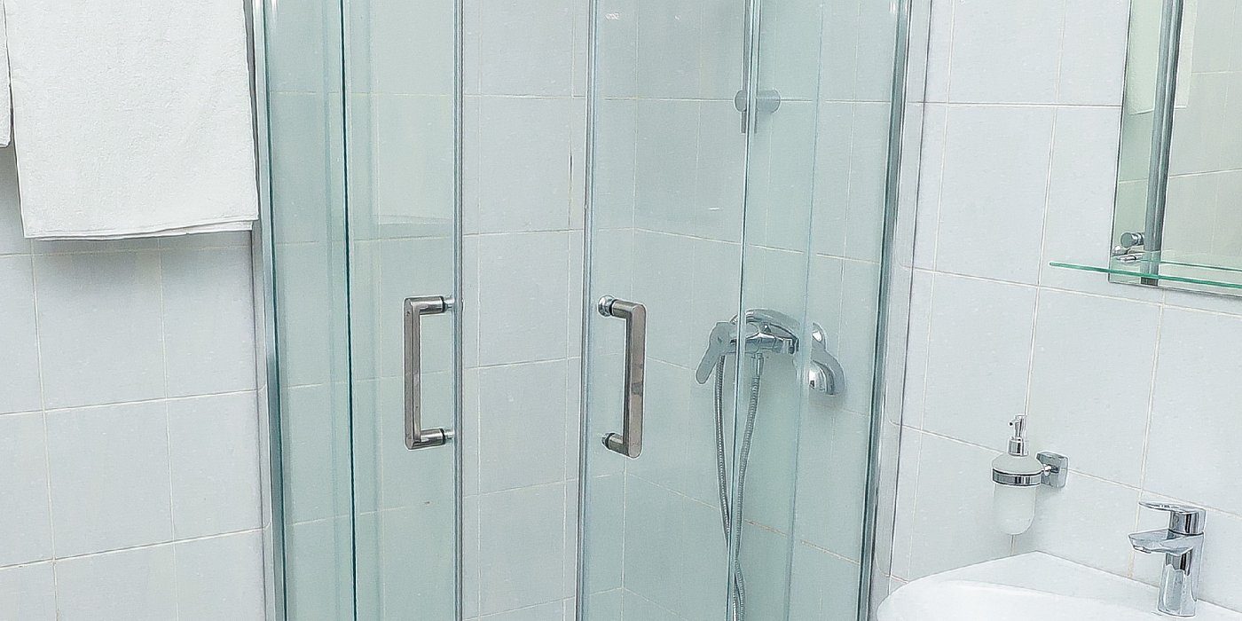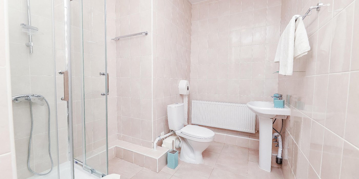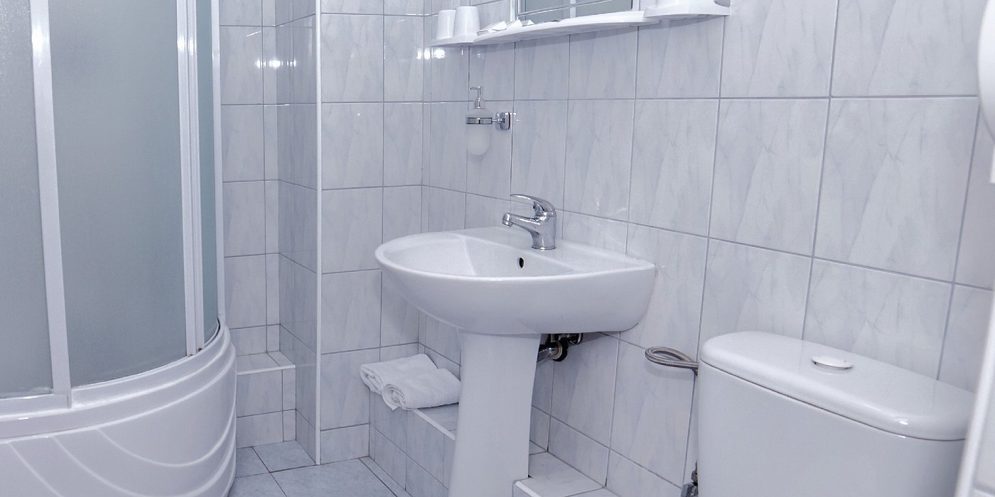 Санузел: с душем, туалетные принадлежности, фен