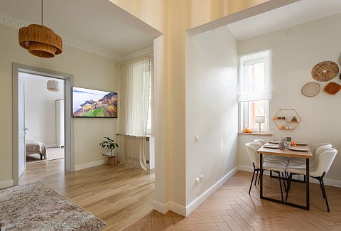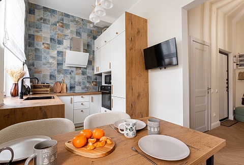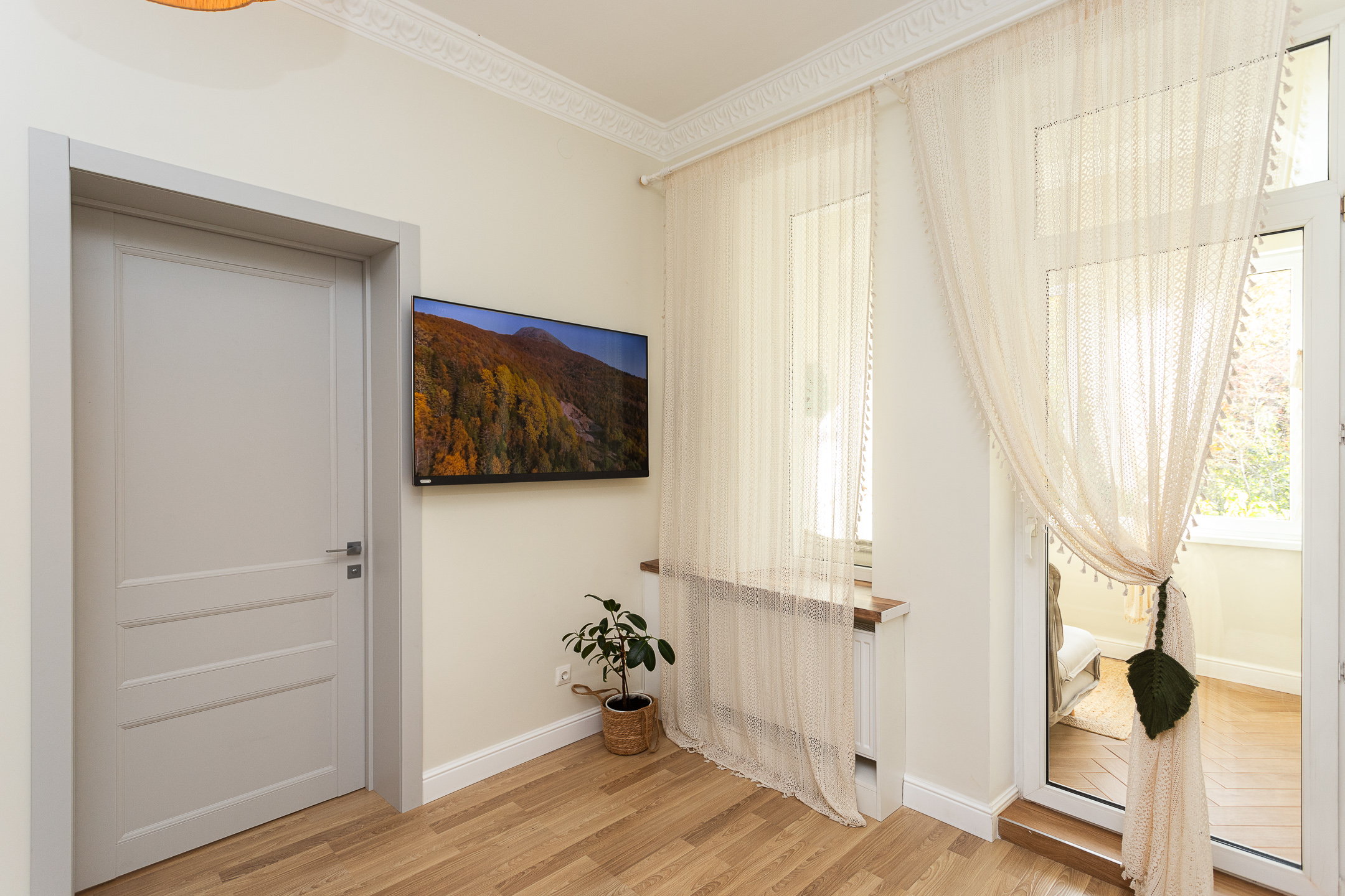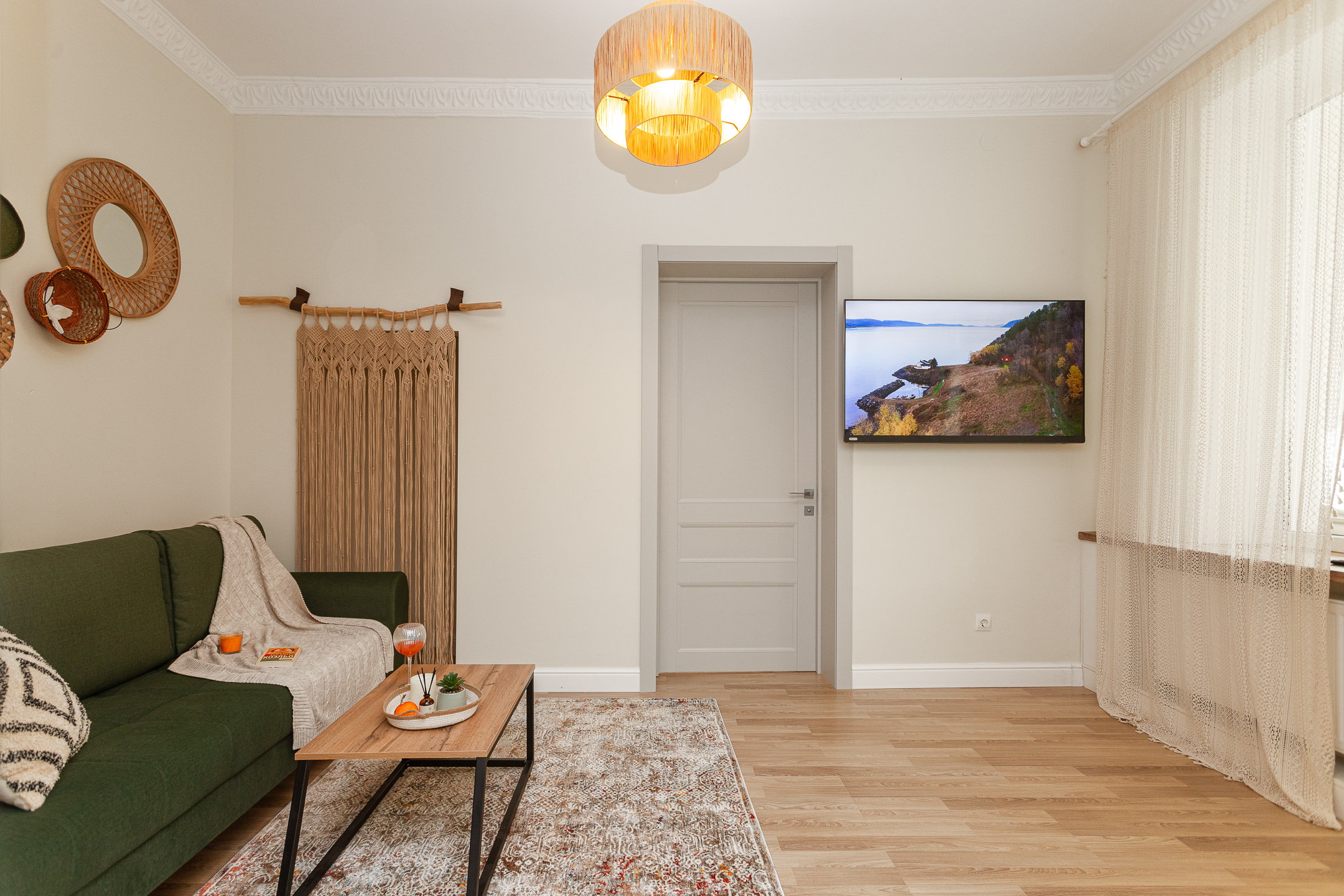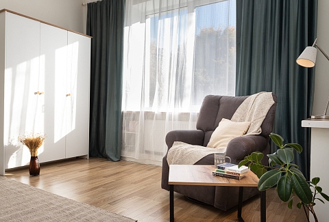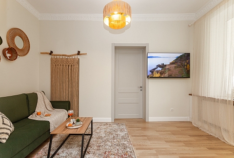 Железнодорожный вокзал «Северный», откуда на электричке можно отправиться на берег Балтийского моря, – в 15 минутах ходьбы, а до аэропорта Храброво можно доехать за полчаса.Апартаменты расположились в четырехэтажном здании на улице Чайковского. В распоряжении гостей двухкомнатный 2-местный номер с современным интерьером. Среди удобств – кухня с электроплитой, духовым шкафом, электрочайником, микроволновой печью и холодильником, стиральной машиной, кондиционер, телевизор-ЖК и высокоскоростной интернет, санузел с душевой кабиной. Рядом с домом есть открытая охраняемая парковка, где гости могут оставить свой автомобиль.