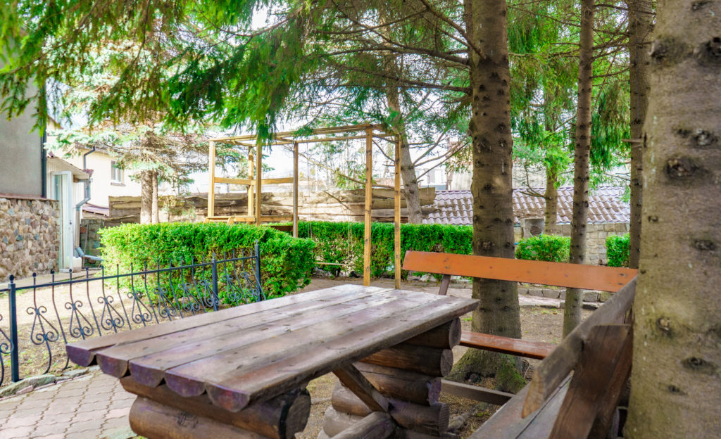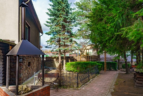 Расположение этого гостевого дома позволяет совместить уединение на природе с удобной городской инфраструктурой. Комплекс находится в зеленой зоне прямо в черте города, что делает его легкодоступным как для гостей Калининграда, так и для местных жителей. Вокруг — высокие ели и ухоженный сад, создающие атмосферу загородного отдыха.