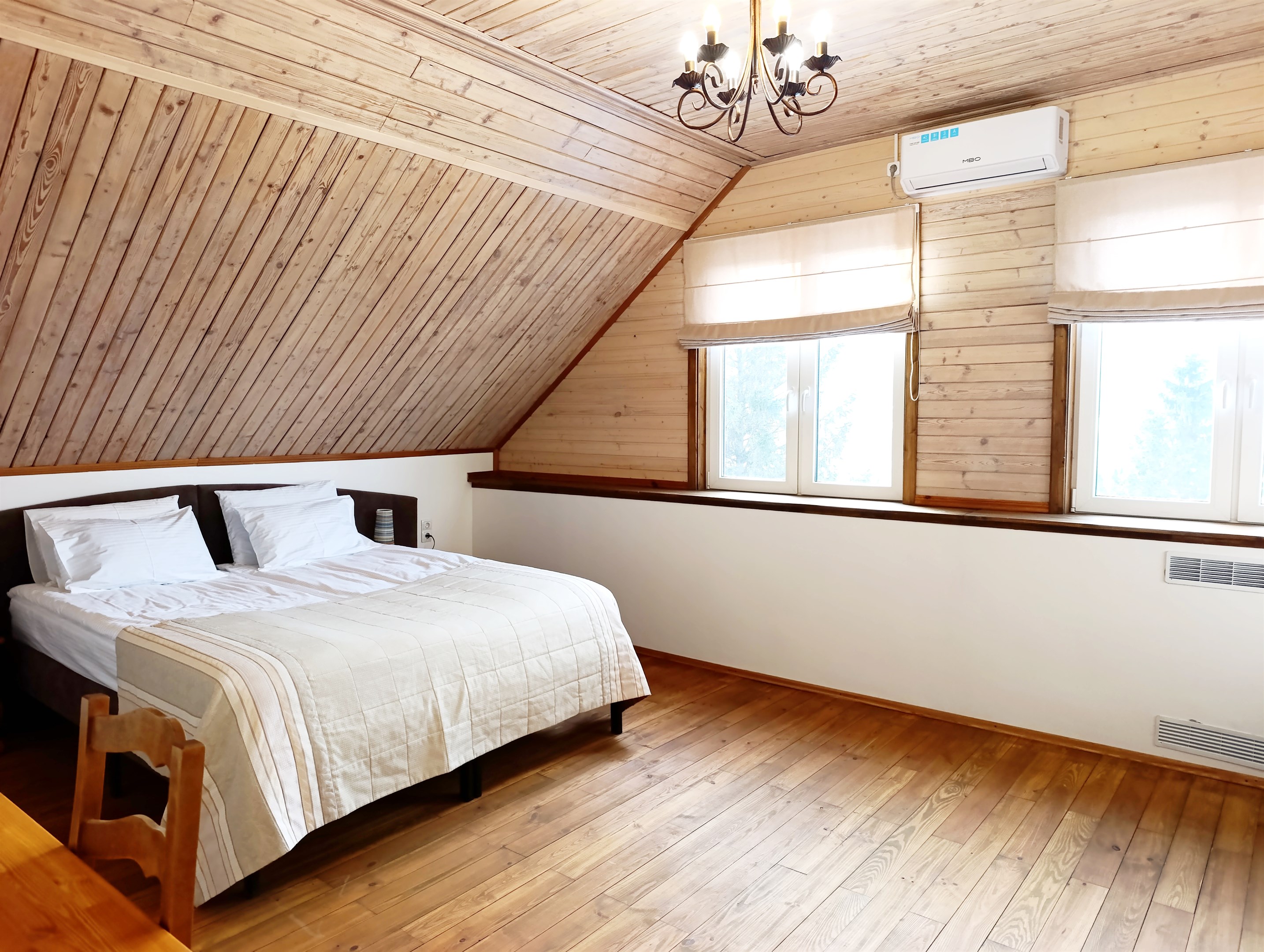 В пешей доступности от комплекса есть остановки общественного транспорта, магазины и аптеки, а на территории предусмотрена собственная парковка для автомобилей.Гостевой дом предлагает всего семь номеров, что гарантирует спокойную обстановку и отсутствие лишней суеты. В распоряжении гостей — просторные номера различных категорий: от уютных «Эконом» для одного или двух гостей до просторных «Мансардных улучшенных» с отдельной ванной комнатой. Каждый номер оснащен удобными спальными местами, мягкой мебелью, холодильником, чайником, необходимой посудой и телевизором со Smart TV. Во всех комнатах есть собственный санузел с феном, а также предоставляется полотняный набор. На всей территории действует бесплатный высокоскоростной Wi-Fi. Для тех, кто планирует длительное пребывание или ценит независимость, в номерах предусмотрена возможность приготовить горячие напитки.Инфраструктура комплекса ориентирована на восстановление сил и активный отдых. Гостям доступна русская баня на дровах с купелью холодной воды для контрастных процедур, а также уникальная японская баня офуро (горячий чан), расположенная под открытым небом в окружении зелени. Для завершения отдыха обустроена банкетная зона и зона барбекю, где можно организовать трапезу на свежем воздухе. При кафе гостевого дома подают завтраки, а также предлагают обеды и ужины по меню. В мини-баре и зоне ресепшн можно приобрести прохладительные напитки, банные принадлежности и веники.Это место идеально подойдет для пар, ценящих романтику и спокойствие, а также для небольших компаний и семей, которые хотят провести время в камерной, почти домашней атмосфере. Здесь нет городского шума, зато есть уютный сад, возможность попариться в настоящей бане и расслабляющая обстановка, располагающая к неспешному отдыху вдали от суеты.