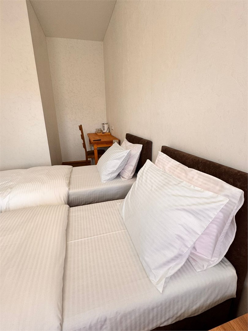 В номере: зеркало, кровати односпальные /одна двуспальная кровать, стол, стул, шкаф, чайный набор посуды, электрочайник