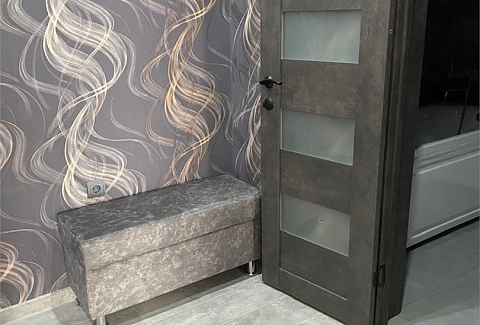 В номере: диван, зеркало, кровать двуспальная, стол, стулья, шкаф, микроволновая печь, набор посуды, плита электрическая, стиральная машина, сушилка для белья, телевизор ЖК, утюг, холодильник, чайный набор посуды, электрочайник