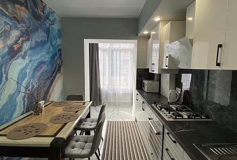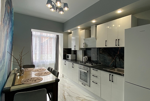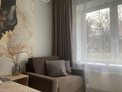 Апартаменты расположились в четырехэтажном современном доме на Парковой улице. В распоряжении гостей уютный однокомнатный 2-местный номер с современным интерьером. Апартаменты оснащены собственной ванной комнатой, кухней с электроплитой и всей необходимой техникой, среди удобств – кондиционер, телевизор-ЖК сеть wi-fi, стиральная машина.До оборудованного песчаного пляжа дойти пешком за 5 минут.