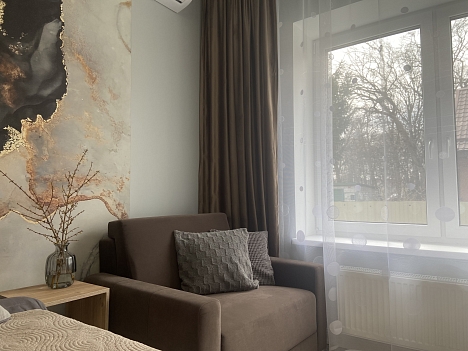 Апартаменты находятся в центре курортного города Пионерский, недалеко от набережной. В непосредственной близости – Музейная Аллея, сосновый бор и живописная велосипедная дорожка, Музей Рантава и Вилла Зее-адлер, кафе и рестораны, а также местный рынок и продуктовые магазины. Железнодорожная станция – в 5 минутах ходьбы, дорога до аэропорта Храброво займет около получаса, за 40 минут можно добраться до Калининграда.