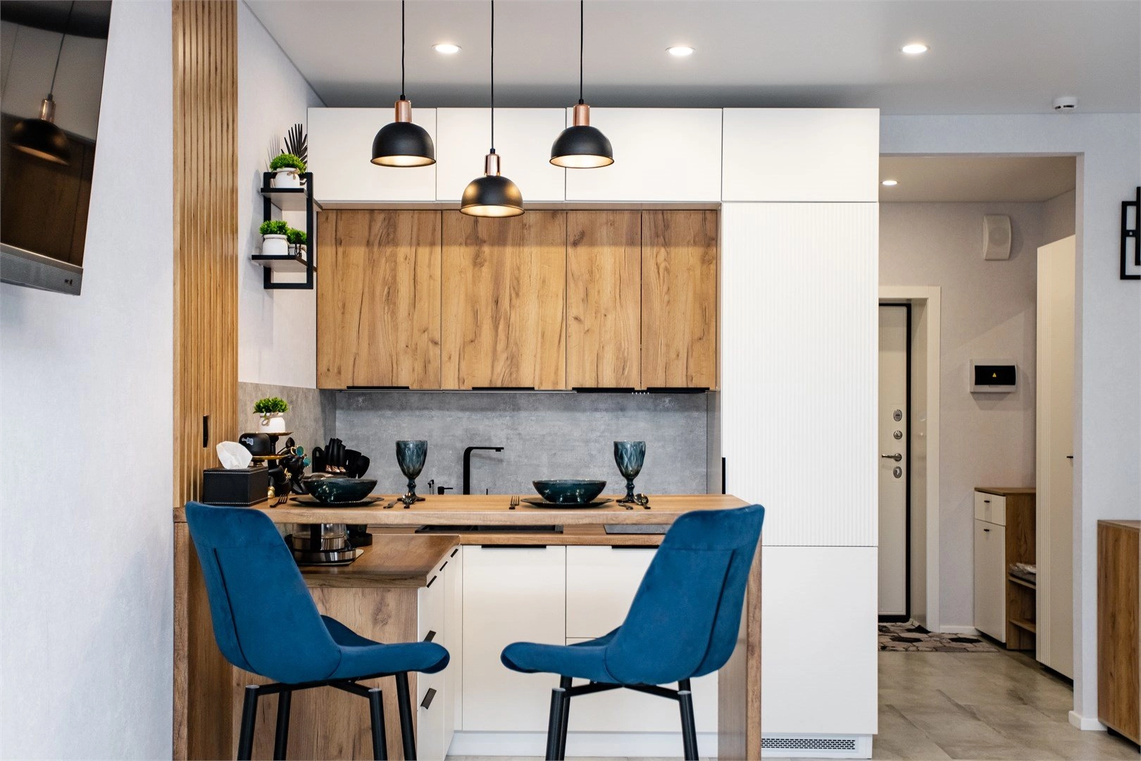 Полноценная кухонная зона: мини-холодильник, электрочайник, электроплита, кухонные принадлежности. Спальня с кроватью king-size и прикроватными столиками. Постельное белье и косметические принадлежности премиум-класса. Шторы Black-out для крепкого сна . Домофон и круглосуточная безопасность. Бесконтактное заселение и выезд. Собственный сейф с индивидуальным кодом. Парковочное место (по предварительному запросу) . Лучшая локация — исторический центр в окружении зелени.