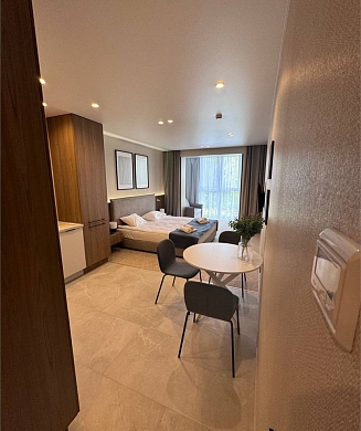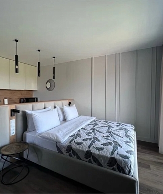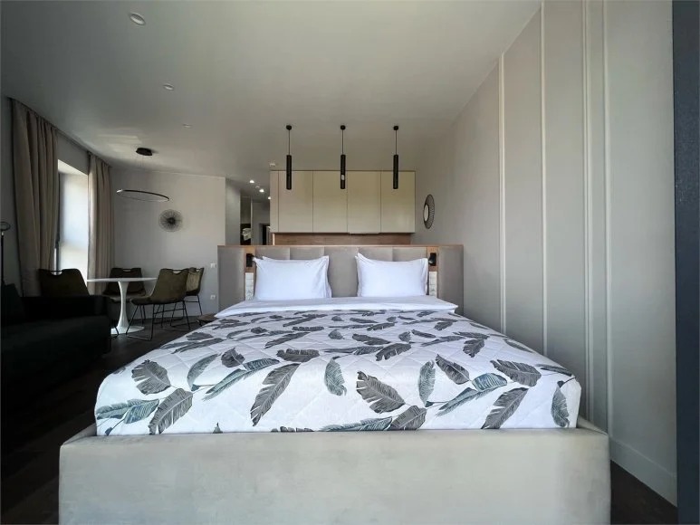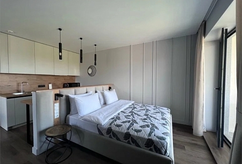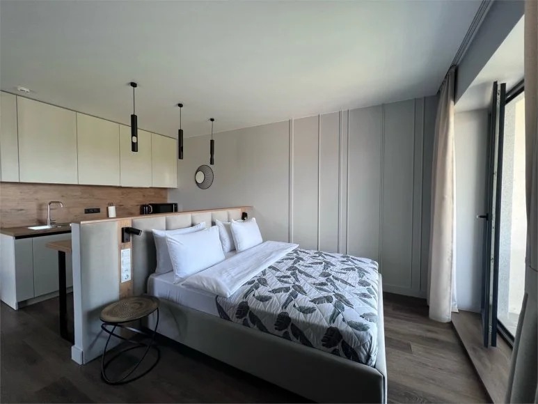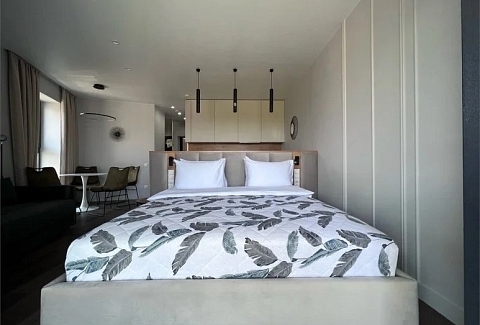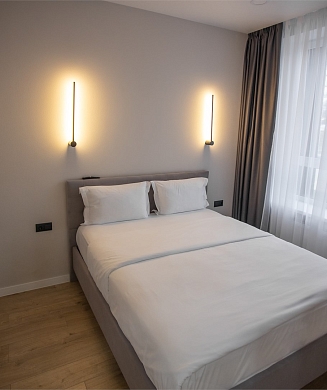 Полноценная кухонная зона: мини-холодильник, электрочайник, электроплита, кухонные принадлежности. Спальня с кроватью king-size и прикроватными столиками. Постельное белье и косметические принадлежности премиум-класса. Шторы Black-out для крепкого сна . Домофон и круглосуточная безопасность. Бесконтактное заселение и выезд. Собственный сейф с индивидуальным кодом. Парковочное место (по предварительному запросу) . Лучшая локация — исторический центр в окружении зелени.
