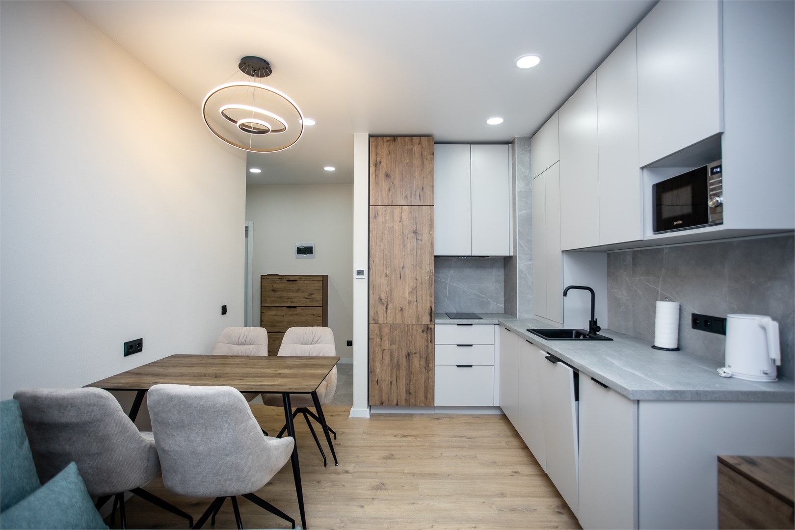 Современные апартаменты в тихом районе — уютный оазис в 20 минутах от моря. Преимущества локации, которые оценят вдумчивые гости: тихий жилой район — полноценный отдых без туристического шума и ночной суеты . Удобная транспортная развязка — быстрый доступ к морю и основным достопримечательностям.