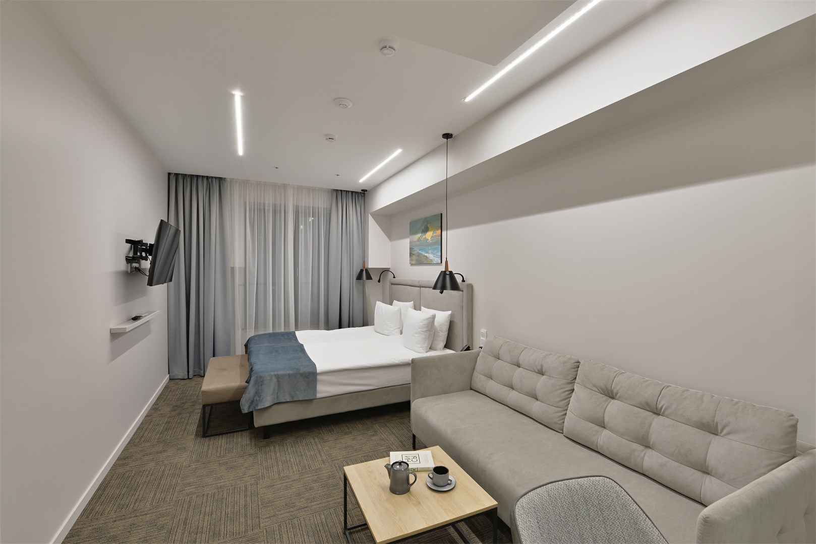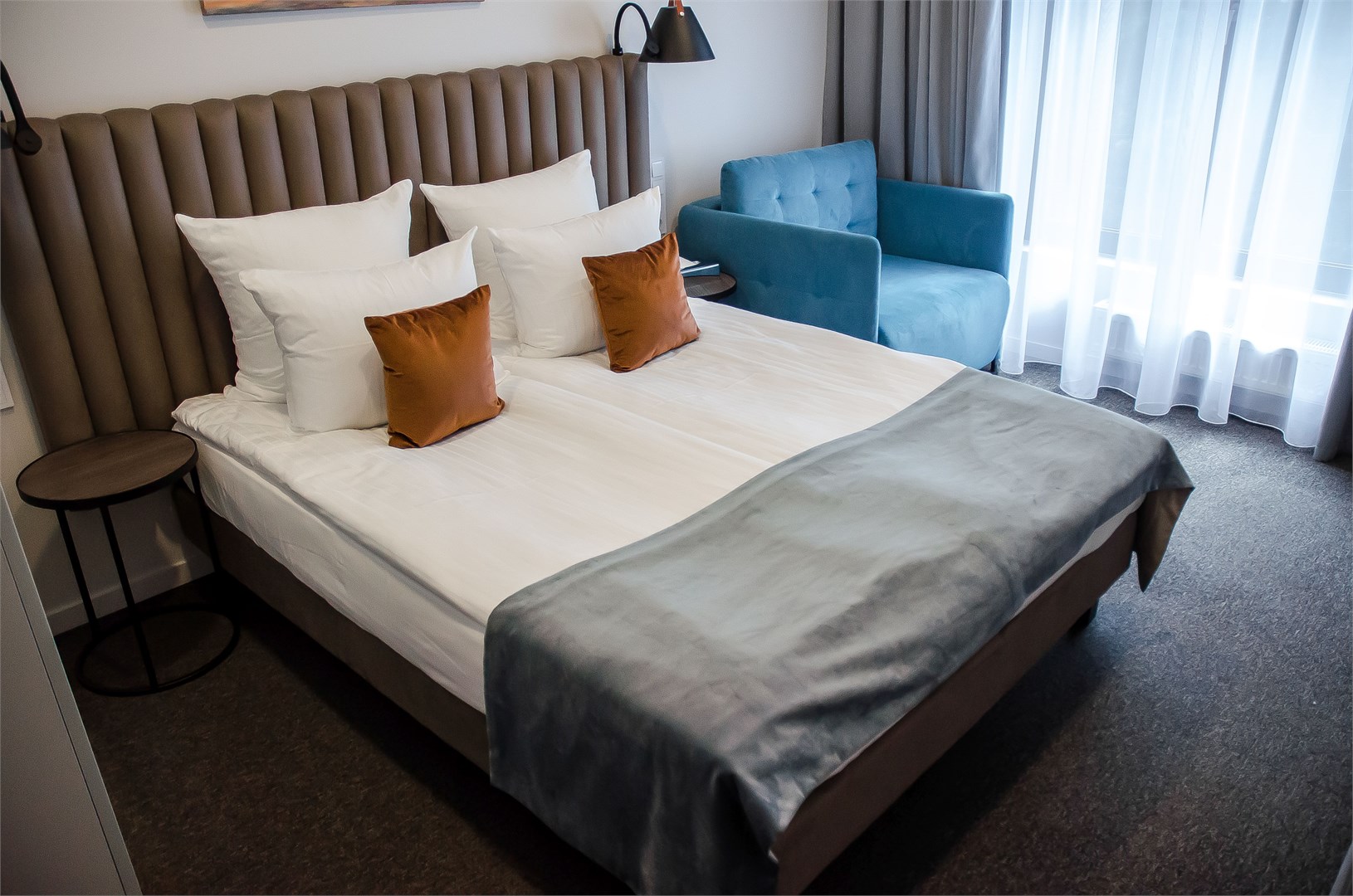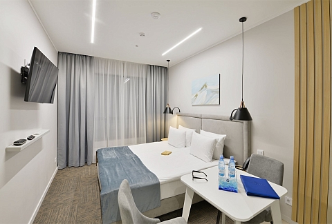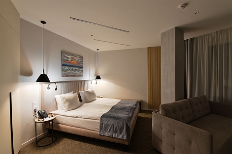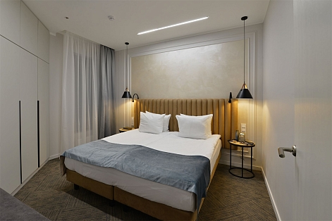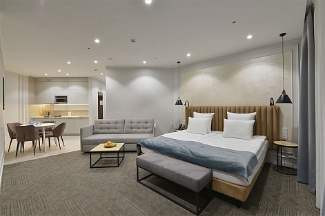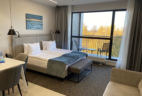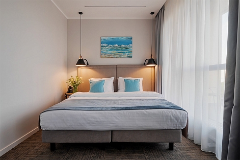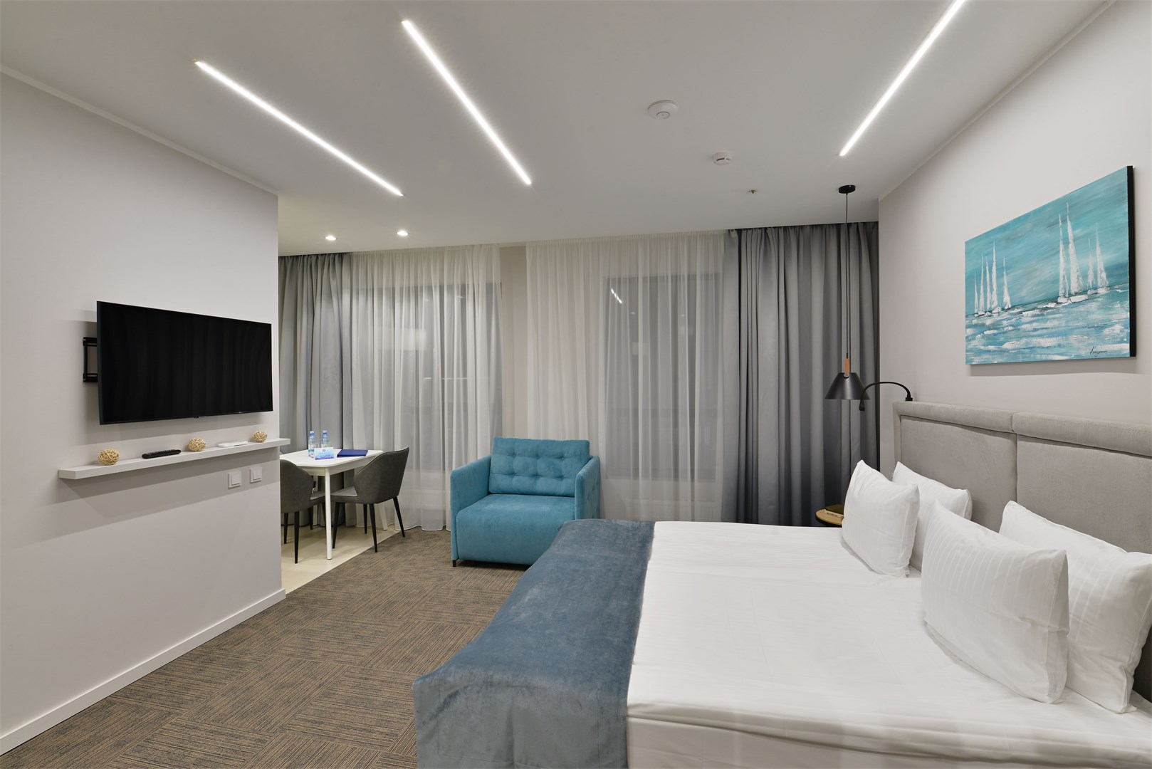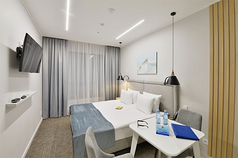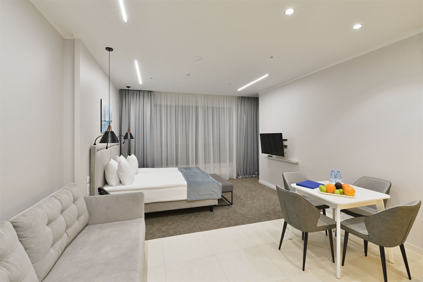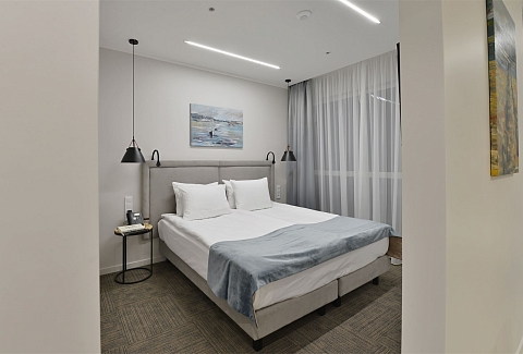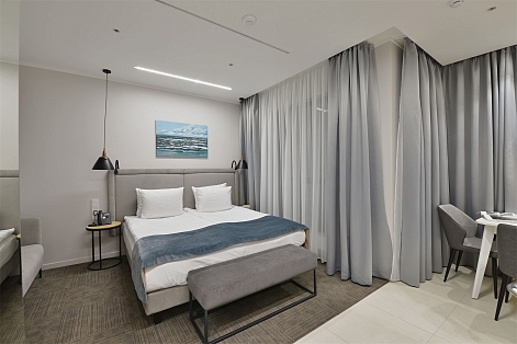 В распоряжении гостей стильные светлые номера Double и Twin разных категорий комфорта. В каждом номере предусмотрены гостиная, спальная и кухонные зоны, есть индивидуальная ванная комната, и вся необходимая техника кондиционер, плазменный телевизор, электрочайник, микроволновая печь, фен. В большинстве комнат предусмотрены балконы.В отеле работает ресторан авторской кухни «Gravlaks», есть лобби-бар. К услугам отдыхающих SPA центр с бассейном, финской сауной, хаммамом, для любителей активного отдыха оборудован тренажерный зал. Деловые мероприятия, встречи, переговоры можно провести в одном из современных конференц-залов, оснащенных мультимедийной техникой.Среди традиционных услуг — беспроводной интернет и парковка, доступная при наличии свободных мест.