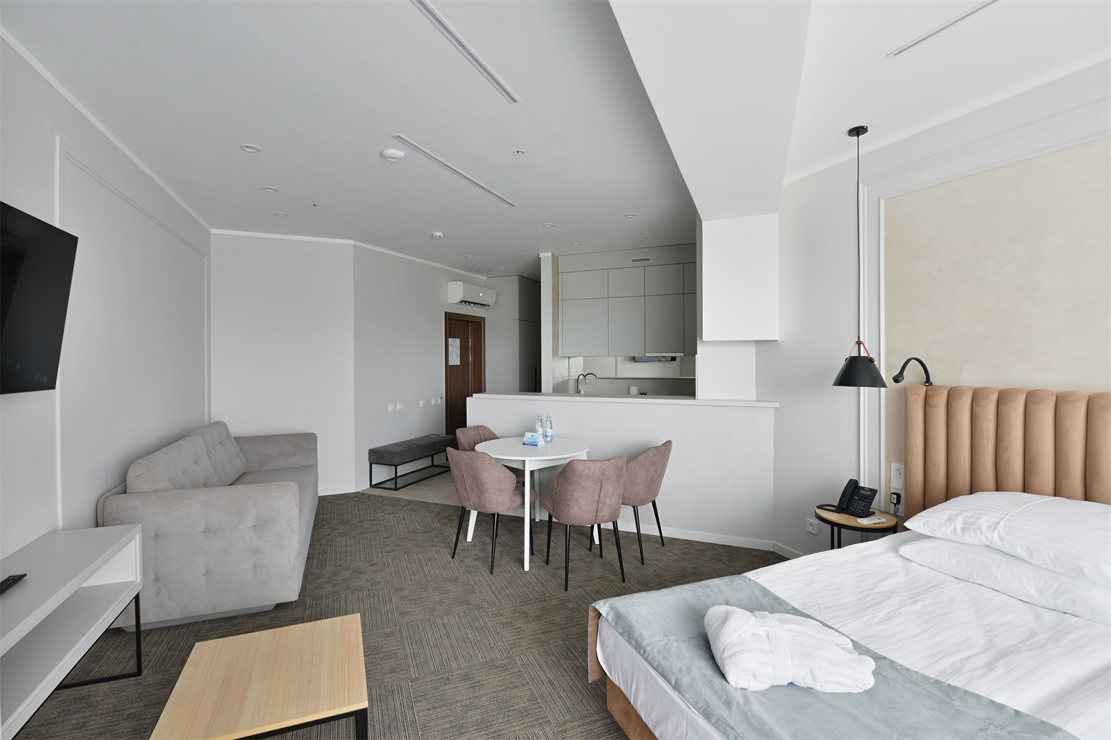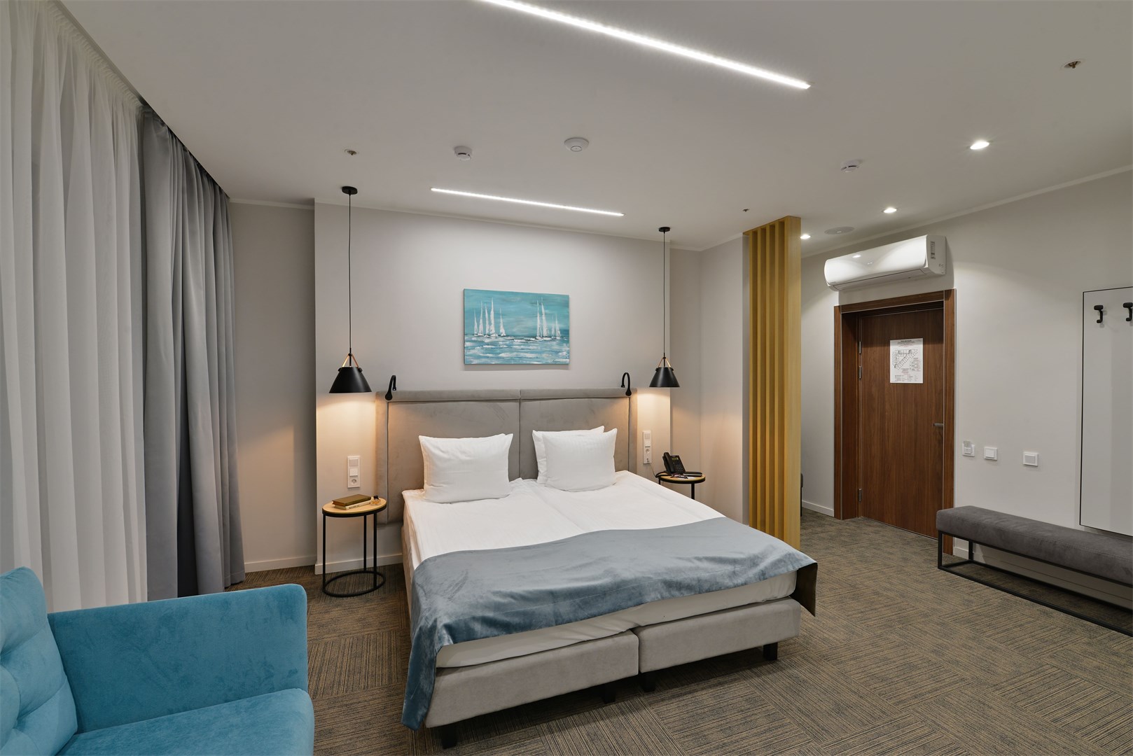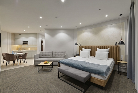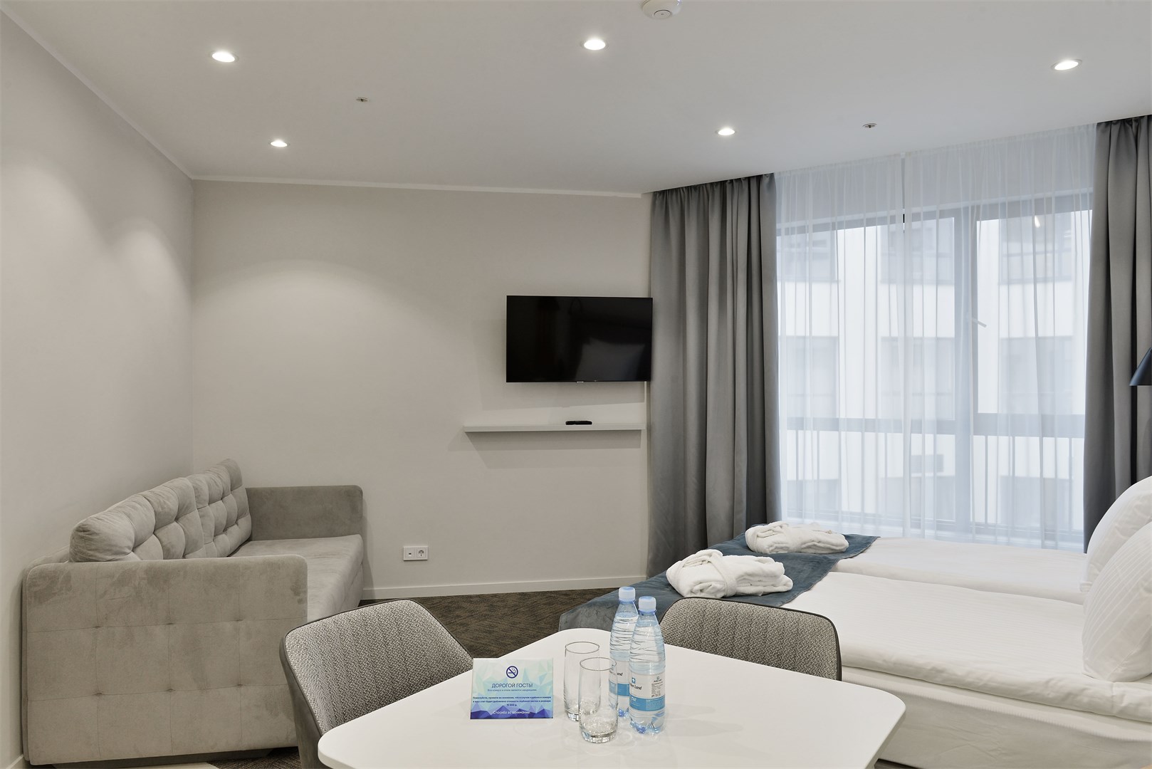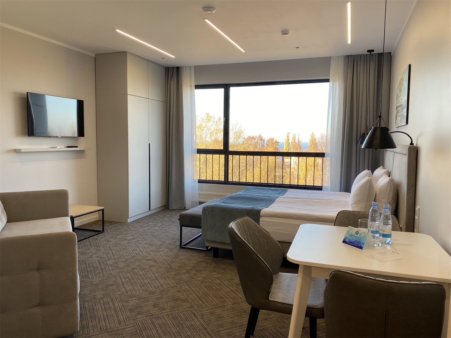 В распоряжении гостей стильные светлые номера Double и Twin разных категорий комфорта. В каждом номере предусмотрены гостиная, спальная и кухонные зоны, есть индивидуальная ванная комната, и вся необходимая техника кондиционер, плазменный телевизор, электрочайник, микроволновая печь, фен. В большинстве комнат предусмотрены балконы.В отеле работает ресторан авторской кухни «Gravlaks», есть лобби-бар. К услугам отдыхающих SPA центр с бассейном, финской сауной, хаммамом, для любителей активного отдыха оборудован тренажерный зал. Деловые мероприятия, встречи, переговоры можно провести в одном из современных конференц-залов, оснащенных мультимедийной техникой.Среди традиционных услуг — беспроводной интернет и парковка, доступная при наличии свободных мест.