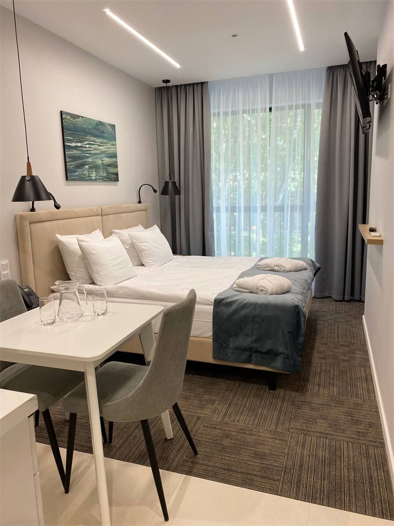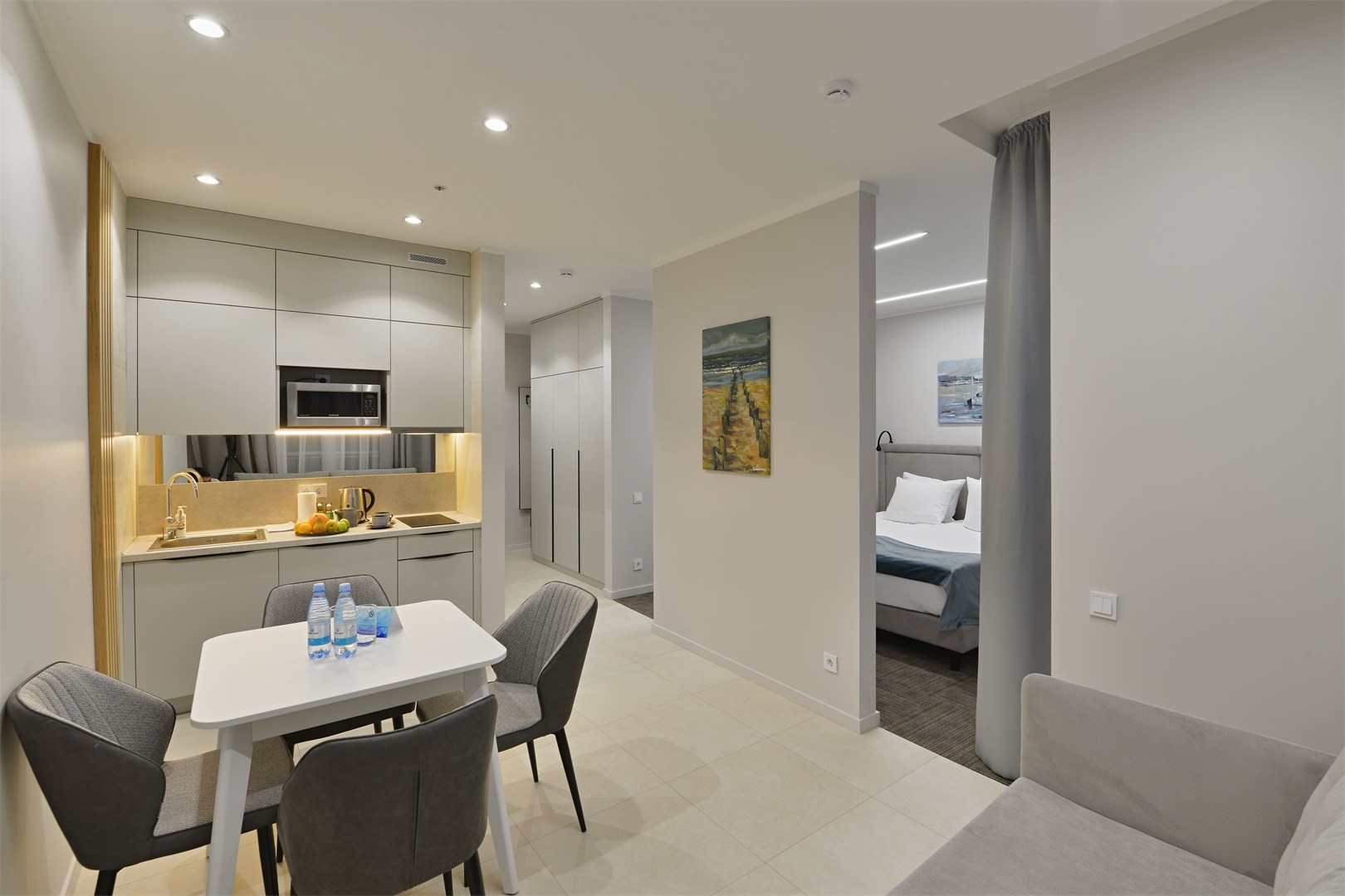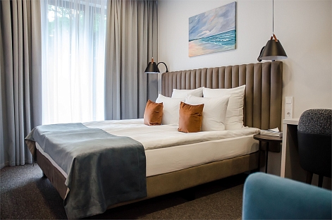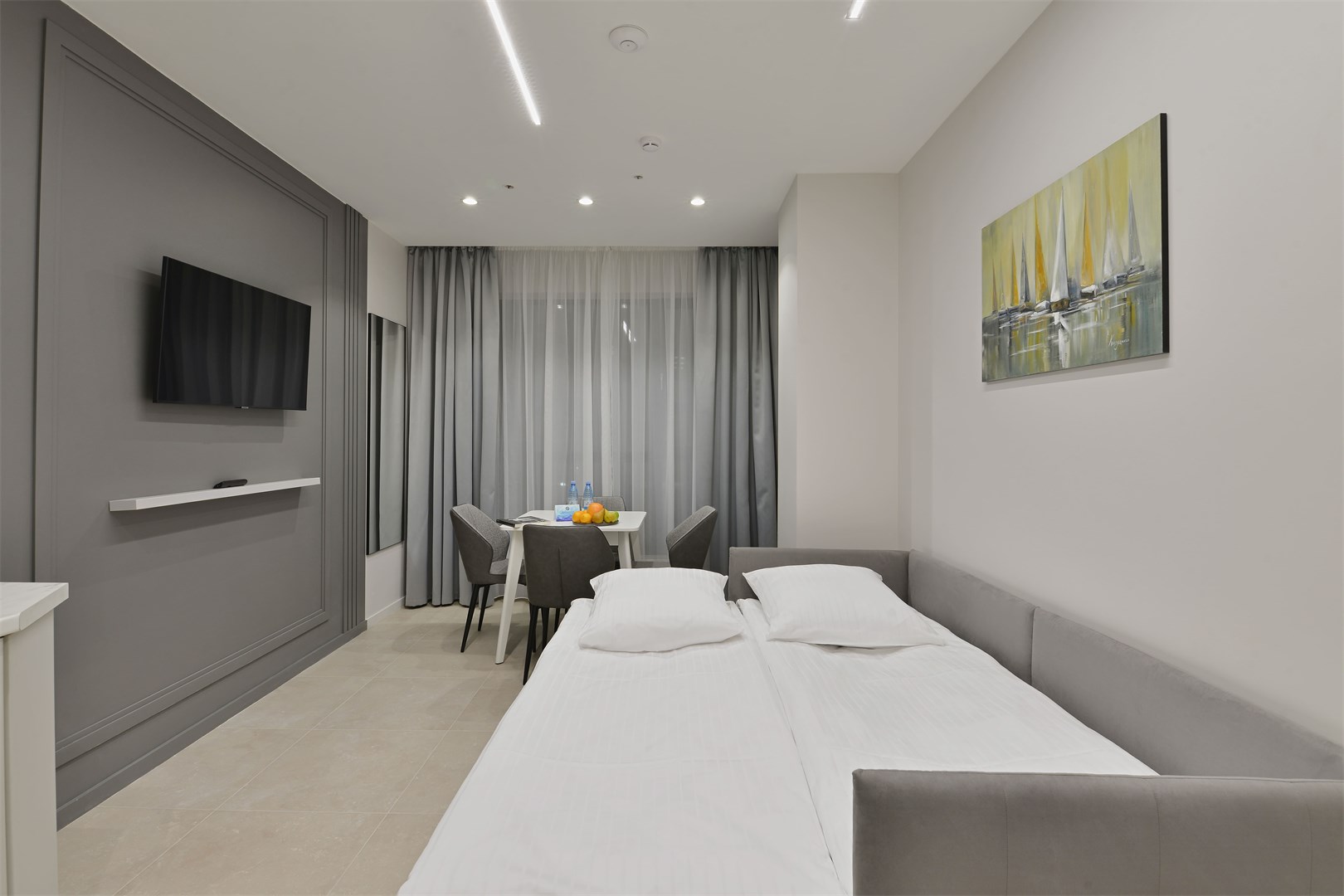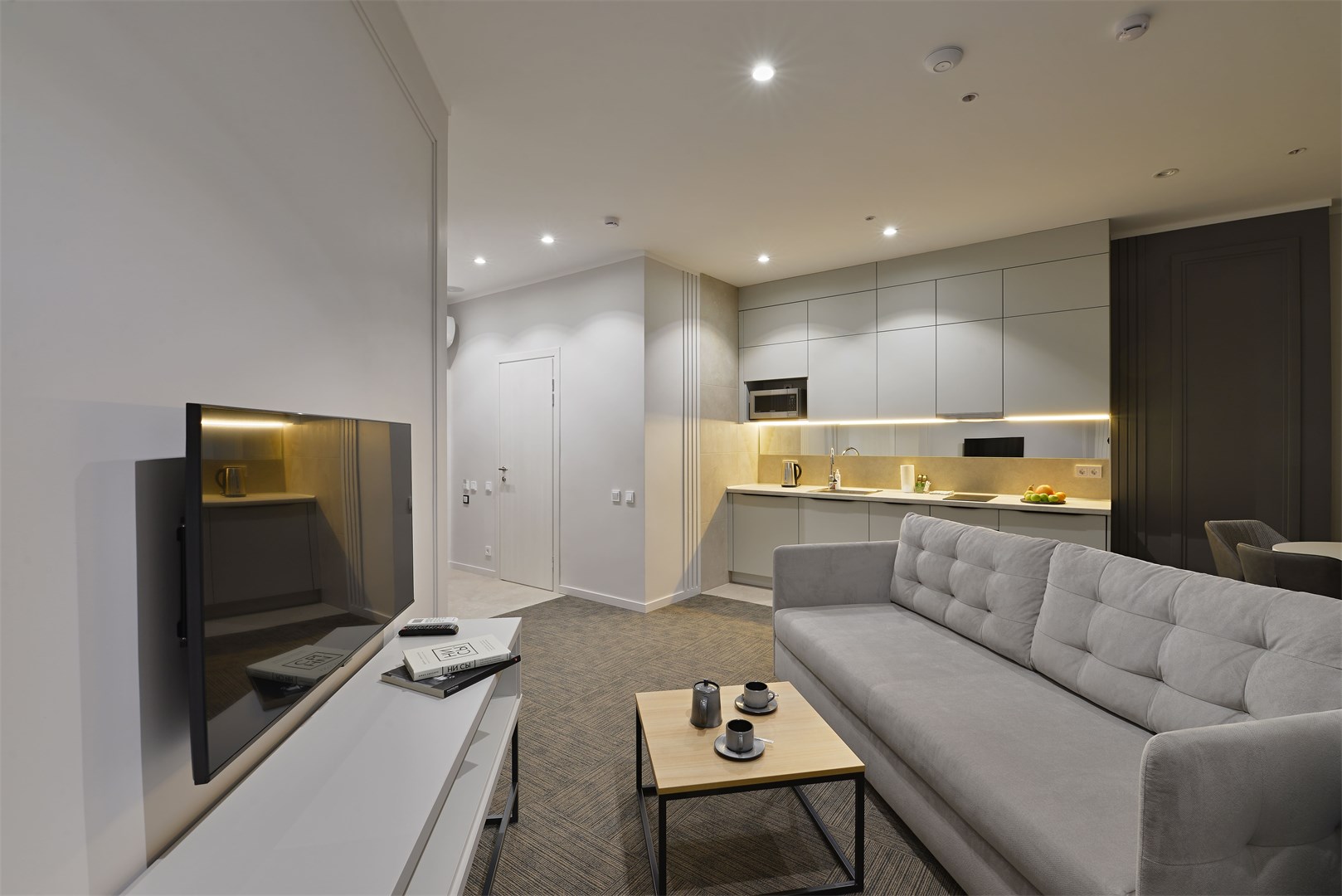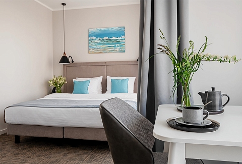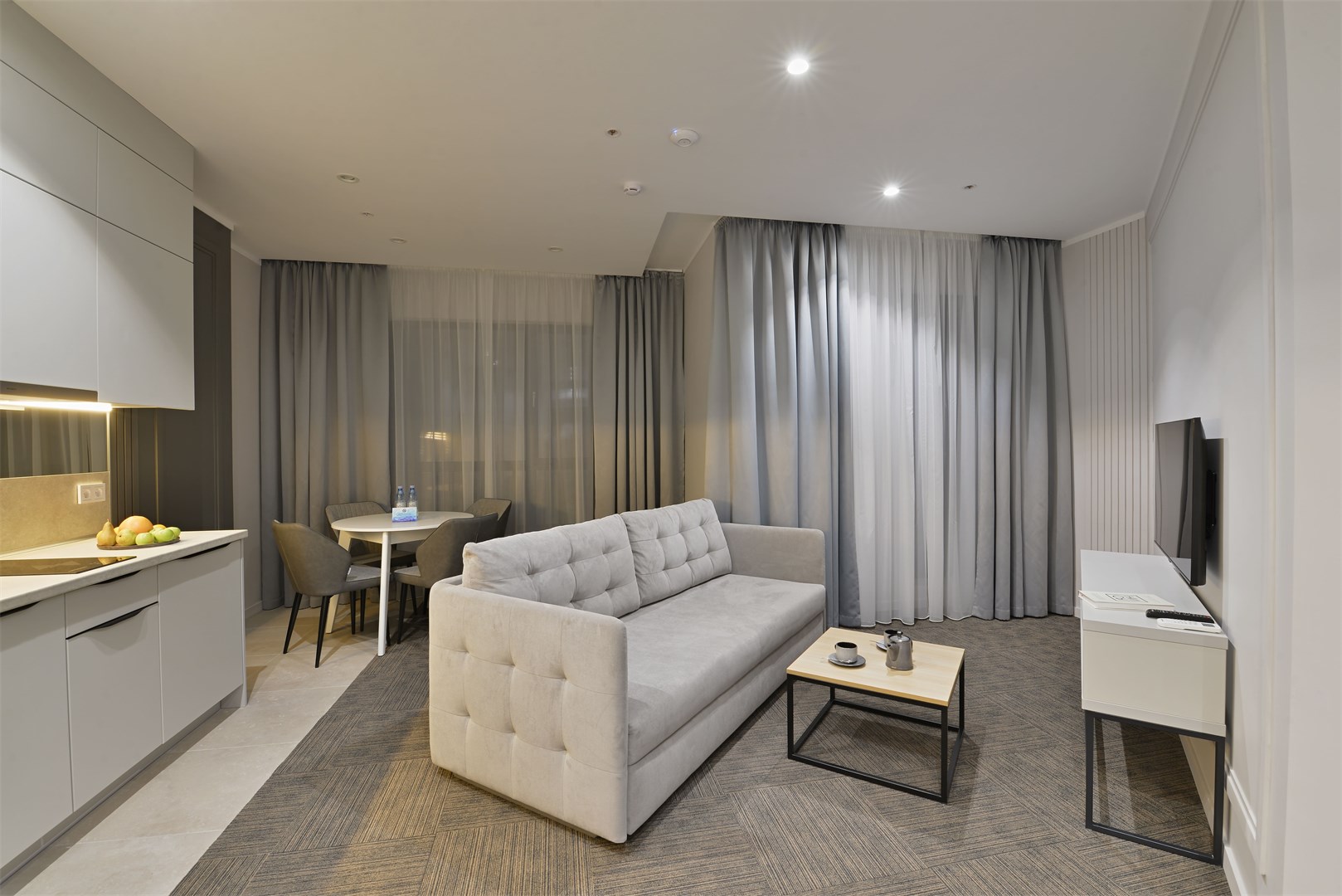 В распоряжении гостей стильные светлые номера Double и Twin разных категорий комфорта. В каждом номере предусмотрены гостиная, спальная и кухонные зоны, есть индивидуальная ванная комната, и вся необходимая техника кондиционер, плазменный телевизор, электрочайник, микроволновая печь, фен. В большинстве комнат предусмотрены балконы.В отеле работает ресторан авторской кухни «Gravlaks», есть лобби-бар. К услугам отдыхающих SPA центр с бассейном, финской сауной, хаммамом, для любителей активного отдыха оборудован тренажерный зал. Деловые мероприятия, встречи, переговоры можно провести в одном из современных конференц-залов, оснащенных мультимедийной техникой.Среди традиционных услуг — беспроводной интернет и парковка, доступная при наличии свободных мест.