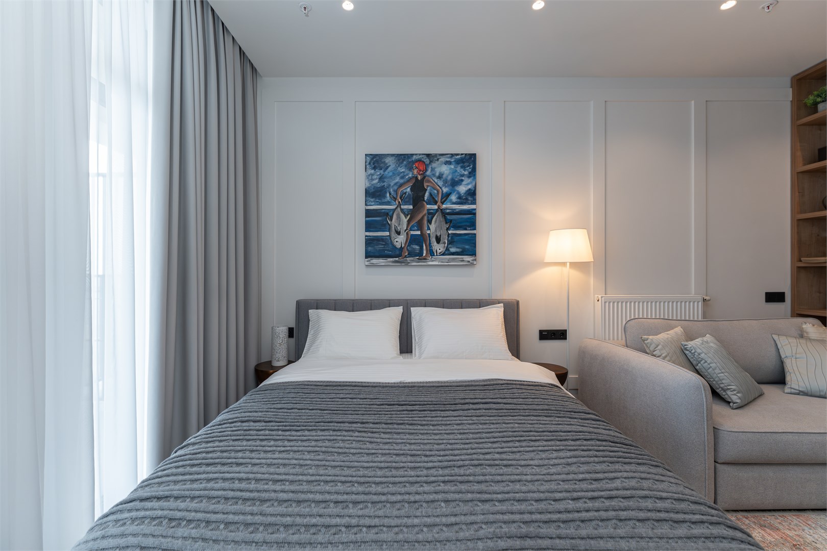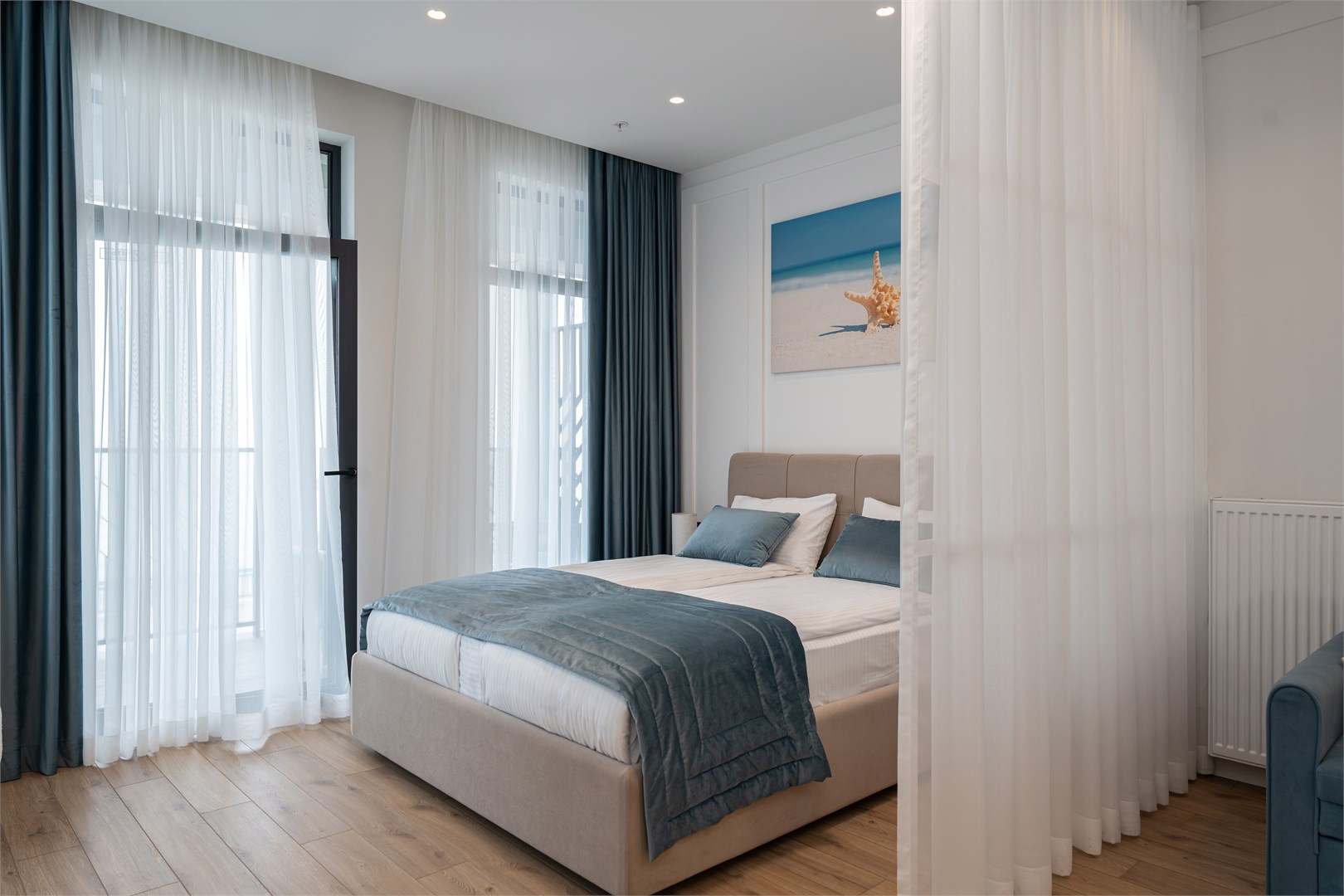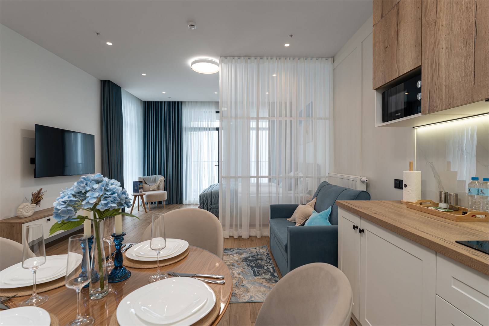 Апартаменты расположены на первой береговой линии, откуда открывается панорамный вид на море. Рядом с комплексом есть всё необходимое для спокойной жизни: продуктовые магазины, уютные кафе, аптека и остановки общественного транспорта. Для гостей, которые путешествуют на автомобиле, предусмотрена подземная парковка — это обеспечивает безопасность машины и удобство доступа в любое время.В распоряжении гостей — номера различных типов, каждый из которых рассчитан на комфортное размещение.