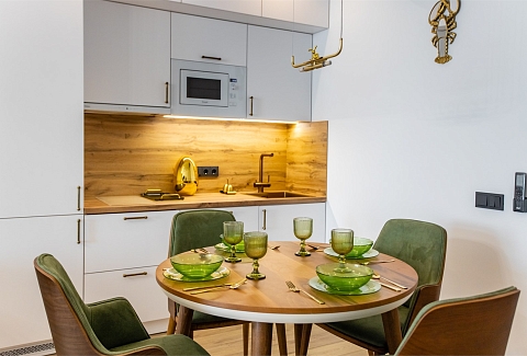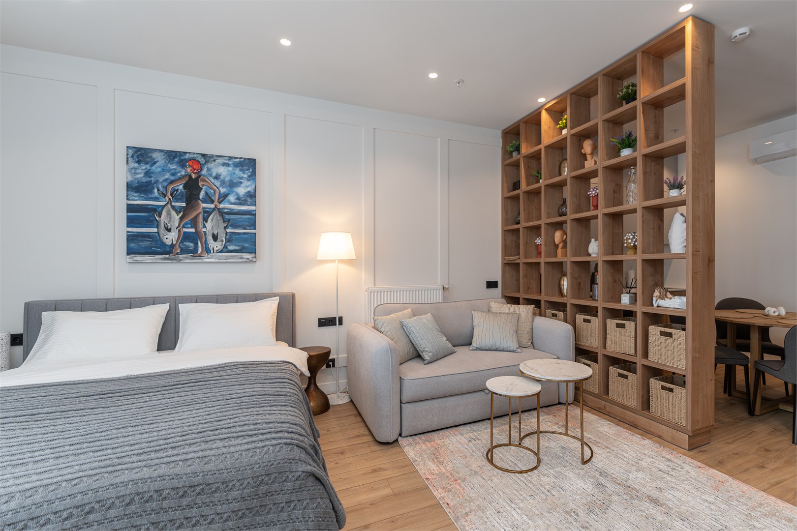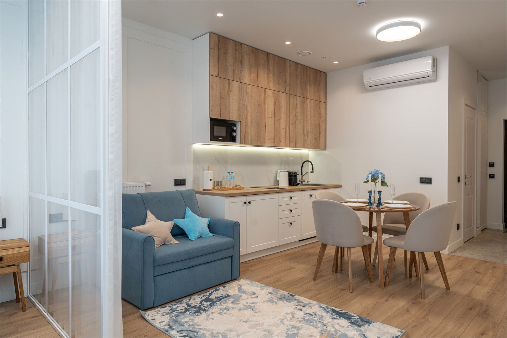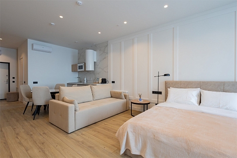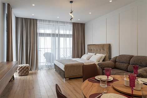 Апартаменты расположены на первой береговой линии, откуда открывается панорамный вид на море. Рядом с комплексом есть всё необходимое для спокойной жизни: продуктовые магазины, уютные кафе, аптека и остановки общественного транспорта. Для гостей, которые путешествуют на автомобиле, предусмотрена подземная парковка — это обеспечивает безопасность машины и удобство доступа в любое время.В распоряжении гостей — номера различных типов, каждый из которых рассчитан на комфортное размещение.