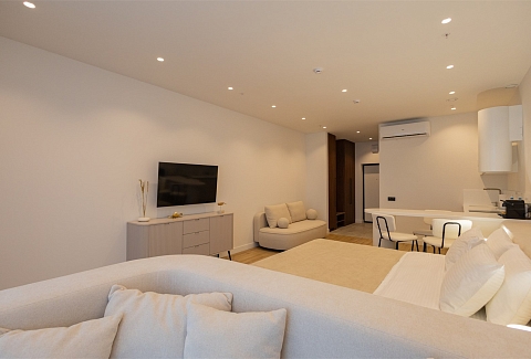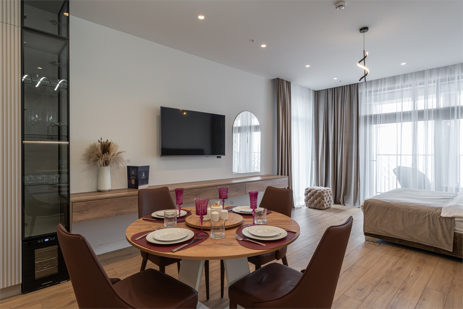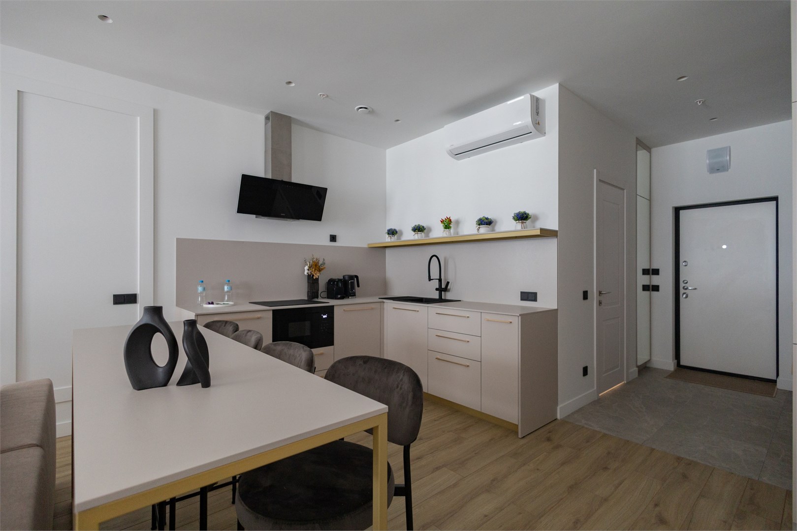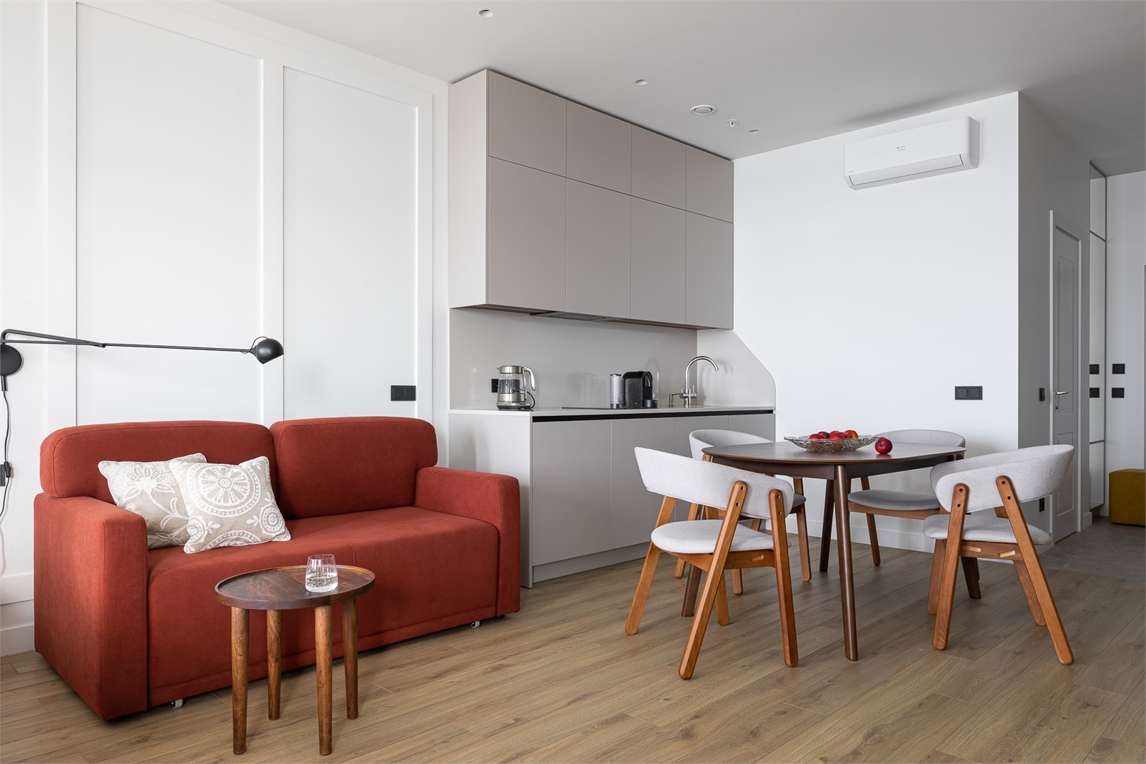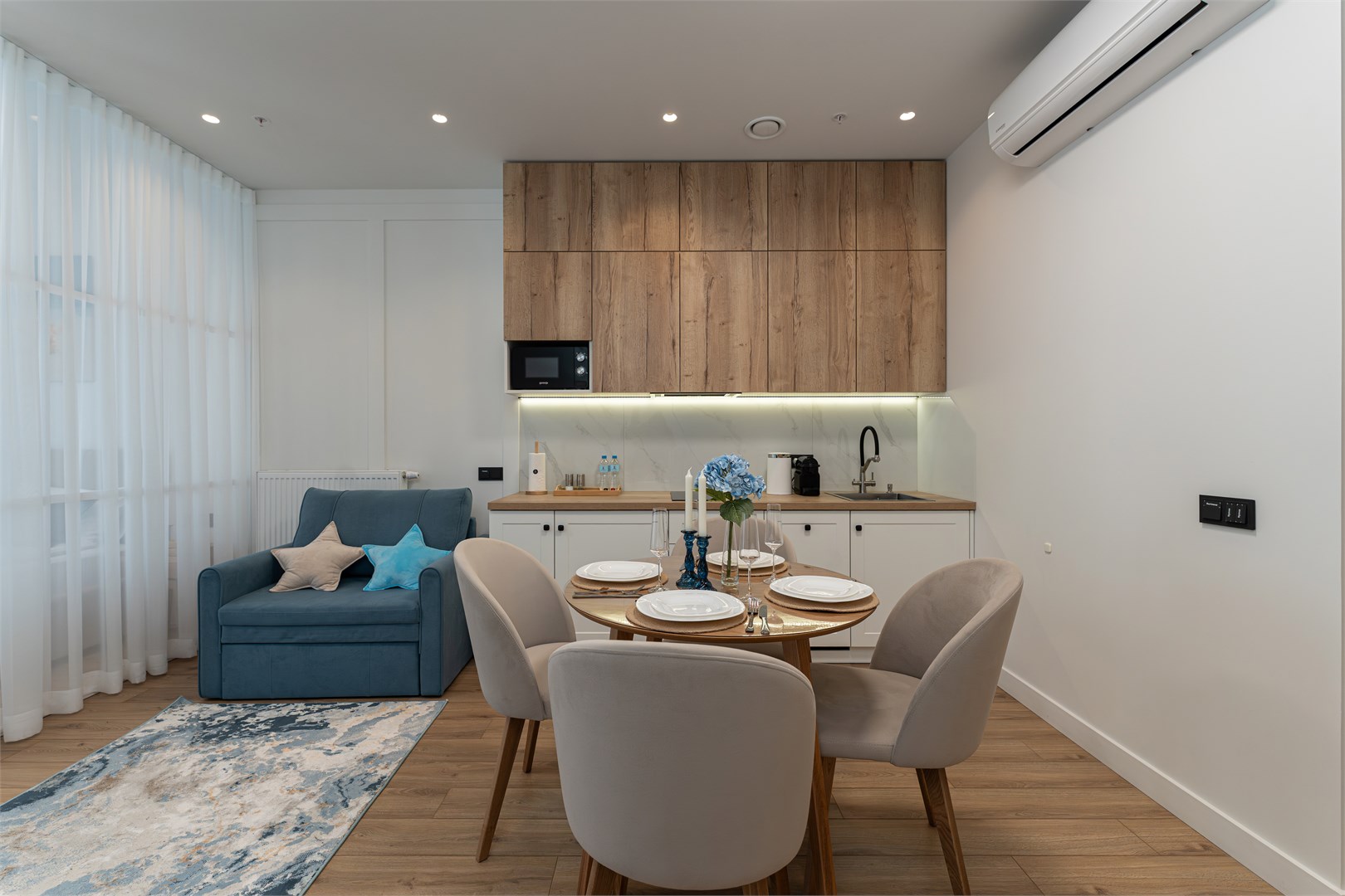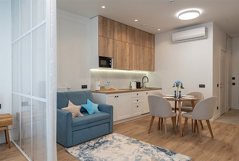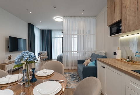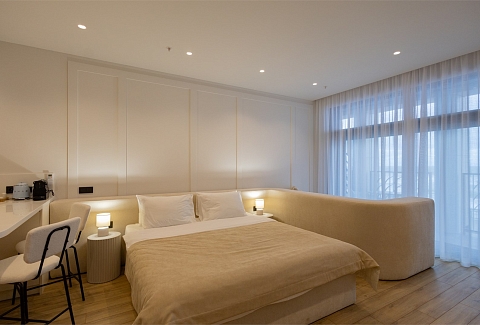 В каждом номере предусмотрена собственная кухня с полным набором посуды, что даёт свободу в организации питания. Оснащение включает тихий кондиционер, стиральную машину, кофемашину, современную технику, а также санузел с феном, свежими полотенцами и гигиеническими принадлежностями. К приятным деталям можно отнести ортопедические матрасы, качественное постельное бельё, бесплатный скоростной Wi-Fi и телевизор. Для особого комфорта доступен сервис заказа еды из ресторанов прямо в номер.На территории отеля можно воспользоваться дополнительными услугами: заказ такси, уборка и любые другие удобства по запросу. Благодаря продуманной инфраструктуре здесь легко совмещать отдых и работу.Это пространство, созданное для тех, кто ценит вид на море, тишину и независимость. Атмосфера располагает к расслабленному отдыху, при этом остаётся функциональной для деловых поездок. Апартаменты одинаково подойдут парам, семьям с детьми и тем, кто приехал работать у воды.